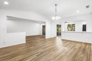 Welcome Home to this rarely available villa in Las Verdes! This lovely home offers gorgeous, private lake views and an abundance of natural light. Highly sought after 3 bedrooms, 2 baths, 1 car garage and full size washer/dryer! Boasting new luxury vinyl flooring and a beautifully updated kitchen with custom lighting throughout- this home checks all the boxes.Nestled in a resort-style gated community, you'll enjoy fantastic amenities including, pools, tennis, pickle ball, fitness center, clubhouse, billiards, basketball, shuffleboard and library. All of this for a low HOA fee. Don't miss the chance to make it yours!
