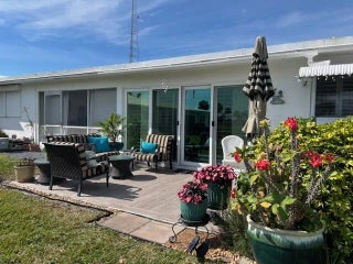 VILLA WITH STUNNING VIEWS OF THE GOLF COURSE. 18 HOLES PAR 3 INCLUDED AND FREE FOR OWNERS. BEAUTIFULLY RENOVATED KITCHEN. PERFECT FURNISHED TURNKEY NEST VERY WELL DECORATED AND READY TO MOVE IN. KITCHEN WINDOWS AND SLIDING PATIO DOOR ARE HURRICANE PROOF. BEDROOM WINDOWS HAVE PANELS/SHUTTERS. NEW ROOF 2021. NEW ELECTRIC PANEL. EXTRA STORAGE. LOCATED IN THE VERY ACTIVE 55+ PALM BEACH LEISUREVILLE COMMUNITY! POOLS, GYM, FREE GOLF AND MORE. CLOSE TO SHOPPING, RESTAURANTS AND BEACHES.