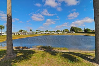 This Tranquil Oasis awaits you! BEST Location extra large property 72X80 facing the Lake with gorgeous views, from sunrise to sunset, in this very active 55 plus gated community. 2 Bedrooms 2 Baths, many extras in this home, large walk in closets, open kitchen with island, large living room, plus den. 280 sq ft enclosed Florida Room with windows and screens separate office space and very large outdoor patio all facing the Lake. Large Shed & Golf Cart Pad. Don't miss this one comes fully furnished, CASH PURCHASE ONLY - NO LAND LEASE very low HOA $270 month included lawn service, water & sewer, wi-fi. Community offers many social activities, Pickleball courts, bocce ball, shuffleboard, on-site library, doggy park, billiards Clubhouse, 2 pools. Lot of shopping near. Come and enjoy!