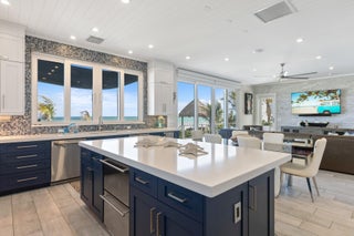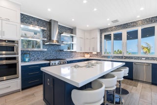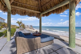 Experience unparalleled oceanfront living in this meticulously designed coastal retreat, nestled on an exclusive stretch of shoreline. Thoughtfully crafted by a renowned builder as their personal residence, this home blends modern innovation with timeless elegance to create a sanctuary of luxury and style.Step through the grand foyer into the main living floor, where endless ocean views greet you from every vantage. The open-concept layout is anchored by a chef's kitchen that harmonizes form and function, featuring GE Monogram appliances, dual dishwashers, a Six-burner gas range, a wall oven/microwave, and a striking ocean-blue backsplash that mirrors the waves beyond. Main floor 4th bedroom and Office.Adjacent, an expansive deck with stainless railings invites seamless indoor-outdoor living, offering breathtaking vistas of lush landscaping and the Atlantic horizon. On the third level, the primary suite is a serene haven with volume ceilings, and a spa-like bath complete with a soaking tub, double vanities, and a walk-in shower framed by custom glass. A private balcony extends the allure, providing a tranquil space to savor sunrises. Two additional guest bedrooms, including an en-suite, and a versatile loft space complete the upper floor, ensuring comfort and privacy for all. Every detail of this home reflects thoughtful luxury, from plank tile floors and LED lighting to the smart Control 4 system that orchestrates programmable shades, lights, climate control,security and more. The outdoor spaces are equally impressive, with a summer kitchen featuring marine-grade 4 burner gas grill, a putting green, and a tiki hut overlooking the ocean. Maintenance-free landscaping with river rock gardens, and an irrigation system ensure effortless upkeep. Built on pilings and fortified with a state-of-the-art seawall, this residence offers peace of mind, standing gracefully against the elements. Private beach stairs lead to a pristine shoreline, perfect for serene strolls or witnessing the marvel of sea turtle hatchlings. With its sophisticated design, smart-home innovation, and breathtaking setting, this estate epitomizes coastal luxury. Don't miss the opportunity to own a one-of-a-kind oceanfront masterpiece that truly redefines the art of living by the sea.