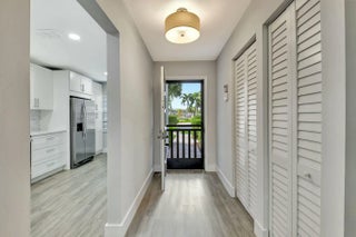 This beautifully renovated 2-bedroom, 2-bathroom main-level condo offers modern elegance and effortless living. Featuring luxury vinyl plank (LVP) flooring throughout all the rooms and freshly cleaned carpet in the primary bedroom the space exudes warmth and durability. Both baths have been elegantly updated. The white shaker kitchen is a chef's dream, complemented by quartz countertops and stylish finishes. Enjoy serene golf course views from your spacious living area and enclosed lanai enhanced by hurricane-rated sliders that provide both safety and natural light. With a thoughtfully designed layout and premium upgrades, this condo is the perfect blend of comfort and sophistication. Hunters Run is a mandatory buy-in and yearly membership, amenities-filled community,