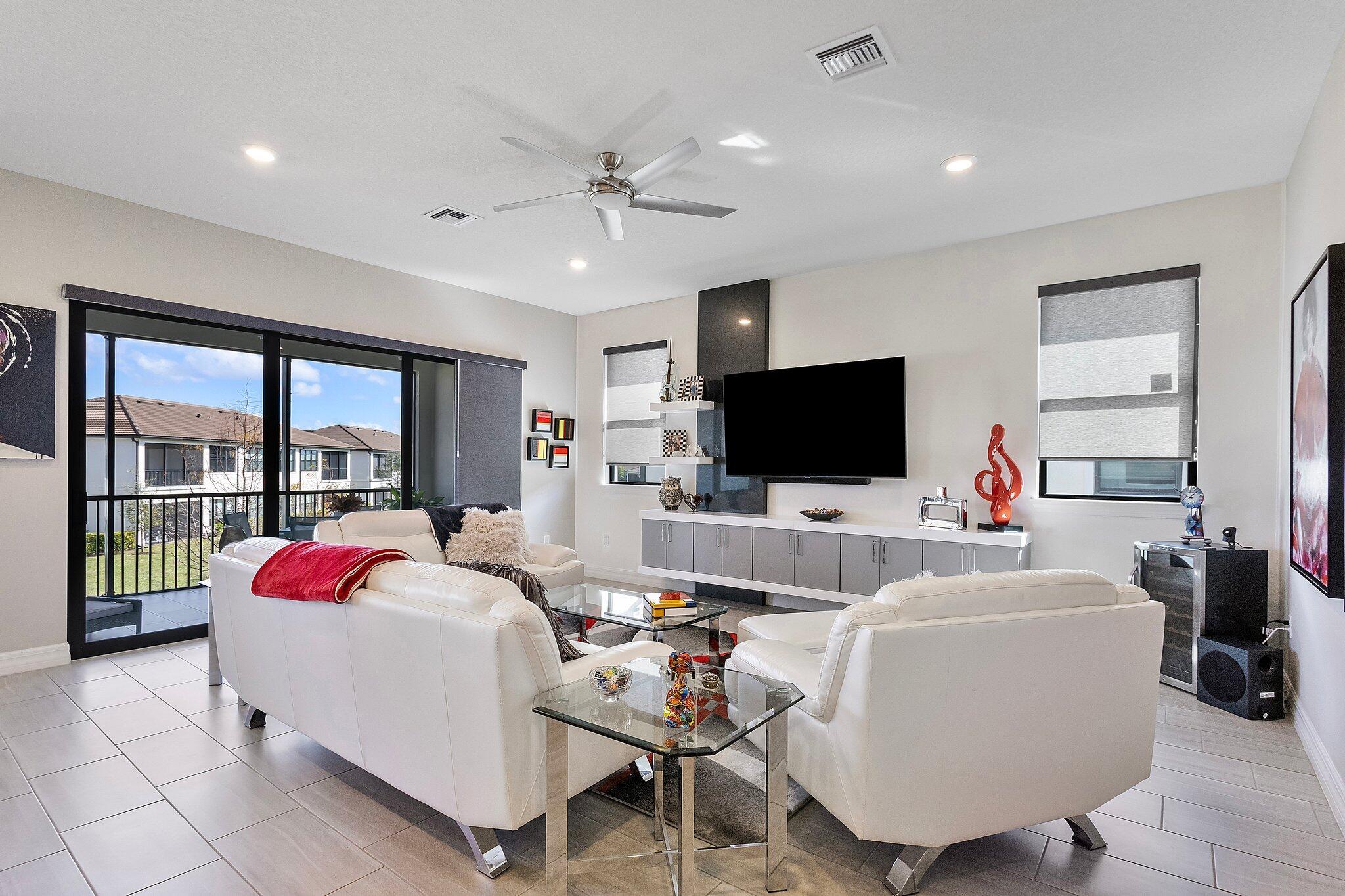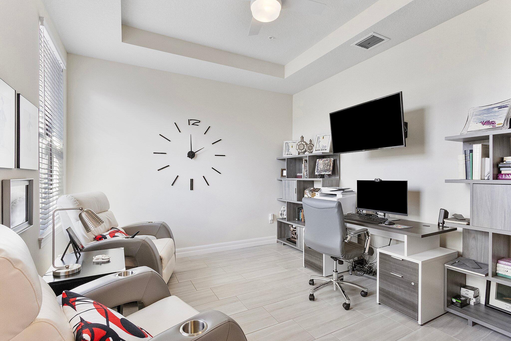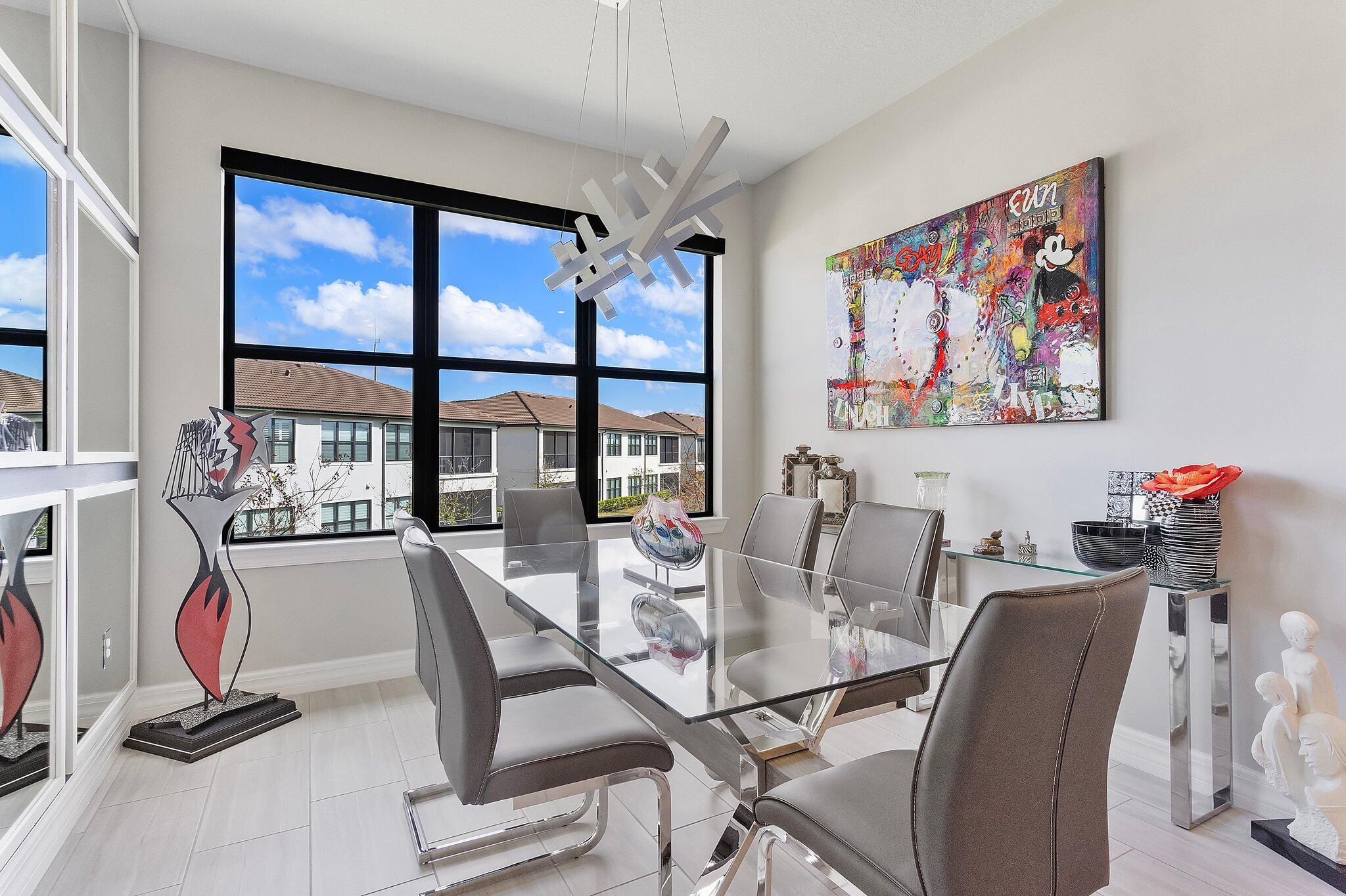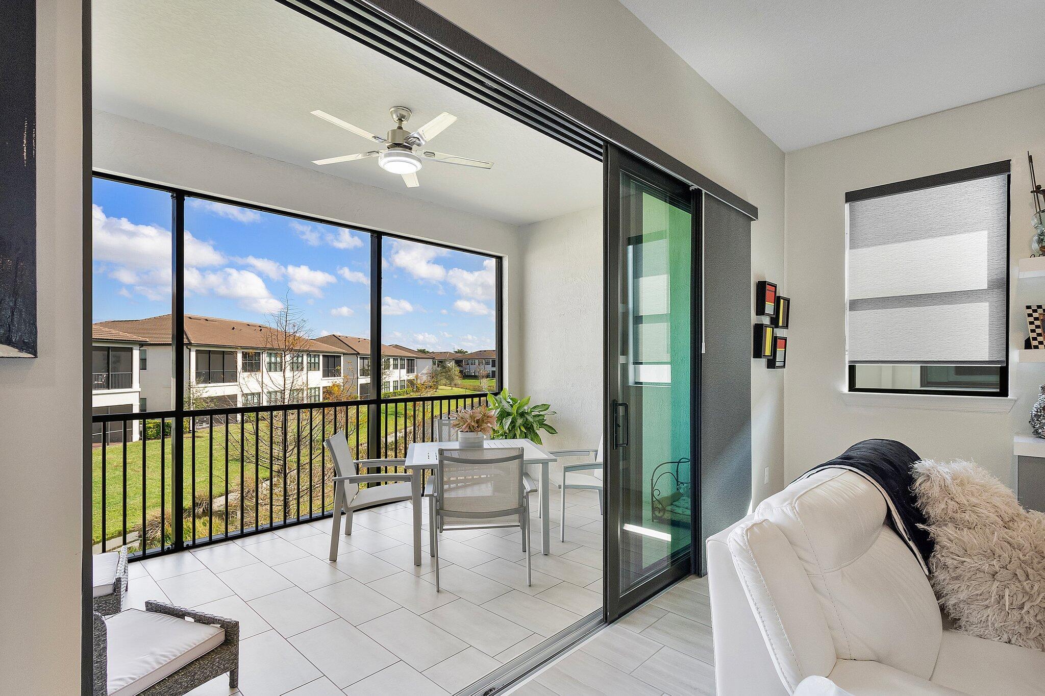 Exquisite home in a Premier 55+ community! Step into sophistication with this impeccably designed 3-bedroom, 2.5 bath condo, built in 2020. Enjoy your own private elevator to the main floor. All rooms are on main level, featuring a flex room, walk-in pantry, screened balcony, sprinkler system in every room and monitored security! Every detail exudes luxury, from the elegant tile flooring to the custom mirrored dining room wall, custom designed wall unit, and designer light fixtures throughout. Enjoy your own private gourmet kitchen, featuring premium stainless steel appliances, stunning granite countertops, and ample storage. The primary on-suite offers a spa-like retreat and a spacious walk-in closet. Constructed with full impact glass windows, this home ensures both style and security.