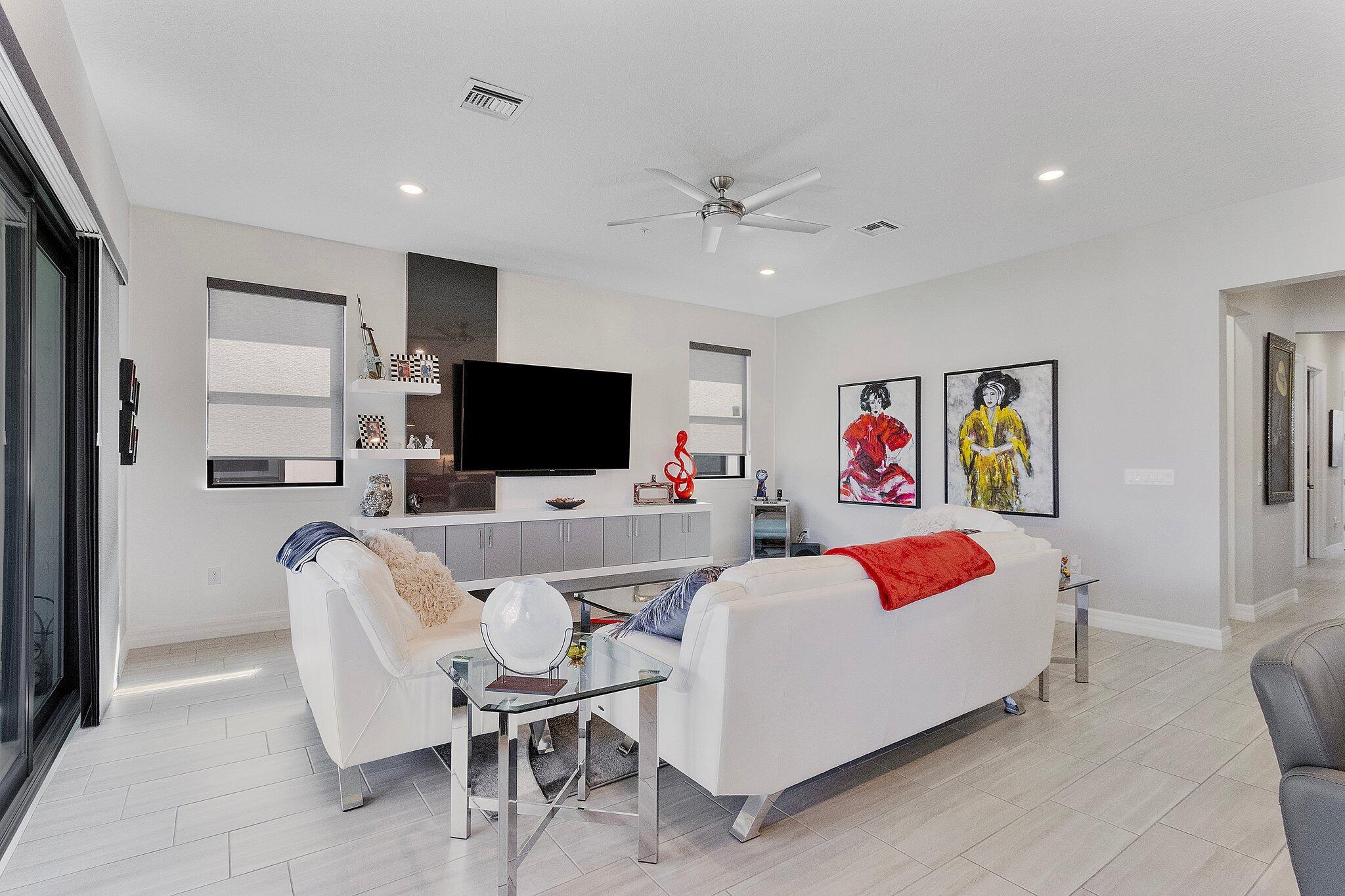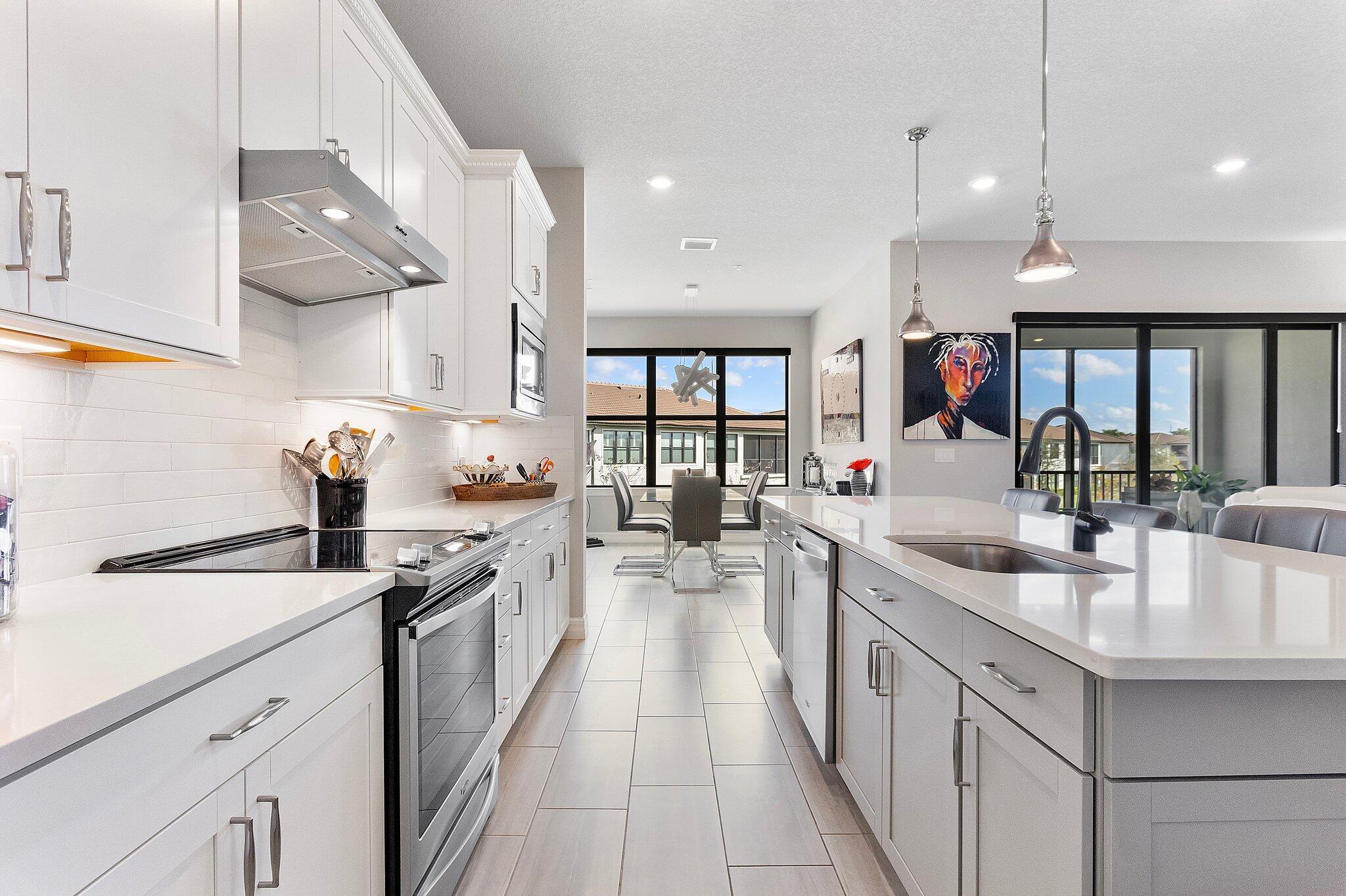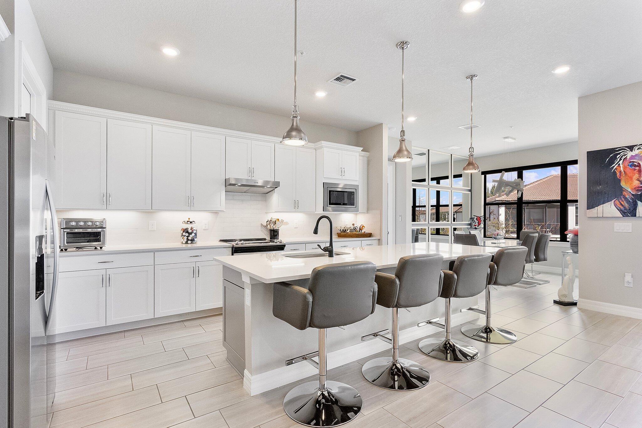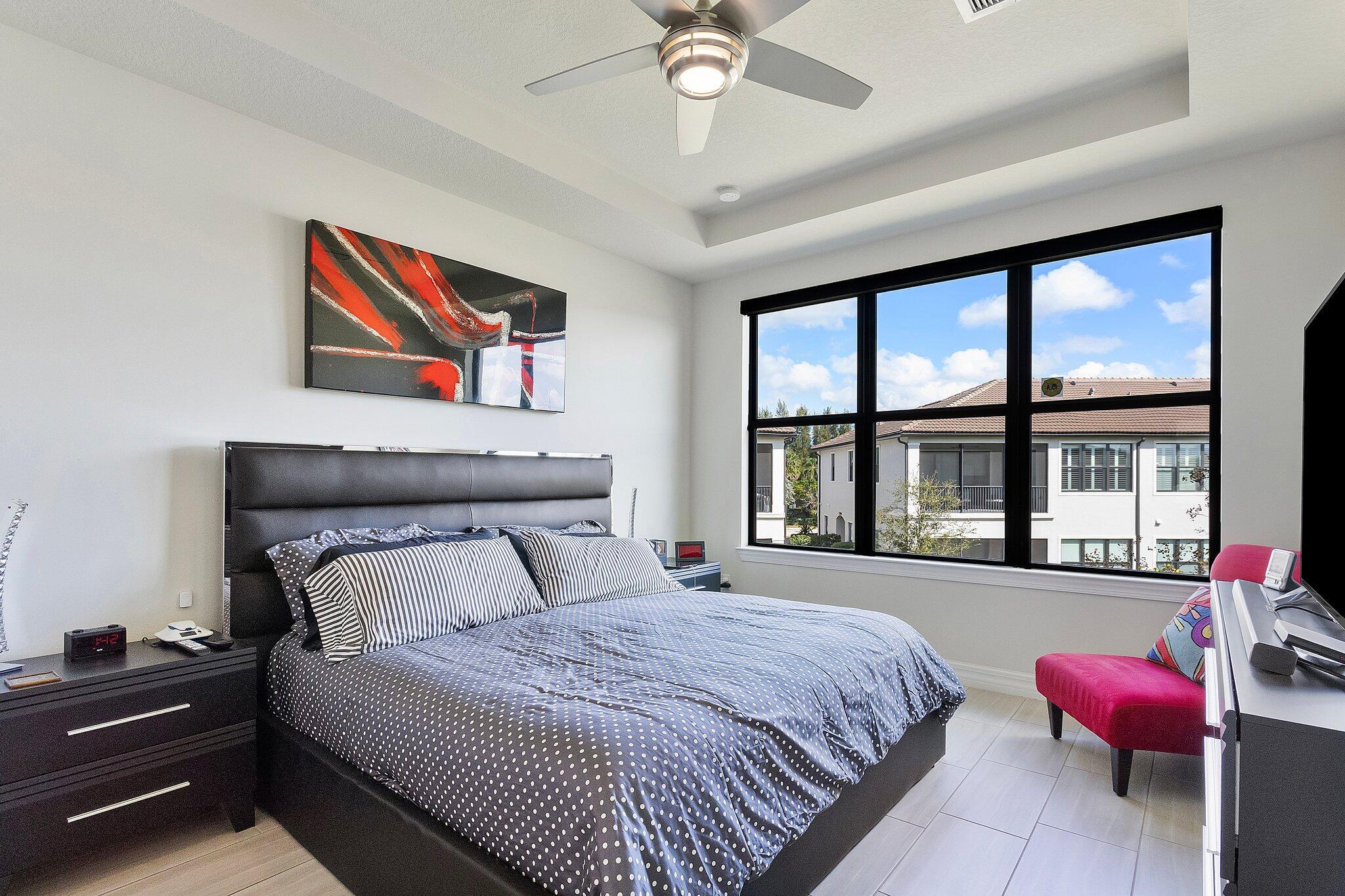 Exquisite home in a Premier 55+ community! Step into sophistication with this impeccably designed 3-bedroom, 2.5 bath condo, built in 2020. Enjoy your own private elevator to the main floor. All rooms are on main level, featuring a flex room, walk-in pantry, screened balcony, sprinkler system in every room and monitored security! Every detail exudes luxury, from the elegant tile flooring to the custom mirrored dining room wall, custom designed wall unit, and designer light fixtures throughout. Enjoy your own private gourmet kitchen, featuring premium stainless steel appliances, stunning granite countertops, and ample storage. The primary on-suite offers a spa-like retreat and a spacious walk-in closet. Constructed with full impact glass windows, this home ensures both style and security.