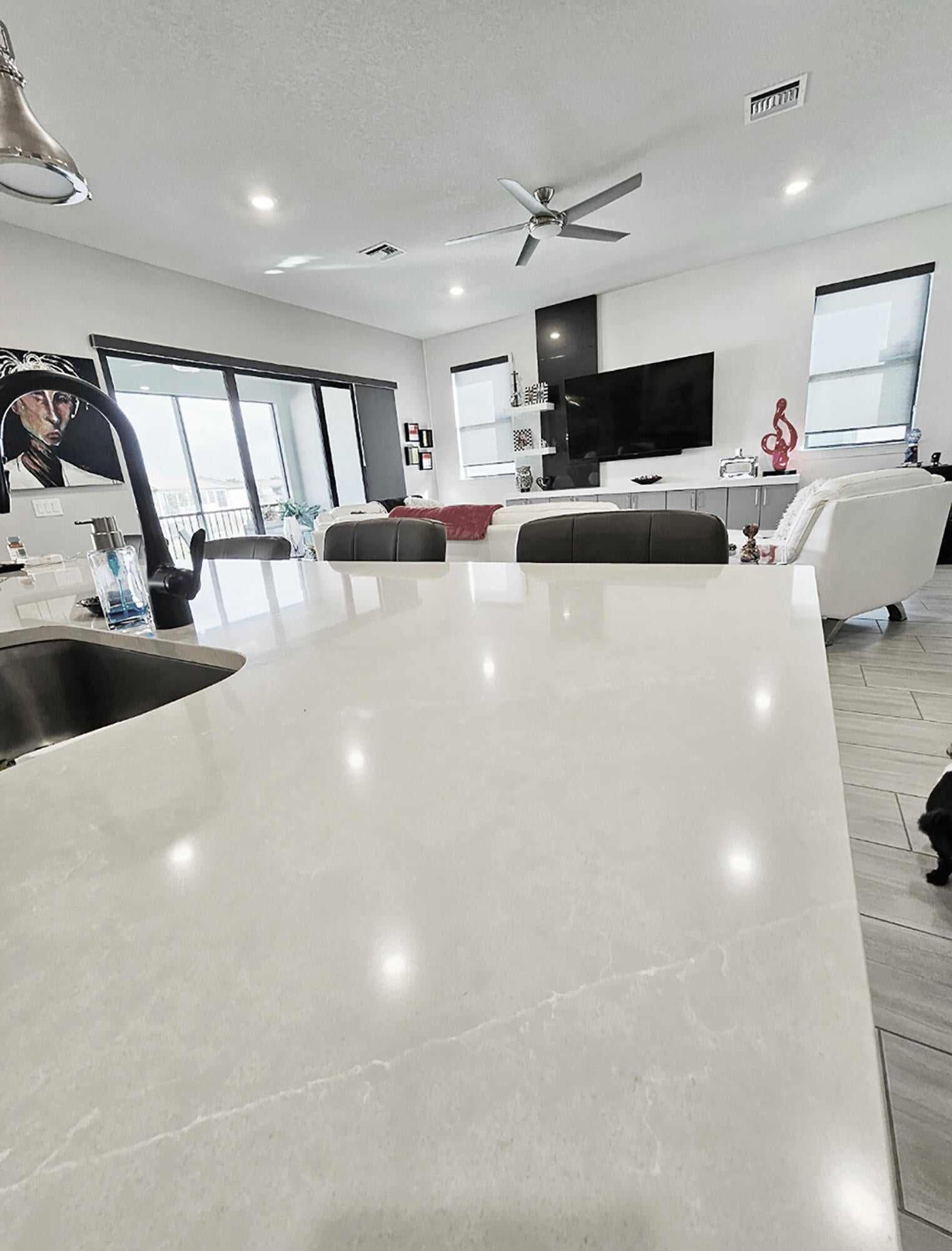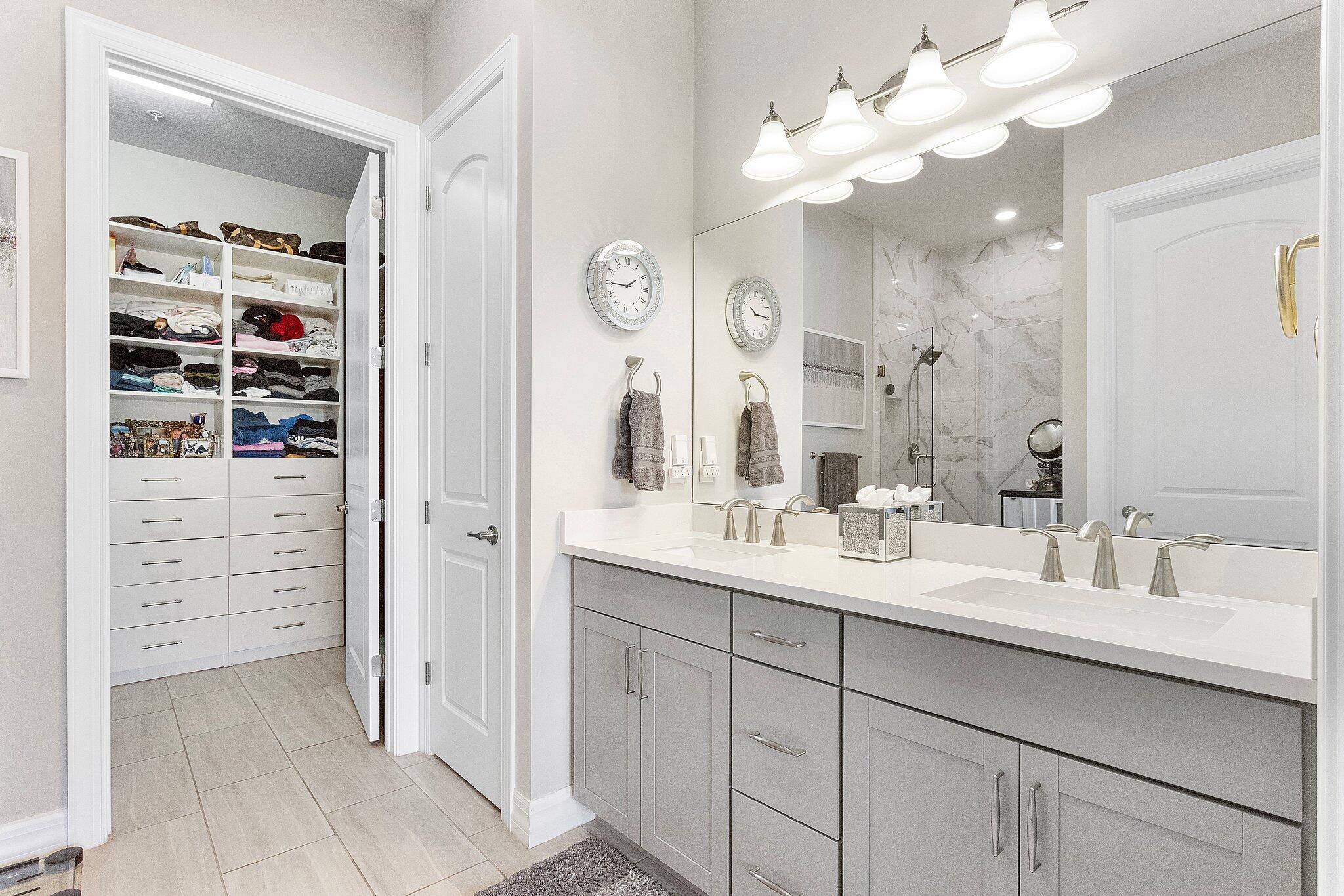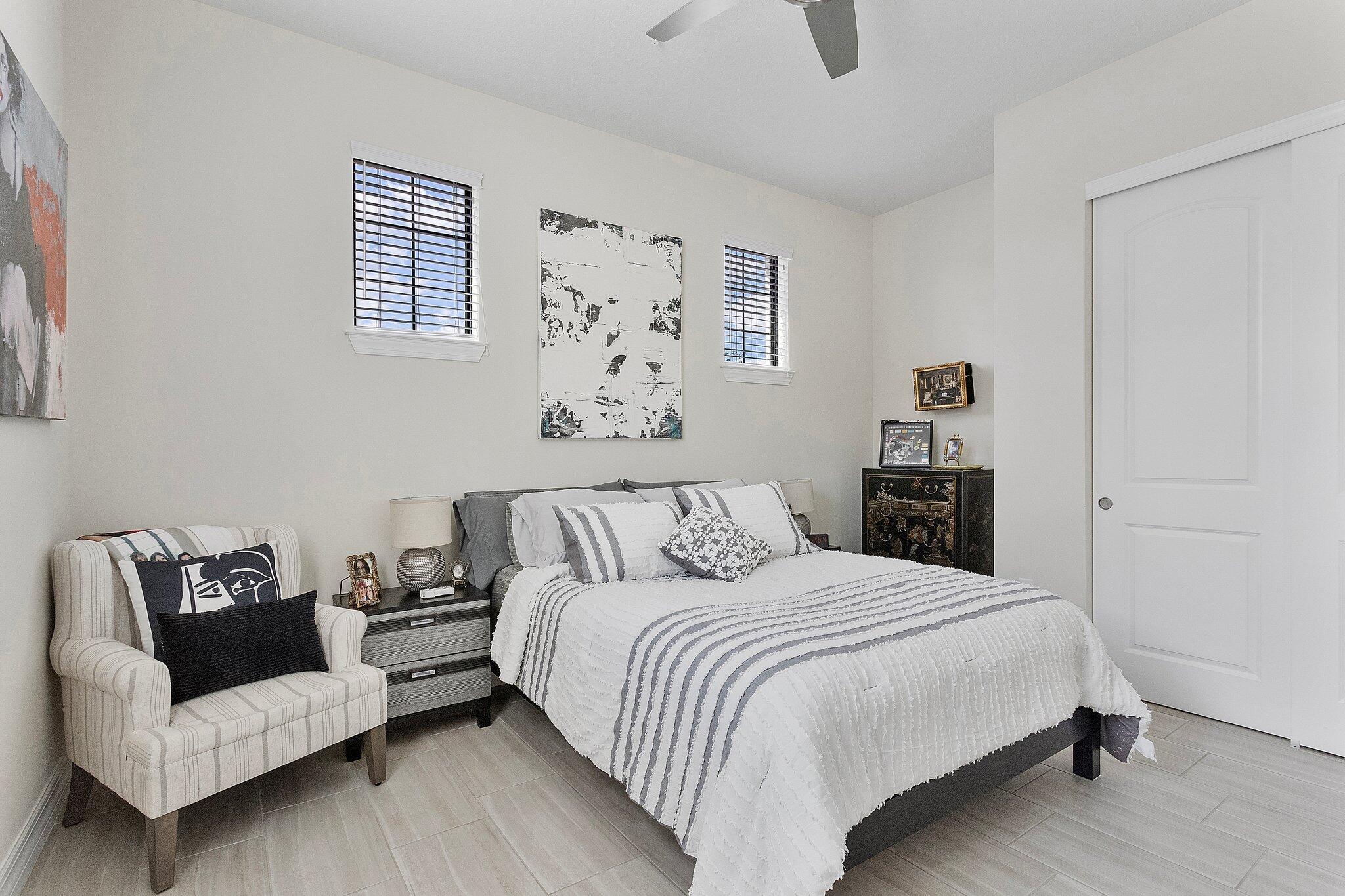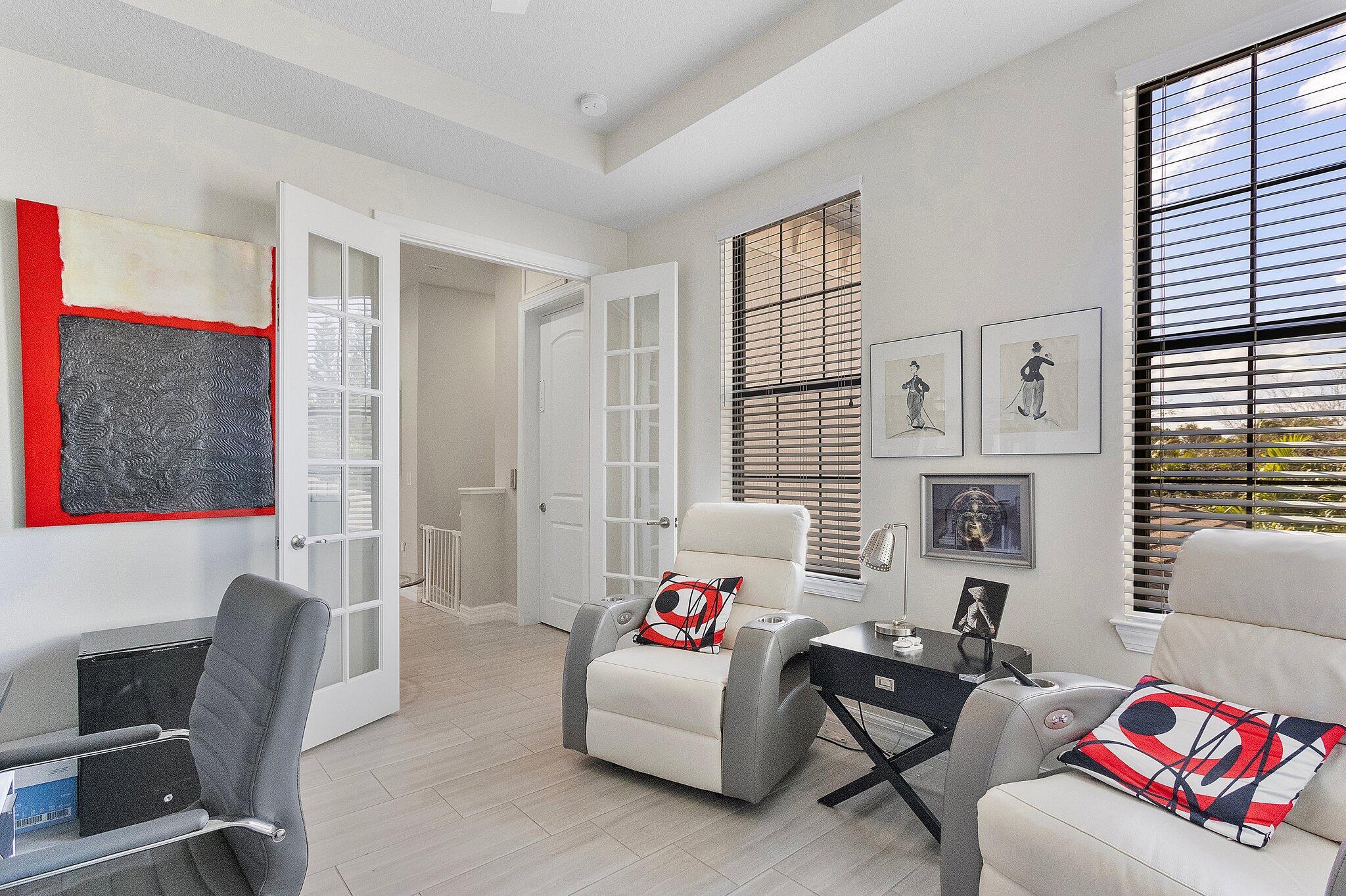 Exquisite home in a Premier 55+ community! Step into sophistication with this impeccably designed 3-bedroom, 2.5 bath condo, built in 2020. Enjoy your own private elevator to the main floor. All rooms are on main level, featuring a flex room, walk-in pantry, screened balcony, sprinkler system in every room and monitored security! Every detail exudes luxury, from the elegant tile flooring to the custom mirrored dining room wall, custom designed wall unit, and designer light fixtures throughout. Enjoy your own private gourmet kitchen, featuring premium stainless steel appliances, stunning granite countertops, and ample storage. The primary on-suite offers a spa-like retreat and a spacious walk-in closet. Constructed with full impact glass windows, this home ensures both style and security.