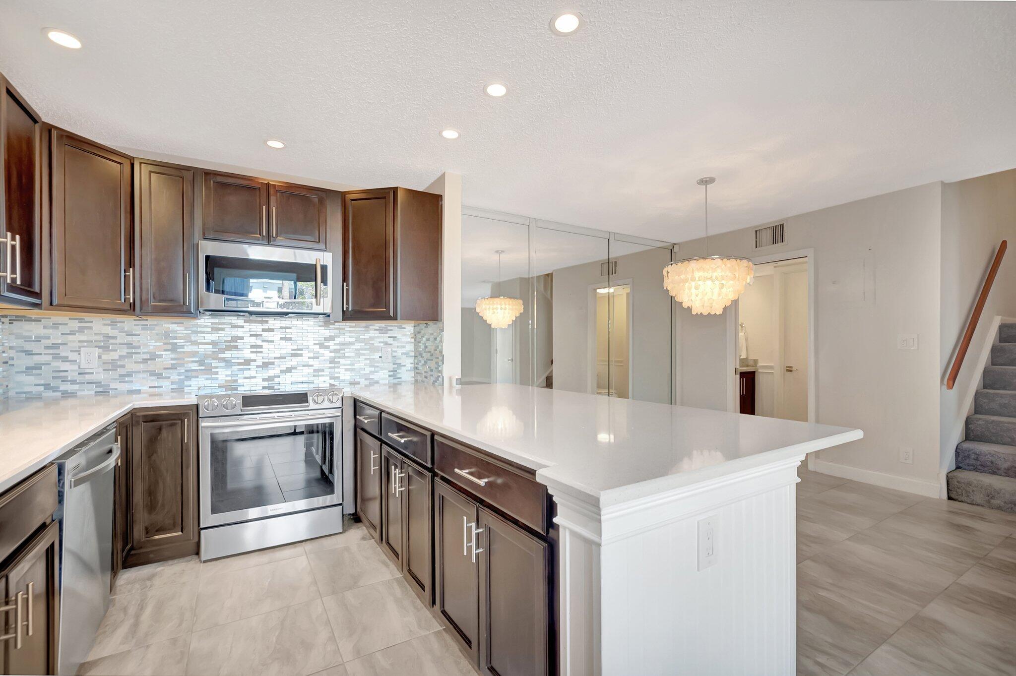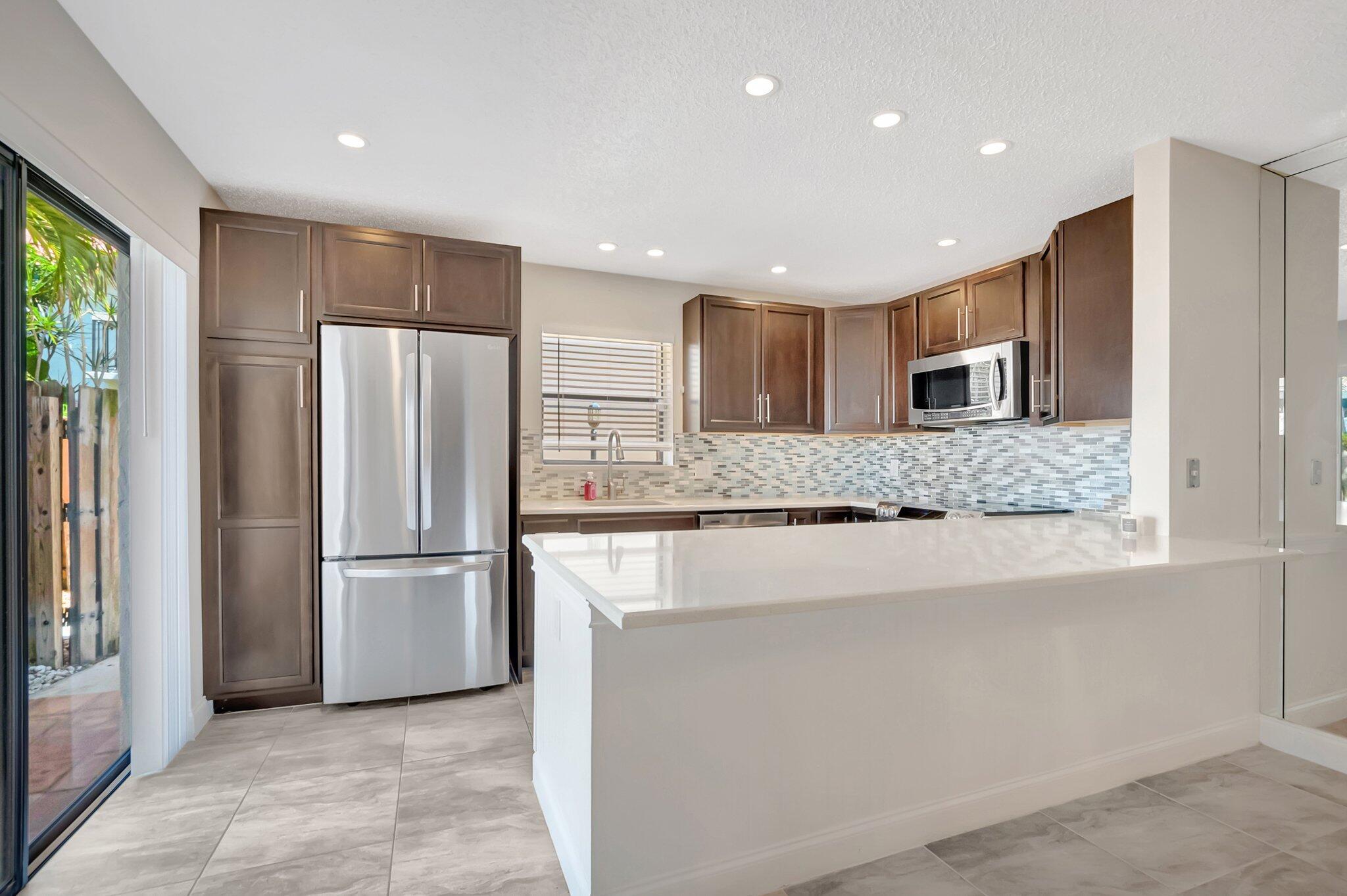 BEST DEAL IN DOWNTOWN BOCA! Nestled in one of the most sought-after areas, this fully renovated 2-story townhome offers the ultimate in modern living and convenience. With two spacious bedrooms, each featuring their own ensuite bathrooms, this home is designed for comfort and privacy.The open kitchen has been beautifully upgraded with sleek espresso real wood cabinetry, and white quartz countertops, with a large bar area for prepping and chatting - perfect for preparing meals or entertaining guests. Conveniently located off the main living space is a 1st floor powder room for guests. Plus, the in-unit washer and dryer tucked in a utility room make chores a breeze.Every bedroom closet has been professionally designed and built out to maximize storage and organization. Step outside to your private, expansive fenced patio, an ideal space for relaxing & enjoying the gorgeous Florida weather. Walk 1.5 miles to the Boca Inlet for exercise & gorgeous views. On your way back, pop downtown for a fresh juice or smoothie. Gotta shipment? No problem. UPS is directly next door, steps from your patio. With two dedicated parking spots and a location just steps away from the community pool, this townhome offers convenience at every turn. And when it comes to location, it doesn't get better than this! You're just a short walk from Publix, Mizner Park, and the beach, offering world-class dining, shopping, and entertainment right at your doorstep. Whether you're looking for a tranquil retreat or a vibrant, walkable lifestyle, this home is the perfect balance of both. Don't miss your opportunity to live in this prime downtown location it's the best of Boca Raton living!