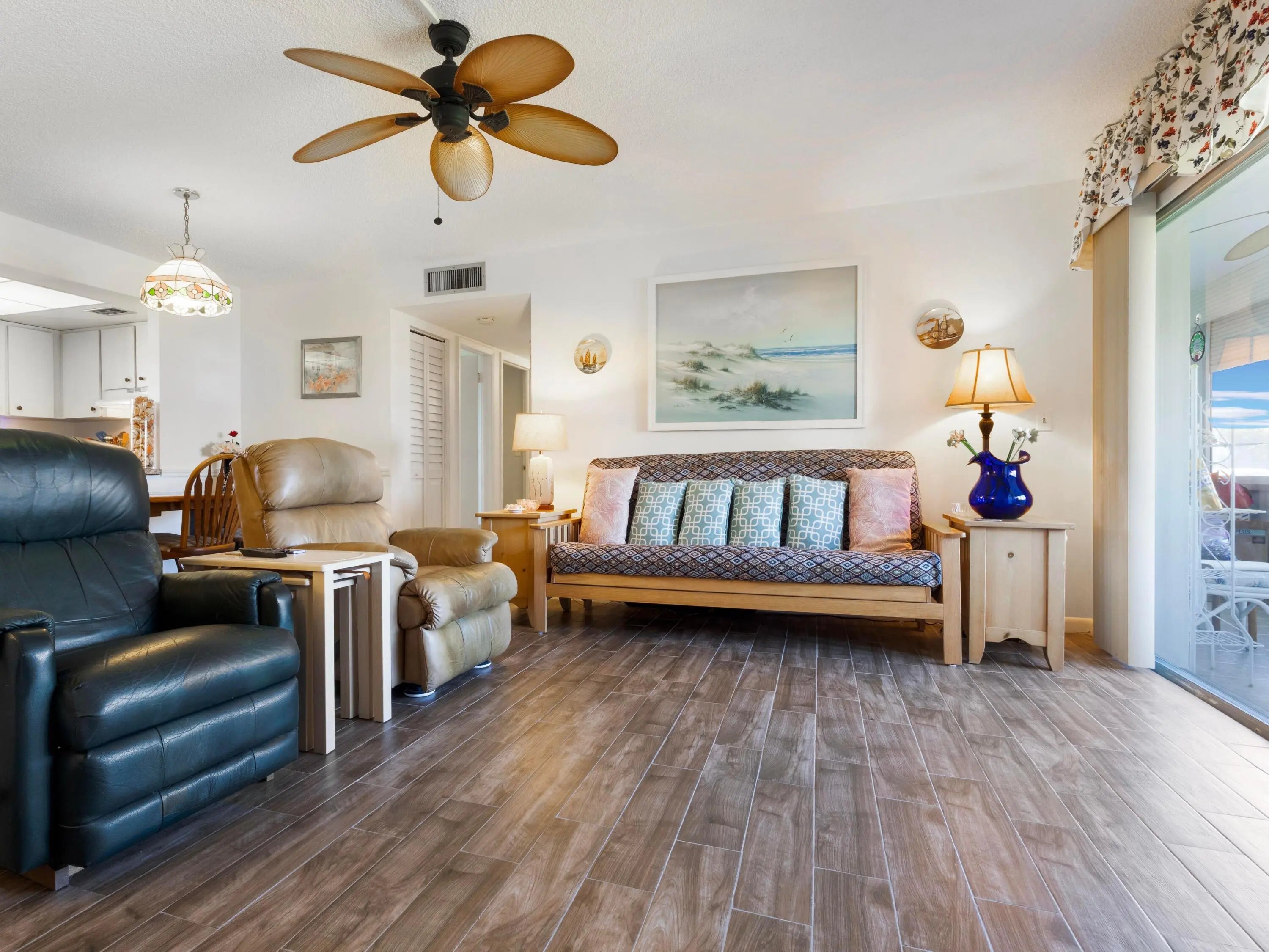 Minutes from the Ocean, This stunning 2 bedroom 2 bath condo is a must see !Recent updates include a New Roof (2022),New A/C ( 2021) New Water Heater (2021) Impact Windows for peace of mind. The porcelain tile floors add a touch of sophistication. Assigned Parking Space !Maintenance fee not only ensures hassle free living by covering water, sewer, and exterior insurance but also grants you access to a wealth of community amenities. Dive into relaxation at the sparkling pool, stay active in the gym, or unwind with a good book in the well stocked library. With so much more to offer, the villa is much more than just a home, it's a lifestyle !
