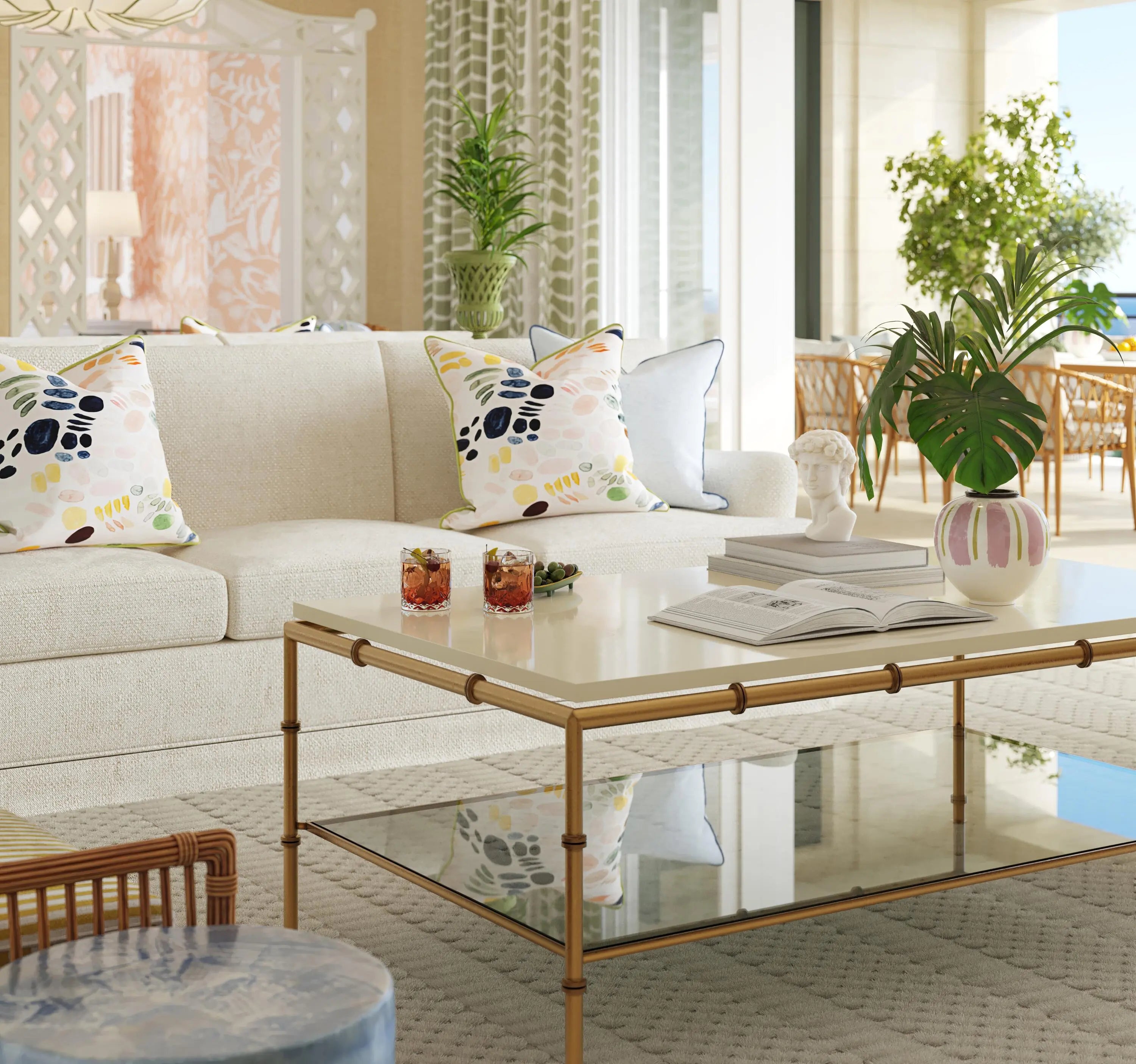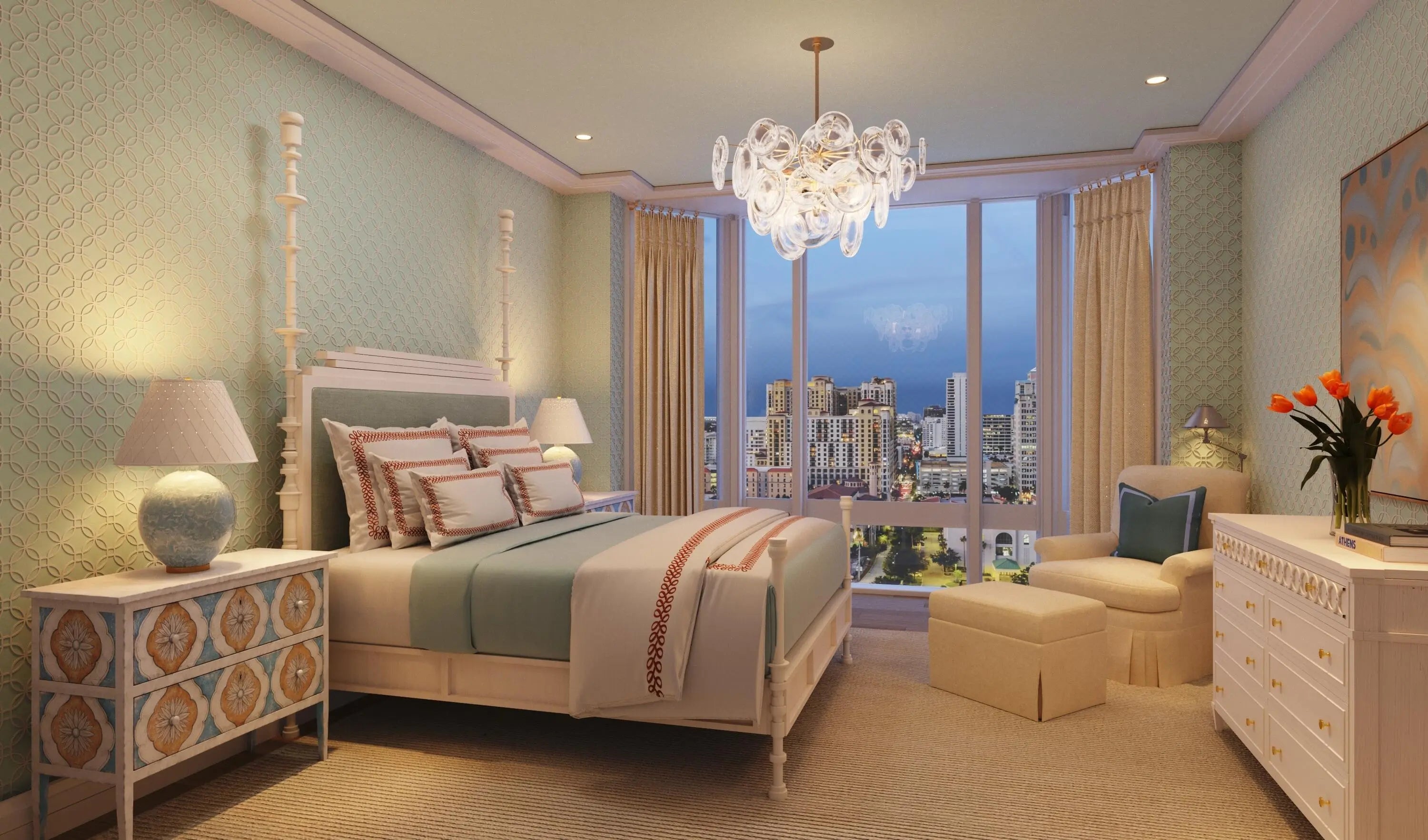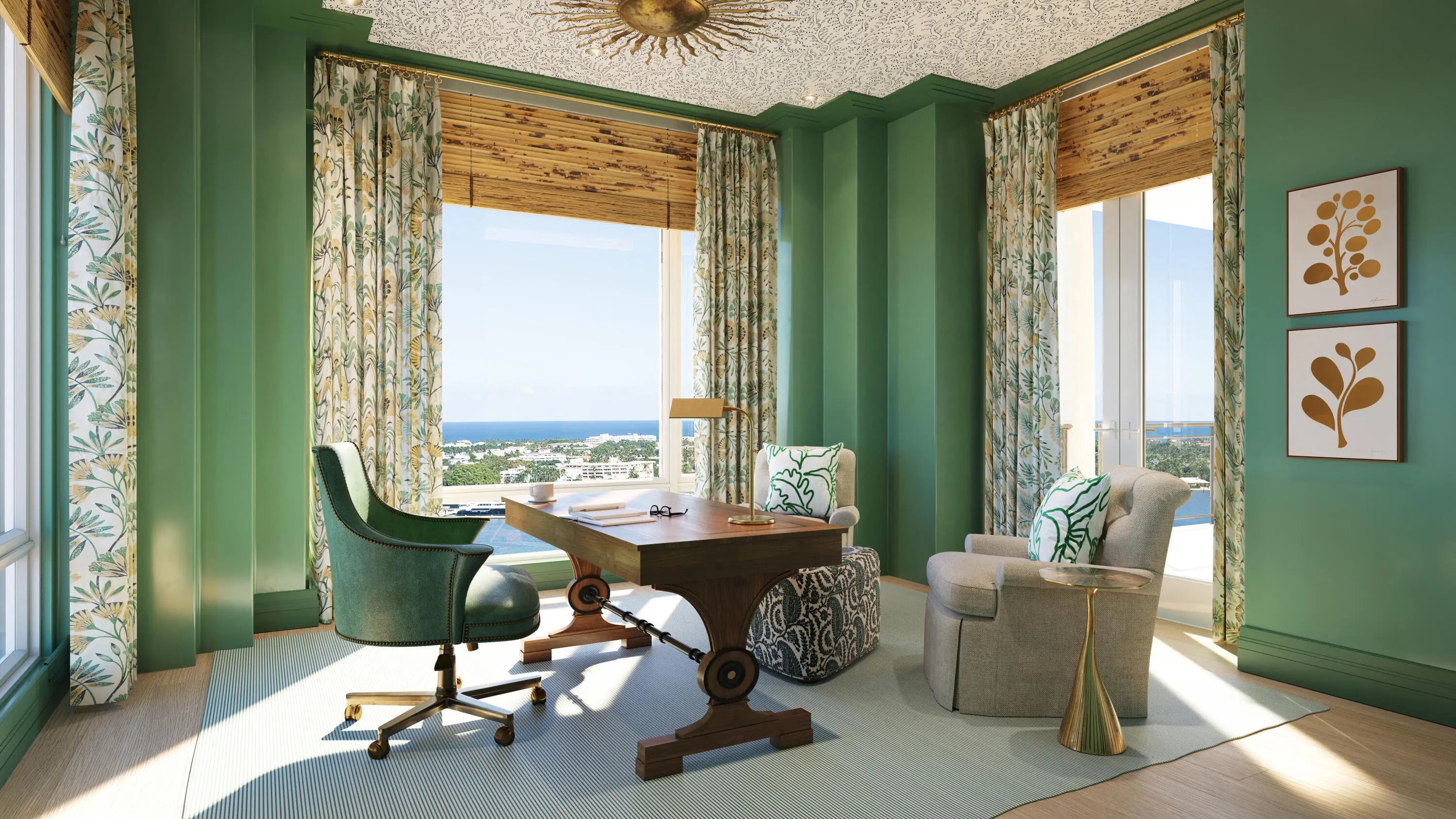 South Tower Residence 1601 is available turnkey, priced at $15,400,000. This stunning residence at South Flagler House boasts sweeping Intracoastal views and expansive entertaining space. Cece Bowman has envisioned a classic Palm Beach design with textured walls, trellis details, and pagoda-shaped doorways inspired by the property's lush gardens and ocean hues. This residence can be purchased furnished with Cece Bowman's design.