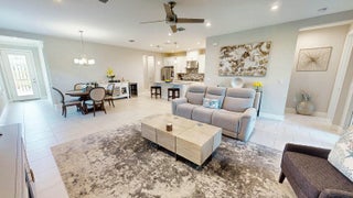 This stunning 3-bedroom, 2.5-bathroom former model home is packed with premium upgrades and thoughtfully designed for both comfort and style. From the moment you step inside, you're greeted by an open-concept floor plan that seamlessly blends elegance and functionality. The gourmet kitchen is a chef's dream, featuring 42-inch cabinetry, sleek quartz countertops, a gas cooktop, and high-end stainless-steel appliances. A spacious island provides additional prep space and casual seating, making it perfect for both everyday living and entertaining. Flowing effortlessly from the kitchen, the large family room is adorned with stunning tile flooring and abundant natural light, creating a warm and inviting atmosphere.The oversized master suite is a true retreat, offering plenty of space for relaxation and featuring an ensuite bathroom with his-and-her sinks, a large stand-up shower with custom tile work, and an expansive walk-in closet that conveniently connects to the laundry room for ultimate ease. The second and third bedrooms are versatile and well-sized, perfect for guests, a home office, or a creative space, and are served by a stylish second full bathroom. A half bath at the front of the home provides added convenience, making it ideal for visitors. Outdoor living is just as impressive, with a peaceful covered and screened lanai that offers a private retreat to enjoy morning coffee, outdoor dining, or simply unwinding in the fresh air. As a former builder's model home, this property is loaded with high-end finishes, custom upgrades, and superior craftsmanship throughout. With its functional layout, luxurious details, and move-in-ready appeal, this home is truly a must-see!
