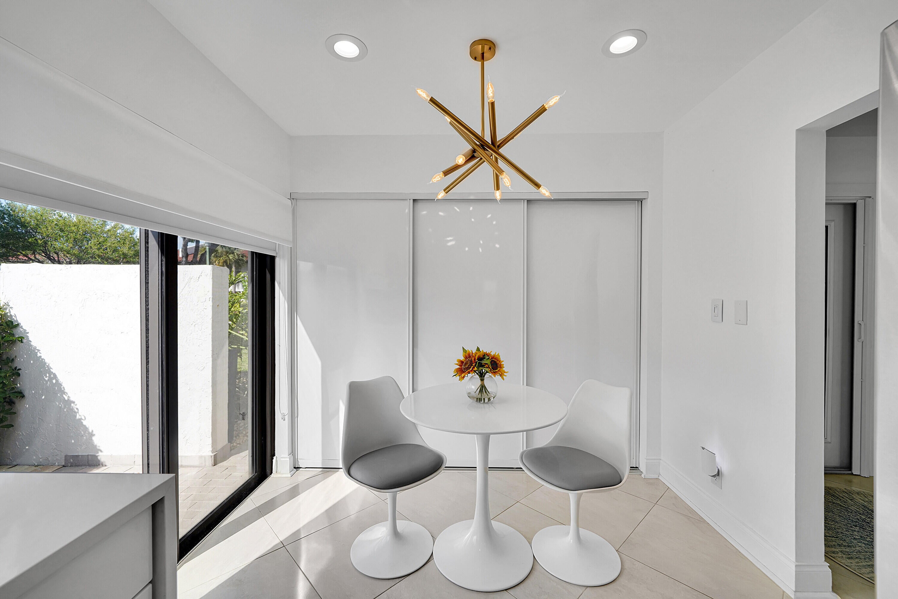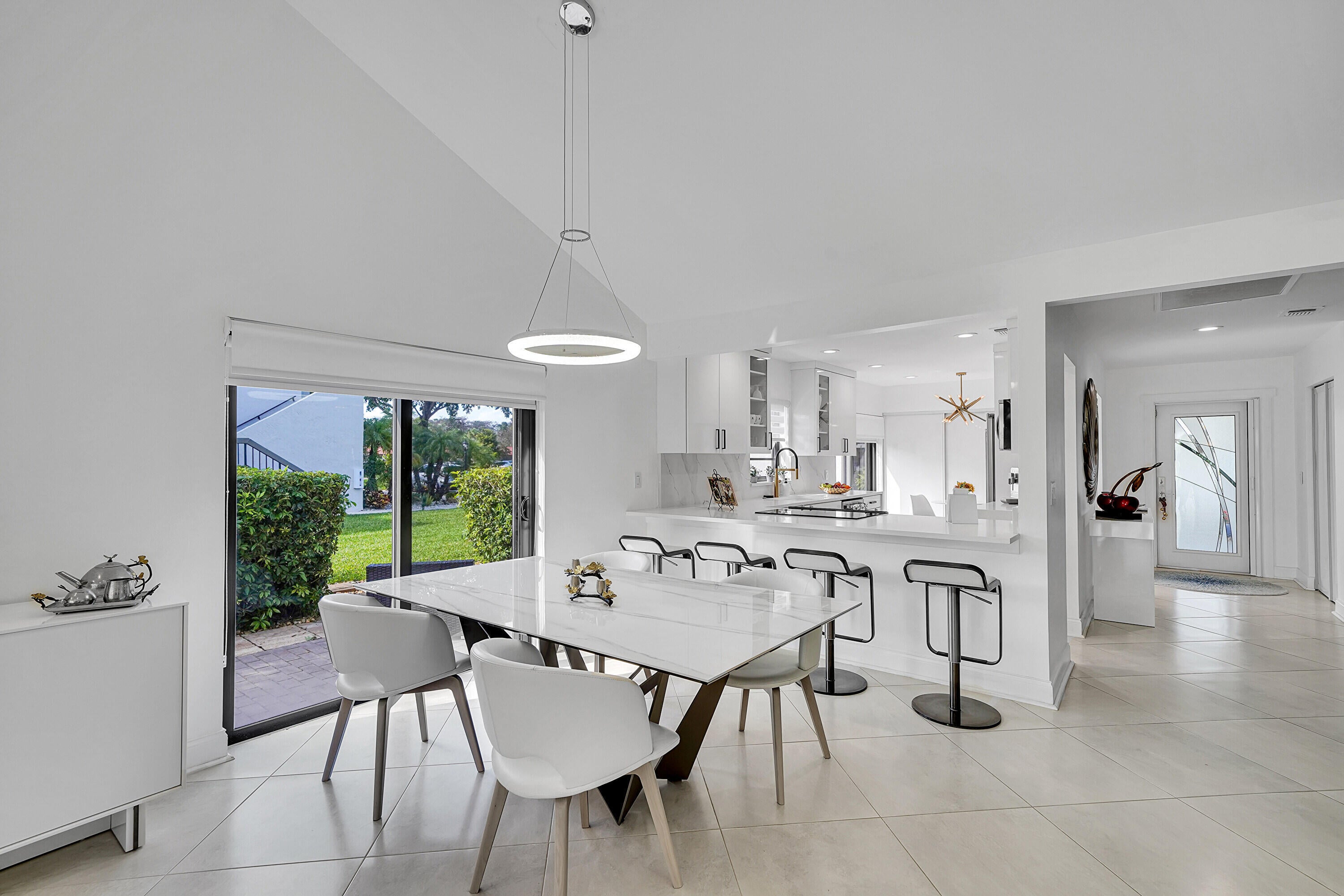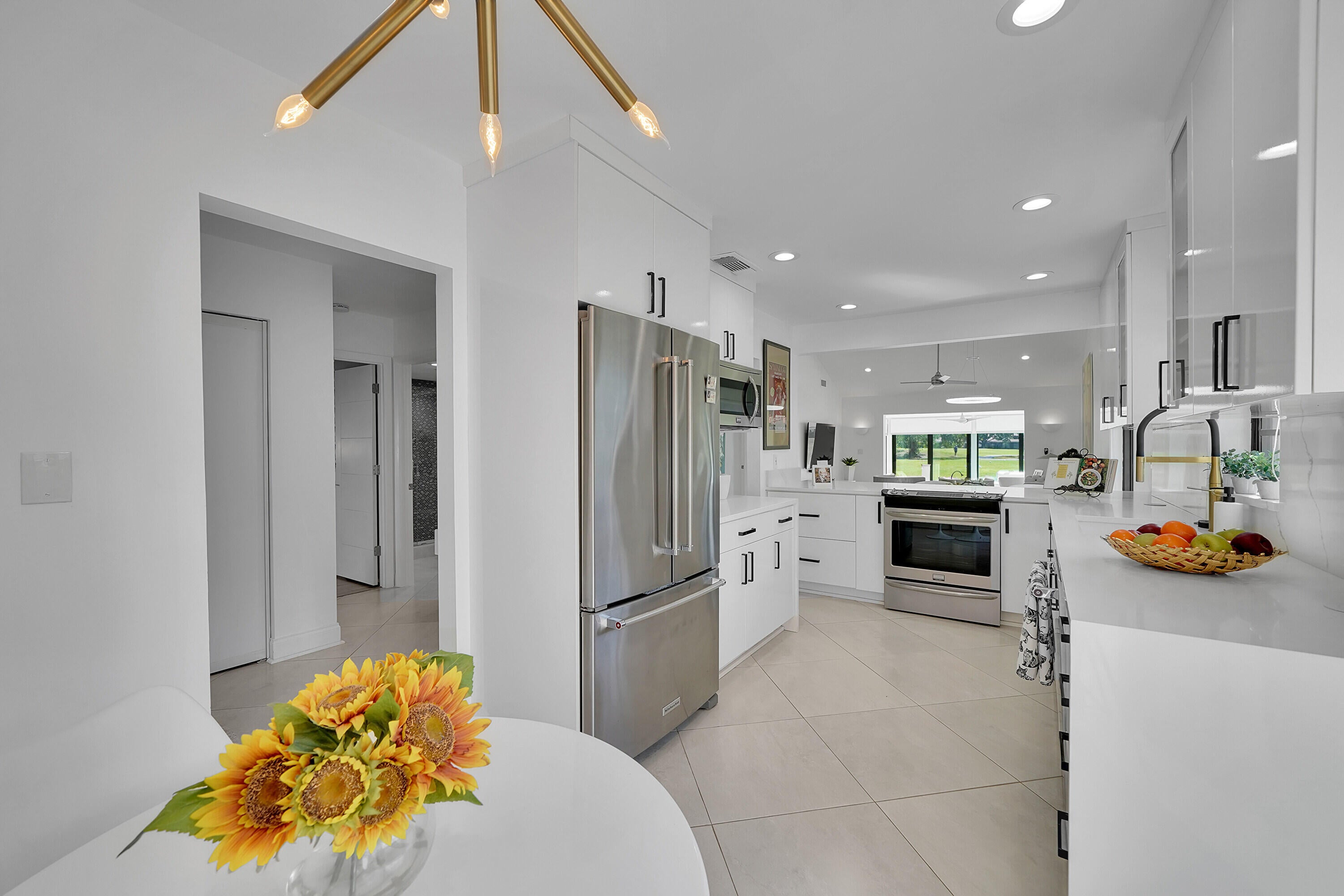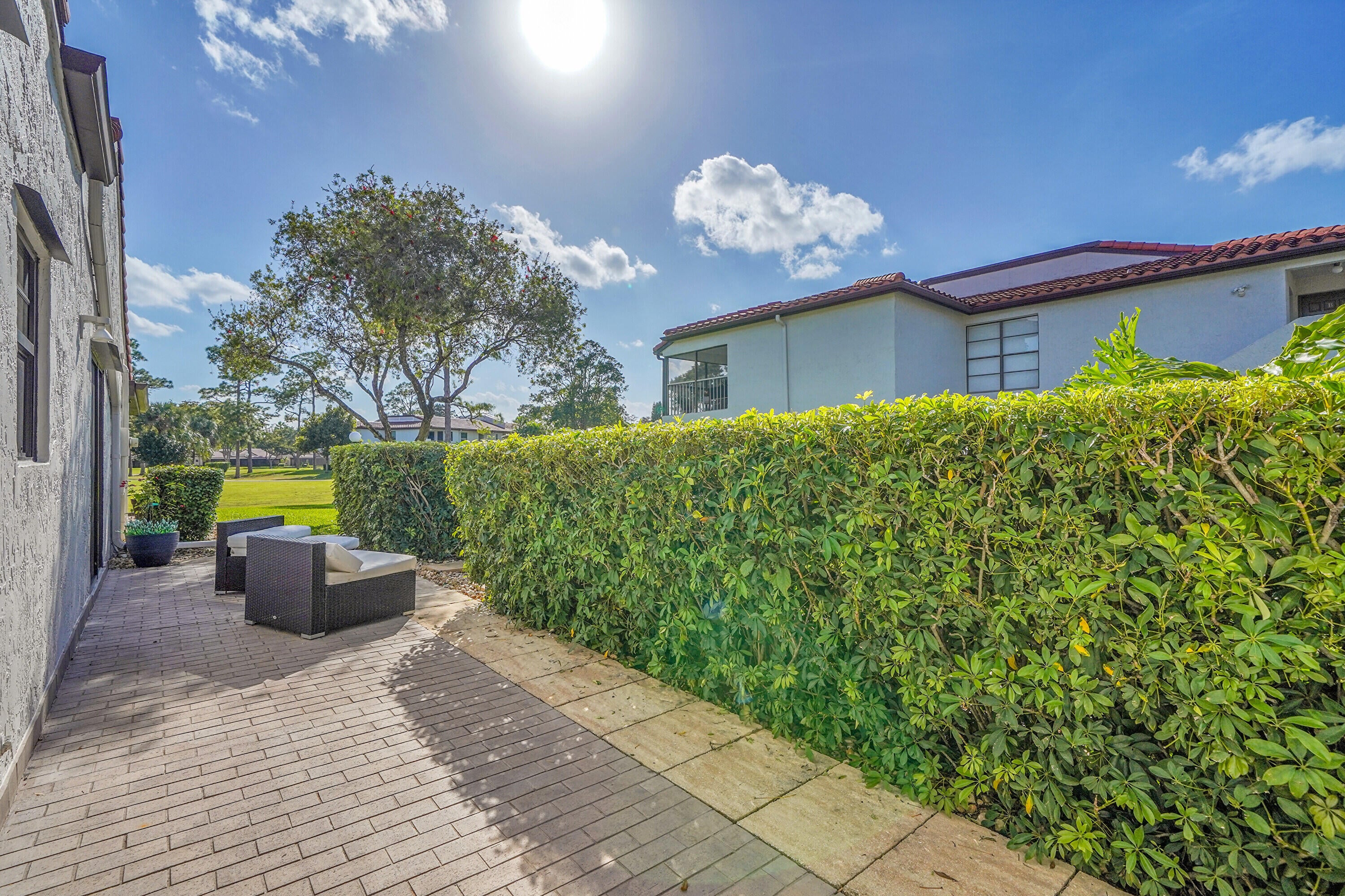 Beautifully renovated 2 bedroom 2 bath villa on golf course. Impact glass on all windows and doors. New roof,exterior painted in 2023,driveway paved 2024. New cambria quartz kitchen countertops and backsplash. Beautiful light fixtures and fans. Pop up electrical outlets. interior painted 2024 and no popcorn on ceilings. Custom closets. This is move in ready with nothing to do. Front patio and side patio for entertaining. Large glass enclosed back patio. Tankless water heater and full size washer and dryer. Feels like a private house. Cypresses has 2 pools and clubhouse. Not mandatory to join country club.
