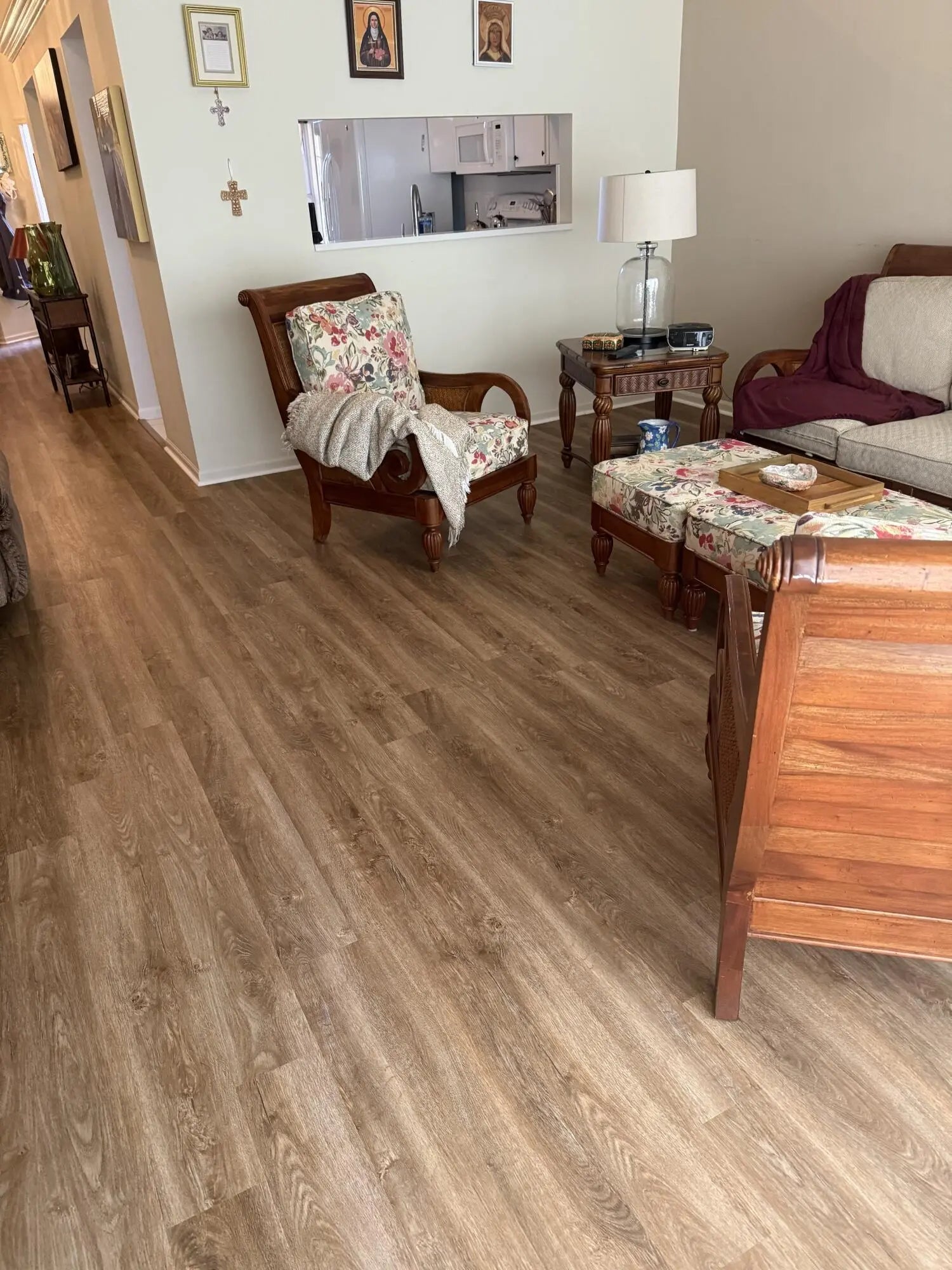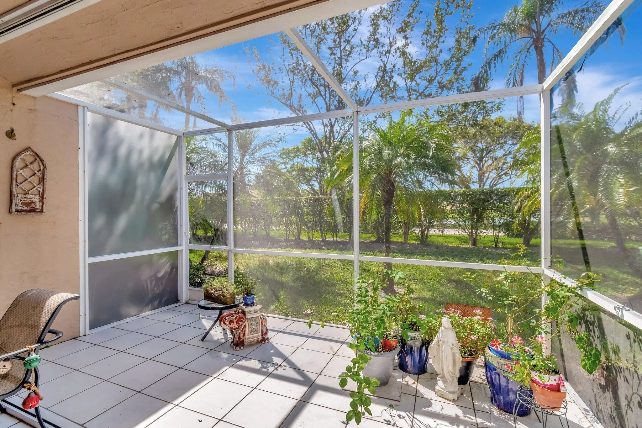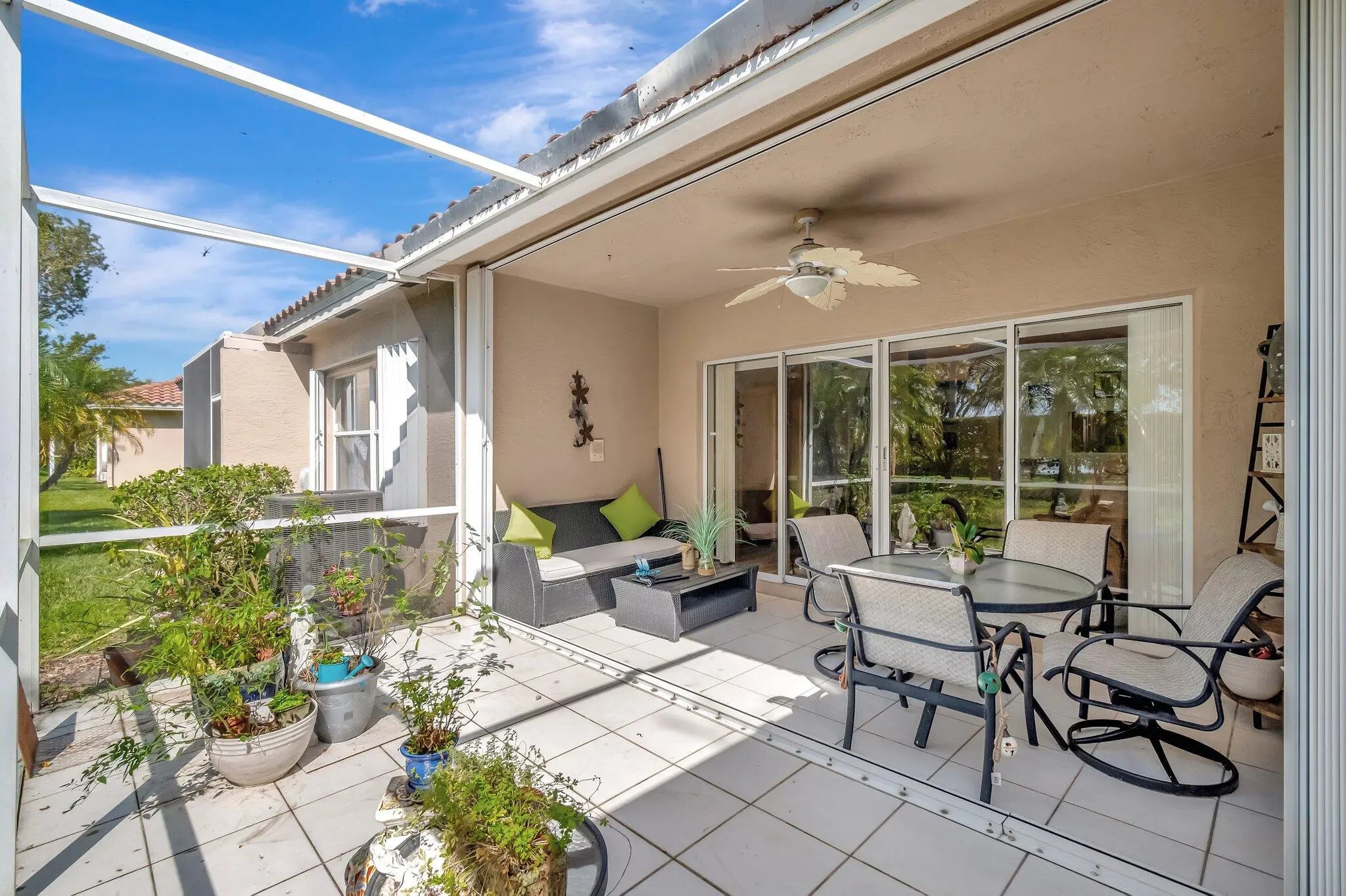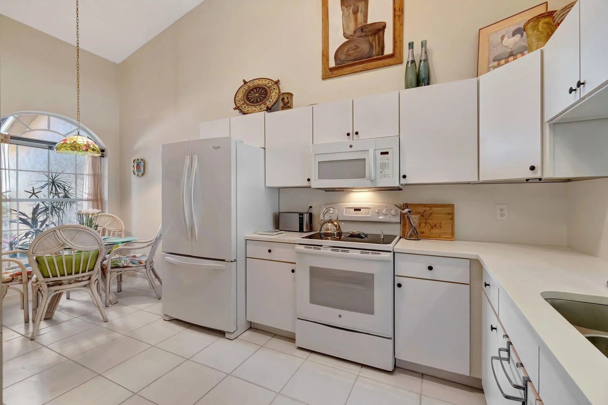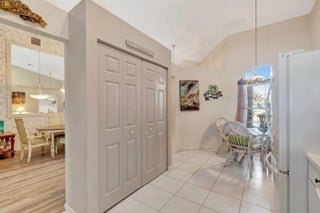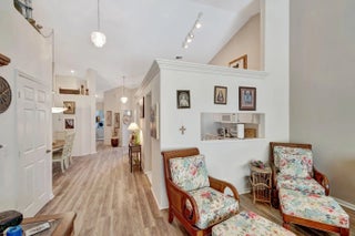 The Isles @ Aberdeen East is the only gated community in NON-Membership AberdeenEast. The HOA fee of $492 includes alarm monitoring, roof and outside building maintenance,(the villas will be painted this year.) cable, trash removal and landscaping . The barrel tile roof was replaced in 2017 and is good for 30 years This meticulously maintained villa features new luxury vinyl plank flooring, easy on the knees and pet friendly. The large updated kitchen features white cabinetry, quartz counters, newer appliances (Bosch and GE) new washer and dryer, breakfast nook and large pantry. The AC is 2022.and comes with a one year service contract The home has full accordion shutter protection. The vaulted ceilings make this Villa very light and bright. Furniture available, turnkey possible.