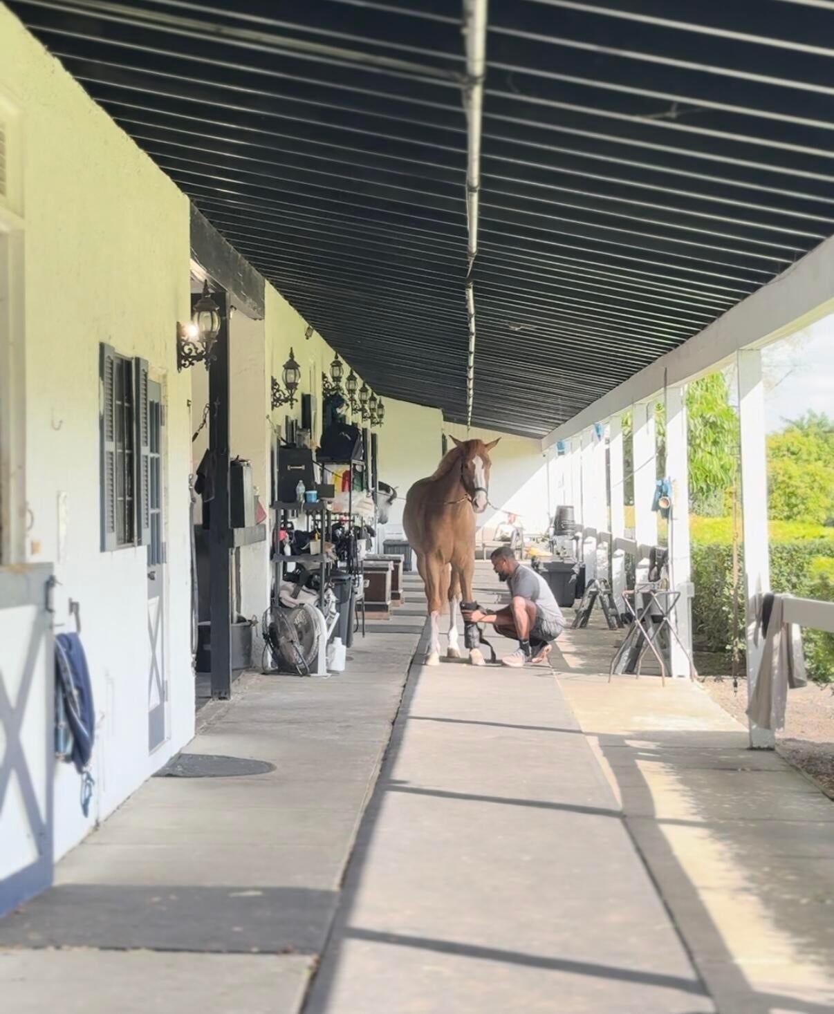 Beautiful 24 stall barn with 10 stalls available. Round pen and walker arena