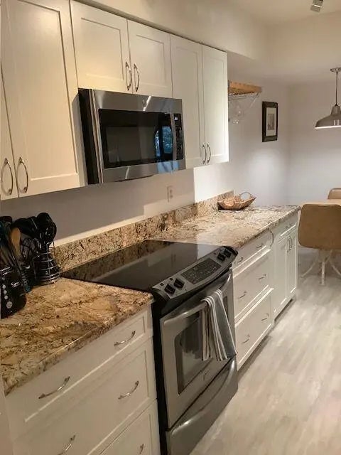 Unique opportunity to own a viable income property, seasonal retreat or just an updated condo, with furniture available, in Delray Beach, Florida. This split plan 2 bedroom 2 bath condo, with open floorplan, boasts an updated kitchen, designed for function and entertaining, with granite counters, stainless appliances ,oversized passthrough to the living/dining areas. The master en-suite, with step in shower, and guest bathroom, also with step in shower, are tastefully updated. The garden & tennis courts view makes morning coffee even better. Water, cable, Wifi, multiple pools, gym and more is incl in the maintenance. Tennis player? The multiple hartru courts are on a pay as you play or membership availability. 1 mile from the beach, close to shopping ++more.