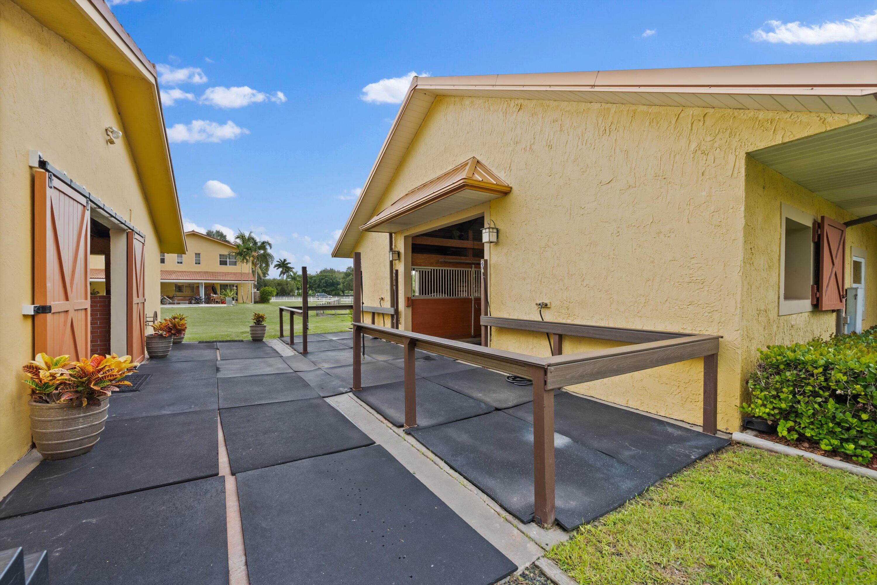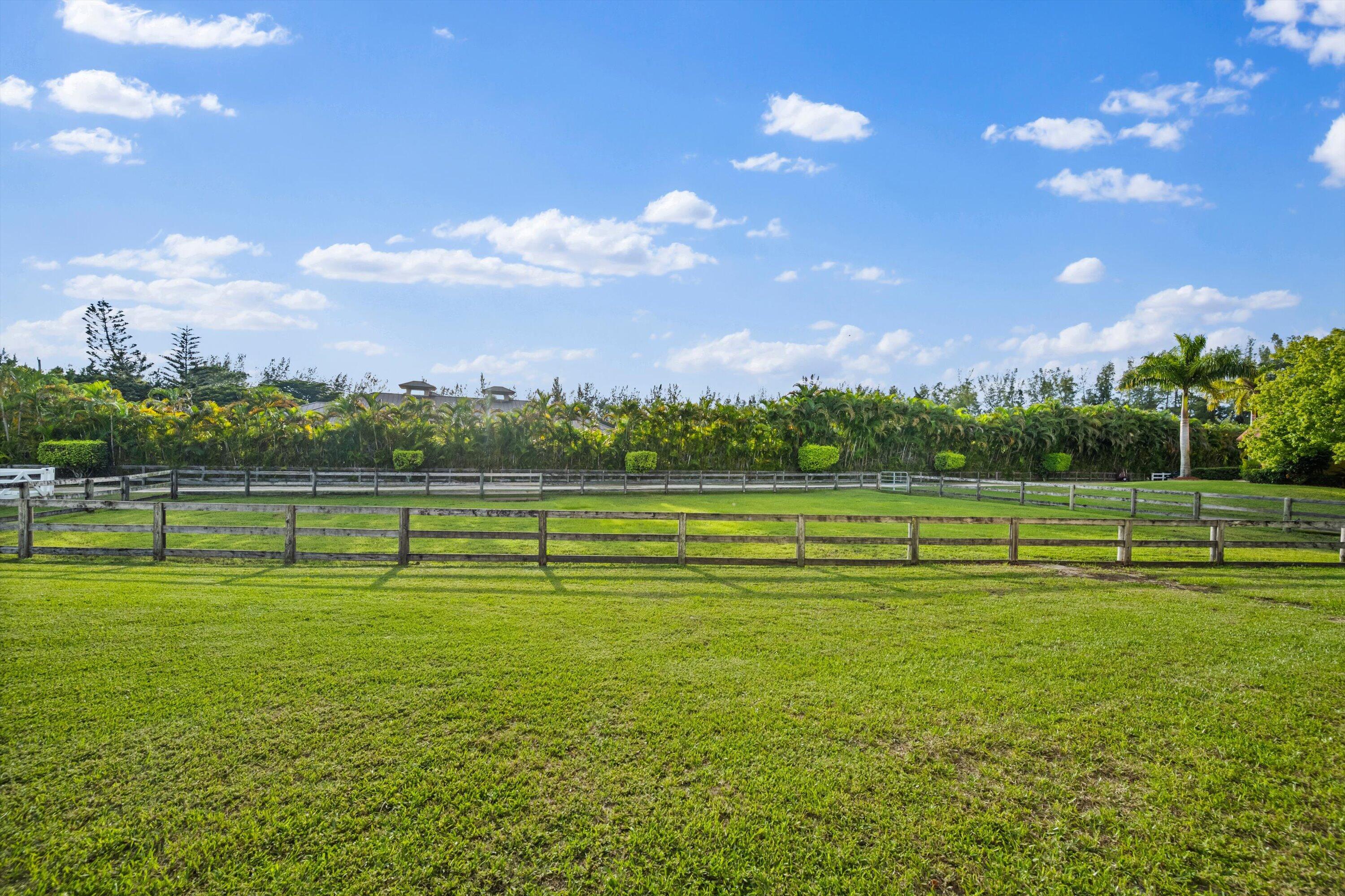 10 dry stalls available in the gated, natural community of Homeland. This lovely barn sits on 5 acres with trails accessible behind the 115 x 200 ft. sand ring with auto irrigation. Stalls are 12 x 12 in the main barn that includes a feed, tack, and restroom. Property features five oversized grass paddocks, jumps, and newly improved wash racks. You will find this location very peaceful and serene, surrounded by lush Florida landscaping. Just 4.5 mi. from the south entrance to Wellington International Showgrounds. Available annually, or a 2 month minimum seasonal lease.