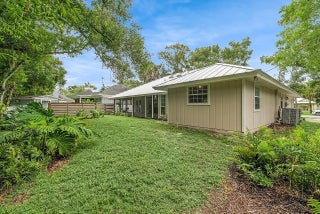 This 3/2 split floor plan home sits on nearly 1/3 acre. Located in a quiet neighborhood with no HOA. Inside is a spacious layout featuring a versatile bonus room, ideal for a second living area or home office. Step outside and relax in your screened lanai to unwind amid lush landscaping and the shade of several large trees. Recent updates include: standing seam metal roof with new skylights (2024), remodeled primary bath shower, new well pump, and fresh exterior paint (all 2025). Enjoy the convenience of being minutes from shopping, dining, parks, and the beach. Sellers are motivated to sell!