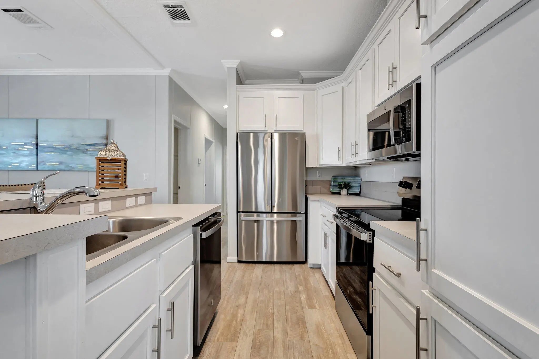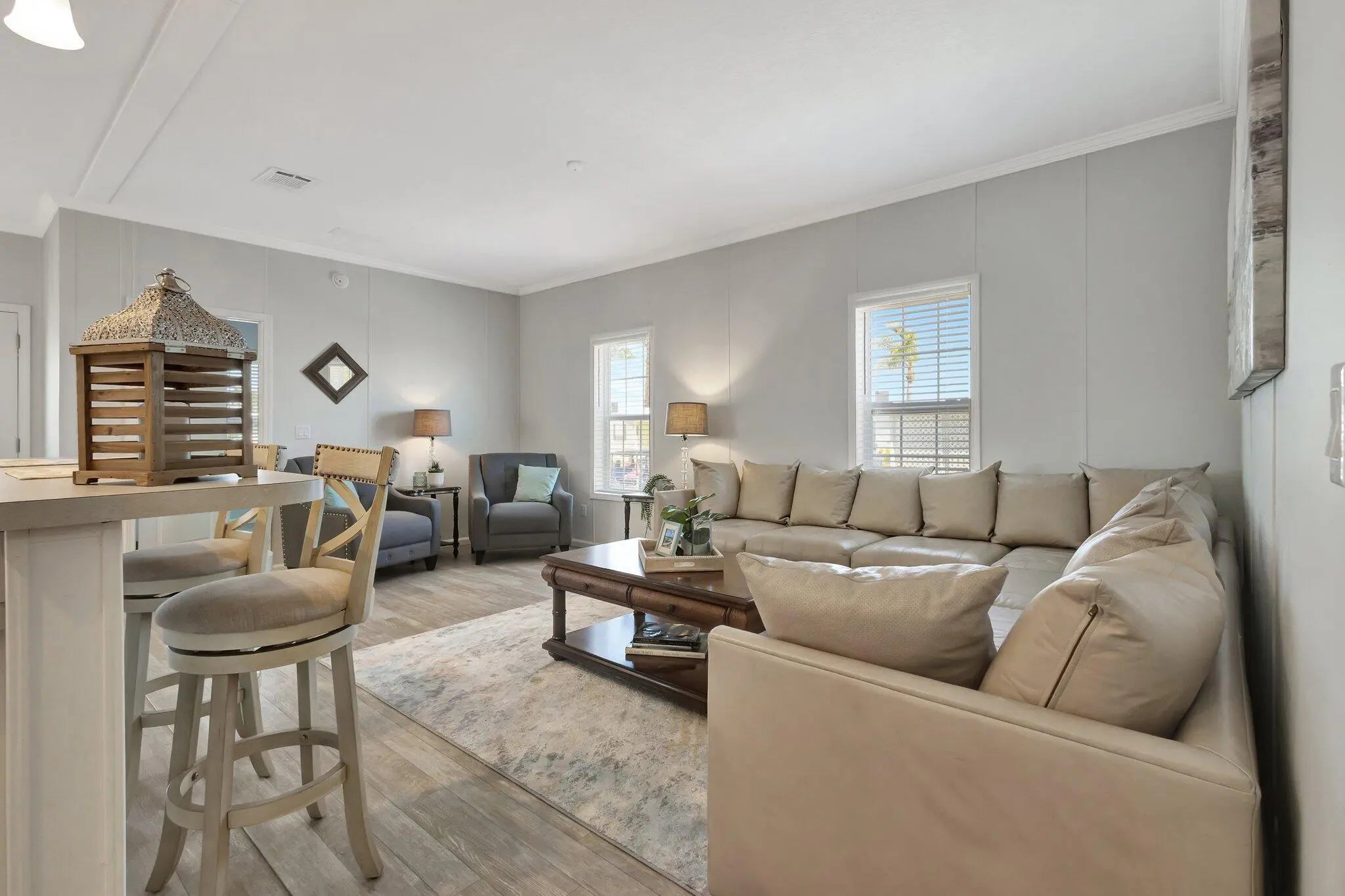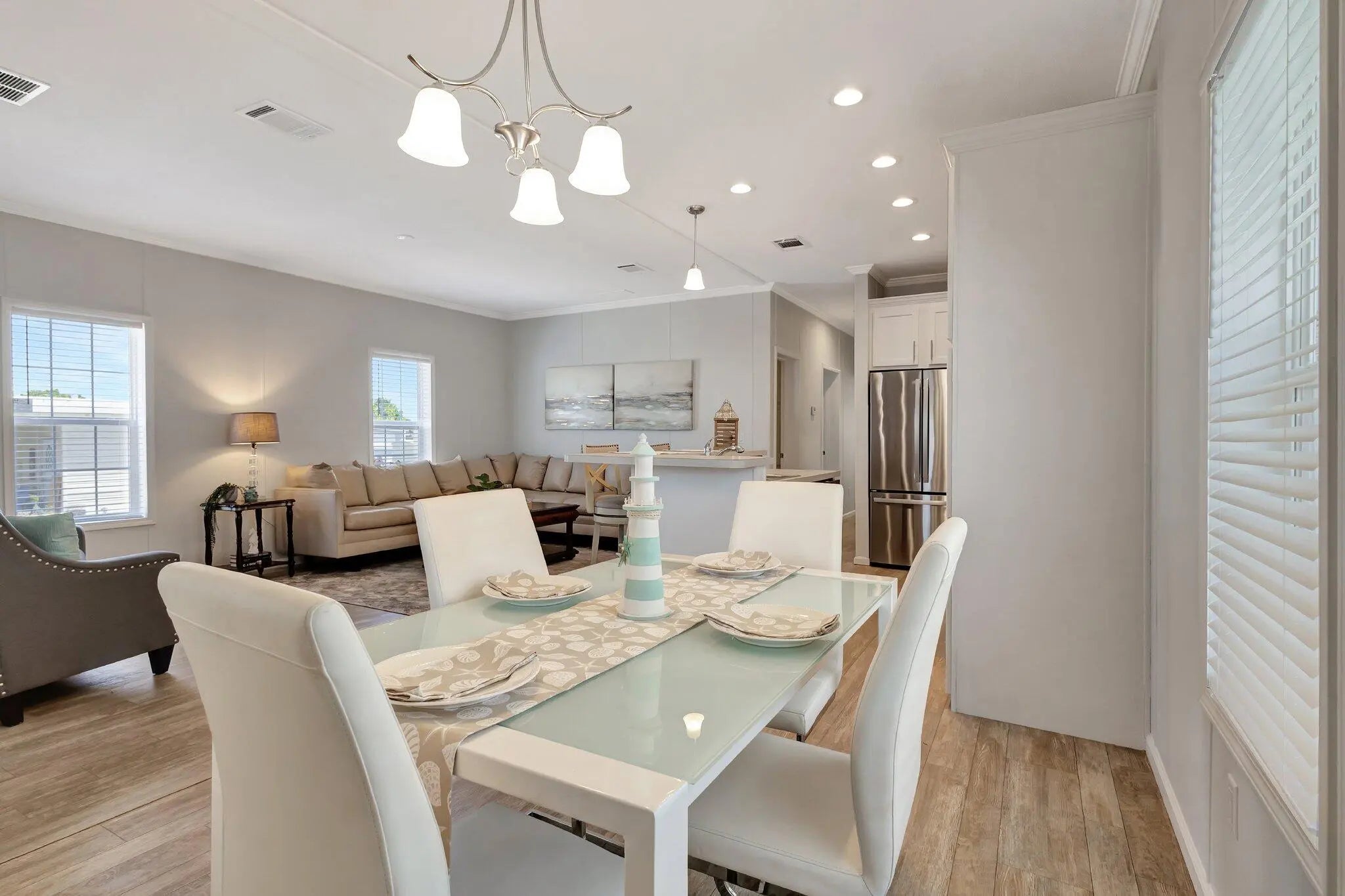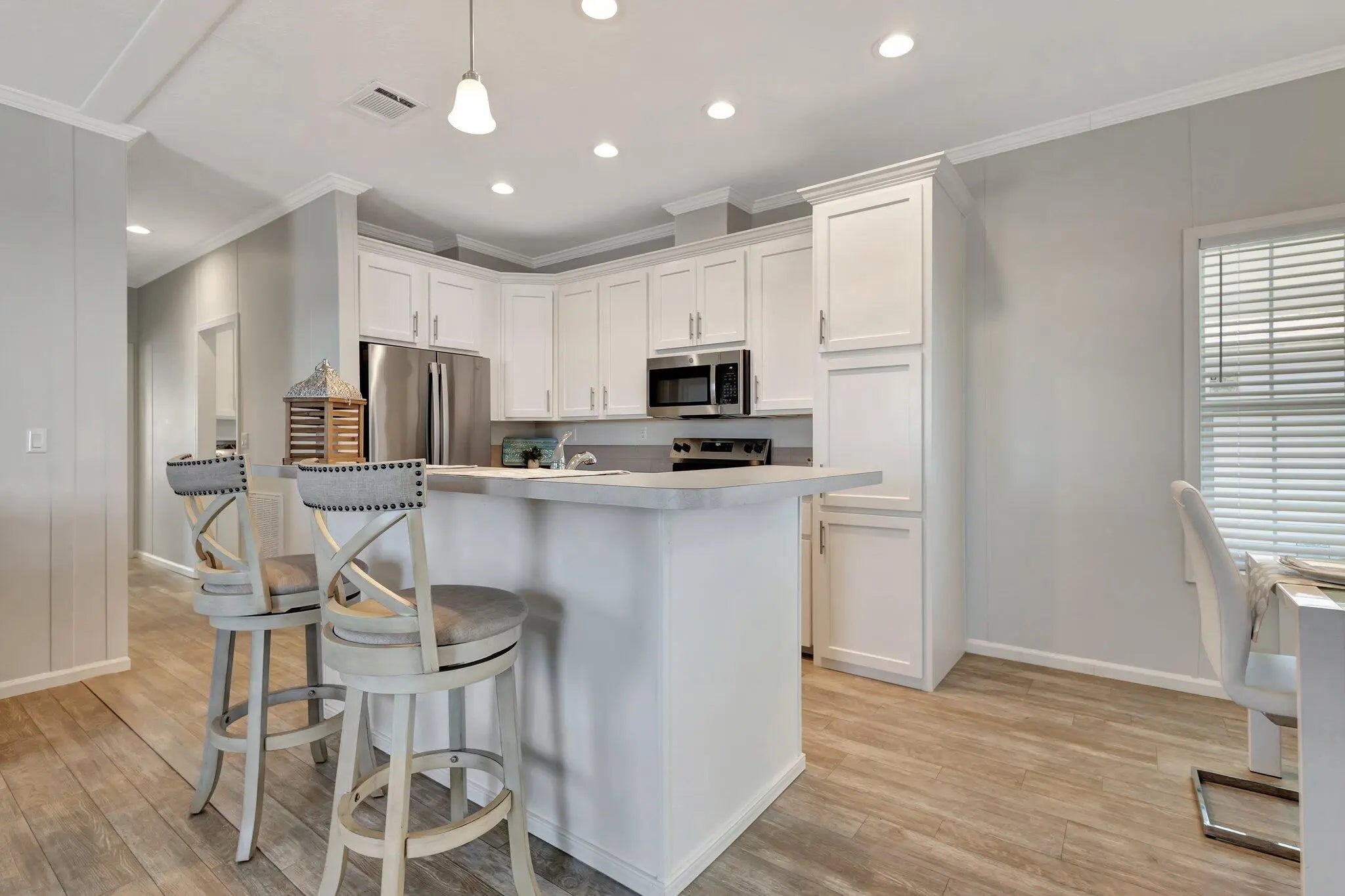 BRAND NEW! NO LAND LEASE! This furnished Imperial Jacobsen model includes 1240 sq ft with 3 bedrooms, open kitchen into living area, stainless steel appliances, oversized laundry room inside, walk-in closets, large attached shed, carport and driveway already installed, adorable front porch ready for you to enjoy your morning coffee on! The 3rd bedroom could be used as a flex room for guests, office, den, or hobby room. Jamaica Bay has LOW monthly HOA dues of $250 including internet, lawn care, water, sewer, trash removal, 24/7 manned gate, on-site property manager, maintenance staff and multiple amenities (heated pools, clubhouse, billiards, bocce ball, shuffleboard, library, putting green, dog park, additional storage for RV / motorcycle parking, and multiple social events).