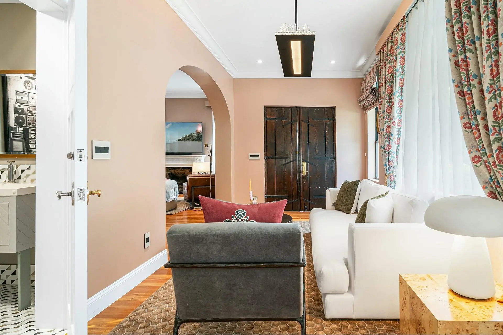 SHORT TERM ONLY; MINIMUM STAY 7 DAYS. Luxury magnified. Breath taking remodel of historic home a block from the Waterway! Mosaic marble tile lines the exterior walkway and breakfast room. Natural gas grill. Stunning half bath on the main floor. First ensuite includes brushed gold fixtures with backlit mirror. ZLINE appliances include professional natural gas range, wine cooler & dishwasher. Sublime polished marble floor and backsplash, quartz countertops, custom wood cabinets to the 12' ceiling. Plenty of extra dining space in the relaxed breakfast room with wood ceiling. Adjacent cozy ensuite for guests. Rooftop entertaining space. All this in THE destination for travelers from around the world! It's time: leave the stress, come decompress, & LOVE WHERE YOU LIVE!