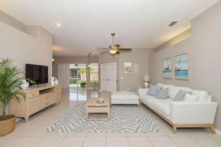 Beautiful ''Regency'' Model at Isle of Capri in Kings Isle (55+ community) in the heart of St Lucie West. Features CBS Construction, concrete driveway, front porch & back screen enclosed lanai. Hosts 2 BR's, Den, 2 BA's & 2 CG. Stunning eat in updated kitchen, 42'' Cabinets, pantry, Island, granite counter tops & stainless steel appliances. Details include Volume Ceilings, tile in main areas & den, split floor plan & move in condition. Large Master suite with walk in closet & Master Bath offers popular Safe Step walk-in Tub. Bathroom 2 has an updated fabulous shower. Screen enclosed lanai with garden view. HOA includes Manned gated security, common areas, lawn care, cable, internet & The Royal Club with something for everyone! Resort style pool, gym, tennis, pickle ball, clubs & MORE!