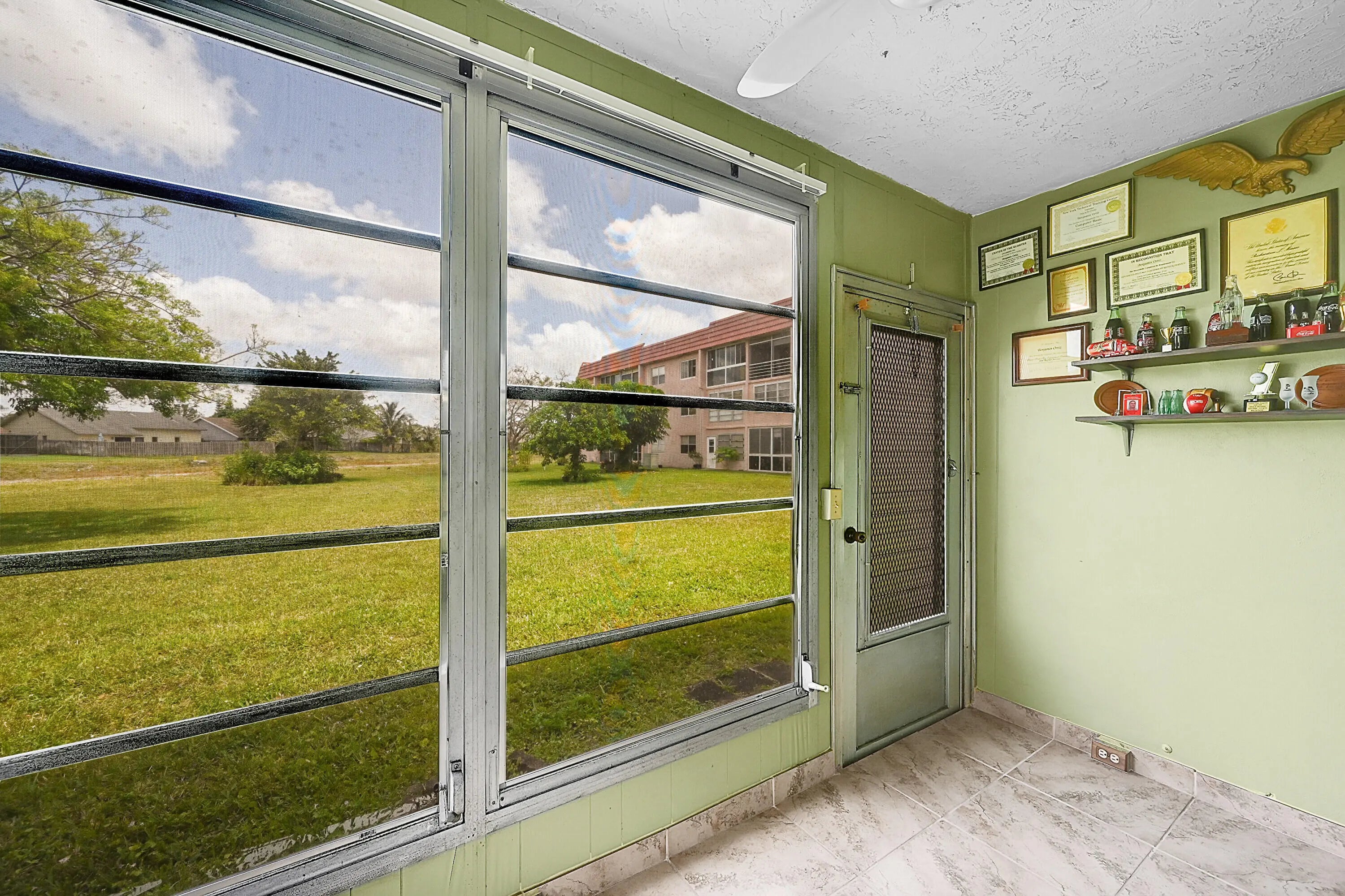 Move-in ready, 2-bedroom, 2-bath first-floor condo offers a spacious layout with a covered and screened Florida Room overlooking serene views. Located in Phase 3, this is currently the most affordable condo in Sunrise Lakes. The split-bedroom design provides excellent privacy and abundant closet space. Close proximity from the community pool. Sunrise Lakes is a vibrant 55+ community packed with amenities, including a golf course, multiple heated pools, fitness center, billiards, pickleball, tennis, shuffleboard, theater, ballroom, bingo nights, holiday events, a courtesy bus, and more! The HOA covers basic cable, water, pest control, and access to the clubhouse.