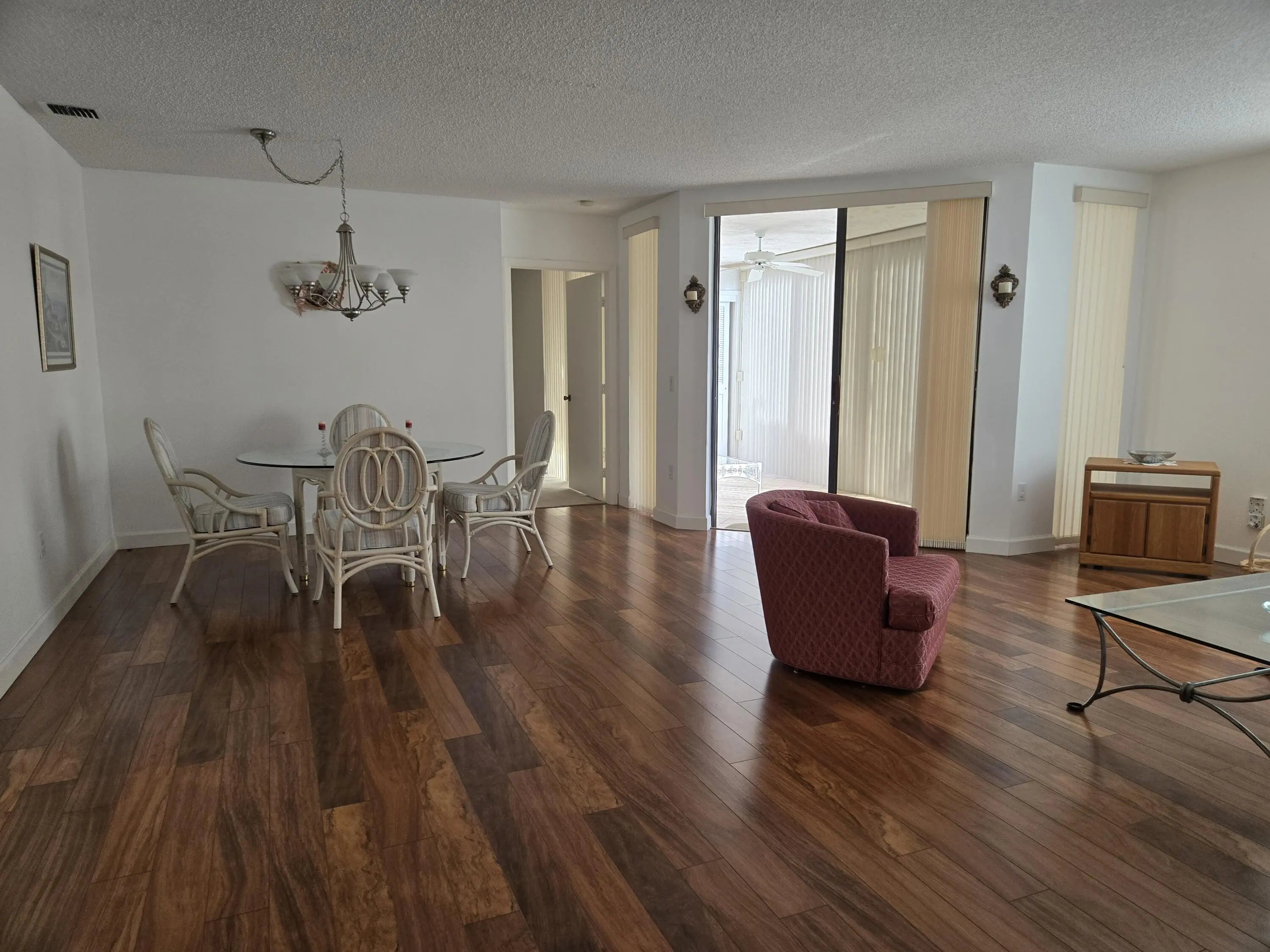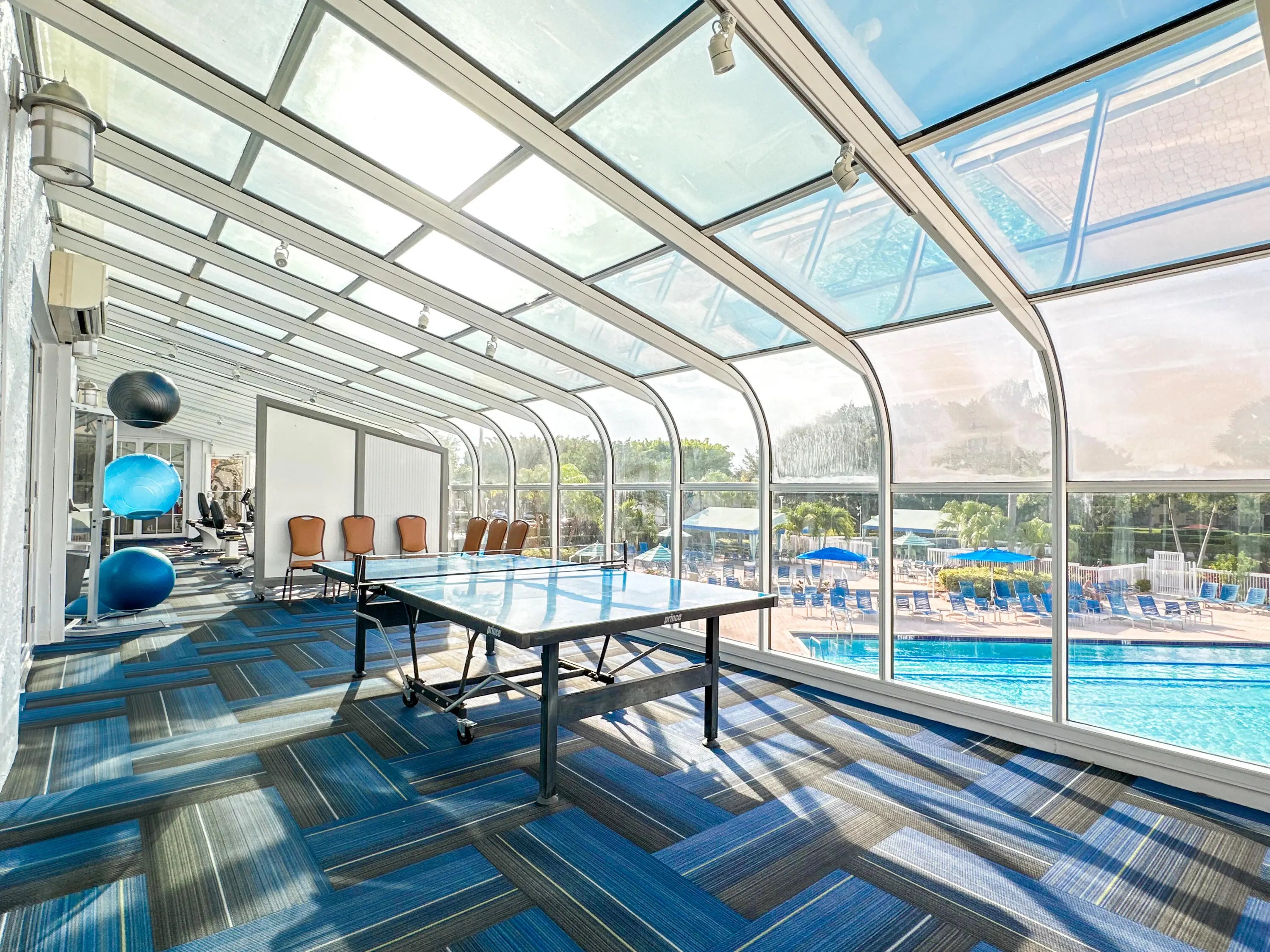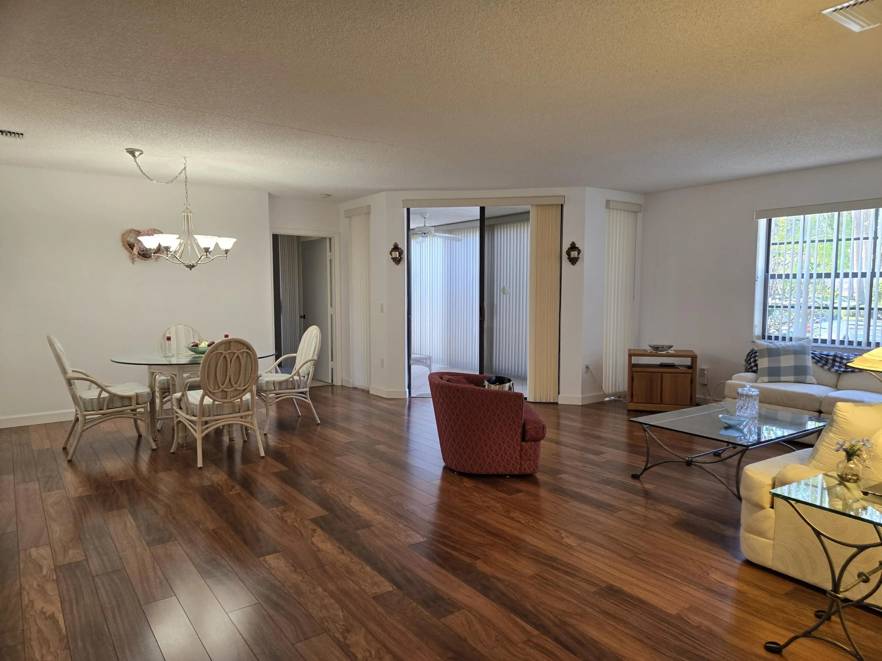 Move in ready! Platina is a guard gated community with villages surrounding a beautiful clubhouse, pool and tennis area. Enjoy card rooms, a theatre with live shows, a cafe, an art room with a kiln, gym, pickleball, and an on site manager. Lovely first floor unit has an enclosed Florida room/extra storage. Immaculate, large open bright living and dining room plus eat in kitchen with pantry. Plenty of closets and storage. Den could become the 3rd bedroom. Full size washer dryer. Close to all the amenities Palm Beach County Florida has to offer. World class shopping, dining, beaches, parks, water sports, boating and fishing, plus Florida Atlantic university close by. Perfect place to call home. Live, work, play in beautiful Boynton Illustre Village Platina. Furniture can stay if wanted.