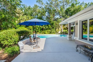 Concrete Block Construction, 2015 Tile Roof and situated on a gorgeous very private lot. This spacious home offers an open, flowing floor plan that overlooks a fabulous outdoor area with covered porch and large family pool. Complete with vaulted ceilings, big kitchen, breakfast nook, living room/wet bar, formal dining room and a huge primary suite that opens to the pool. The oversized two car garage will accommodate a golf cart. Scoot over to the private beach access or enjoy riverfront sunsets in the community park. Near St Edwards and Beachland school district. Less than 2 miles to the bridge.
