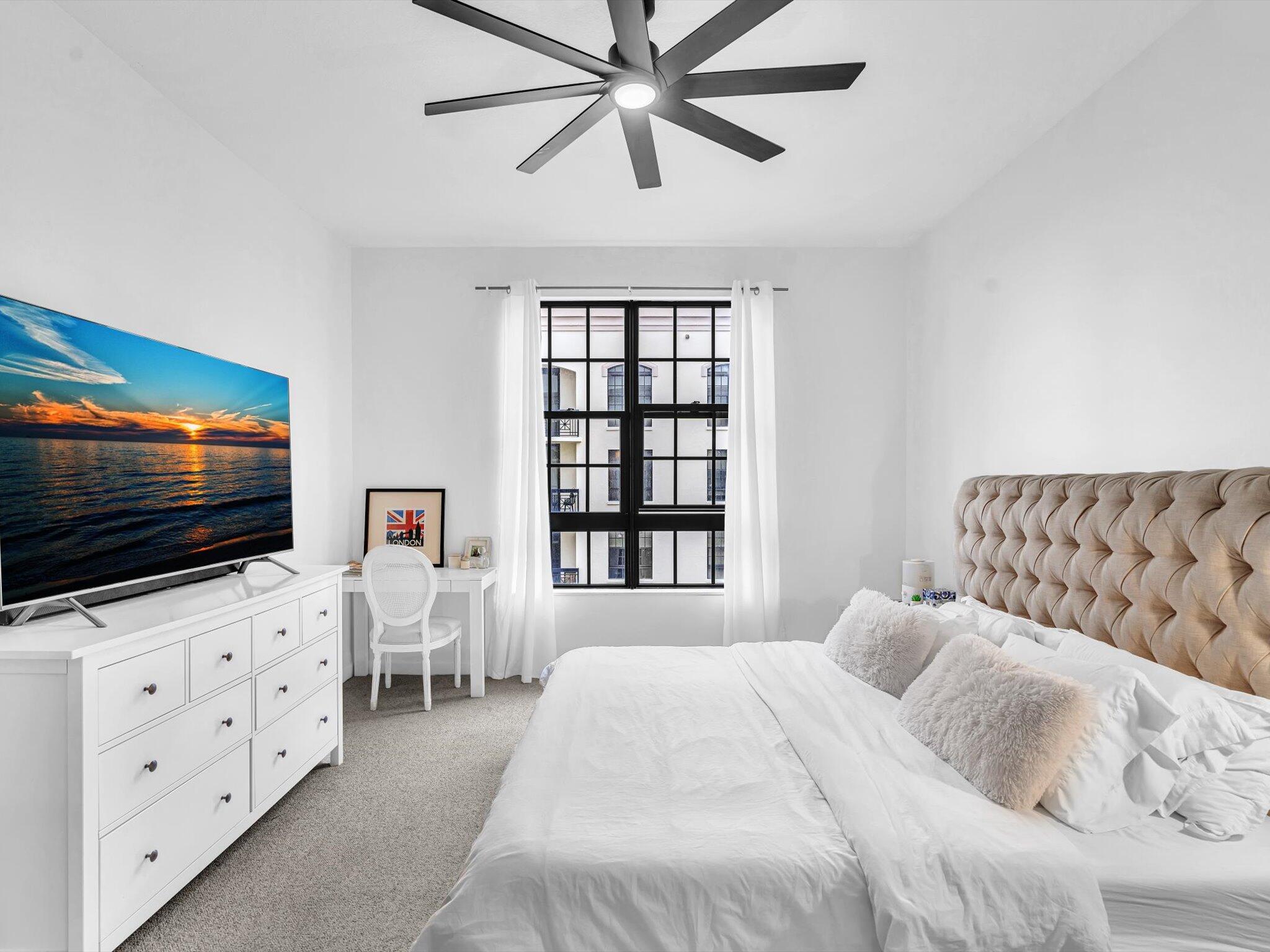 Live WPB to the fullest! This bright, fully renovated 2BR/2BA features a sleek white kitchen with quartz island, custom closets, utility room, and balcony overlooking palm trees and courtyard fountains--perfect for daily sunsets. Enjoy 24/7 concierge, valet, rooftop pool with ocean views, gym, sauna, steam room, BBQ, and exclusive social events. Live luxury in one of Downtown West Palm Beach's most desirable buildings. Easy to show! (Offered furnished annual for $6750)