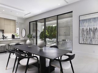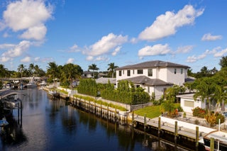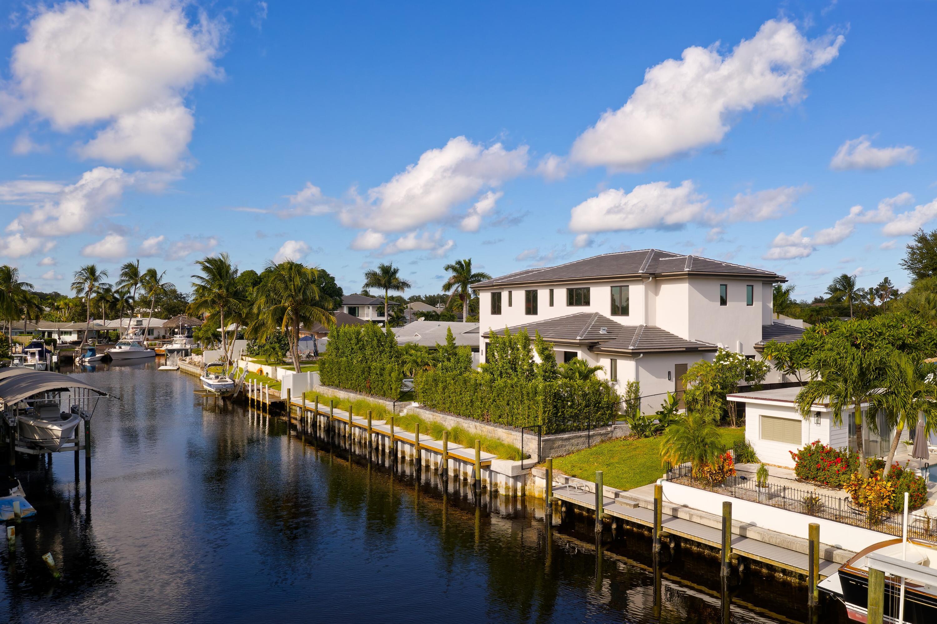 Balancing modern elegance with a true waterfront lifestyle, this brand-new construction by Dell Development is a standout offering in the prestigious boating community of Paradise Port, located in the heart of Palm Beach Gardens. This exceptional 4,920-square-foot estate boasts 95 feet of waterfrontage with a brand-new seawall and delivers refined luxury in a thoughtfully designed two-story layout. Featuring 5 bedrooms and 6 bathrooms, the home seamlessly blends sophisticated design with functional comfort. From the moment you enter, clean architectural lines and a light-filled open layout make a lasting impression. The main living area showcases neutral-toned large-format tile, a sleek stone-surround fireplace, and expansive 10-foot floor-to-ceiling sliders that blur the linebetween indoor and outdoor living. The open-concept kitchen and dining area is both elegant and highly functional, anchored by a wall of custom sleek cabinetry and outfitted with premium Sub-Zero and Wolf appliances. Alabaster-toned lower cabinets pair beautifully with coordinating quartz countertops, full-height backsplashes, and a striking waterfall island. The ground-floor primary suite serves as a serene private retreat, featuring warm European white oak flooring, dual walk-in closets, and a spa-style bathroom with a soaking tub, dual showers, and dramatic floor-to-ceiling large-format porcelain tile. Upstairs, a spacious loft and office provide flexible living options, while four additional guest suites each offer en-suite baths and walk-in closets, ensuring privacy and comfort for family and guests. Outdoor living is equally impressive, with a full summer kitchen, a sparkling pool and spa with elegant deck jets, and a see-through fireplace with a built-in media wall. The open-air patio is framed by lush tropical landscaping and includes multiple zones for entertaining, sunbathing deck, lounge seating, and al fresco dining area. Just off the patio, a private stairway leads to the dock on a tranquil interior canal with direct access to the Intracoastal. Completing this exceptional backyard paradise is an outdoor tackle room for convenient boat and gear storage.