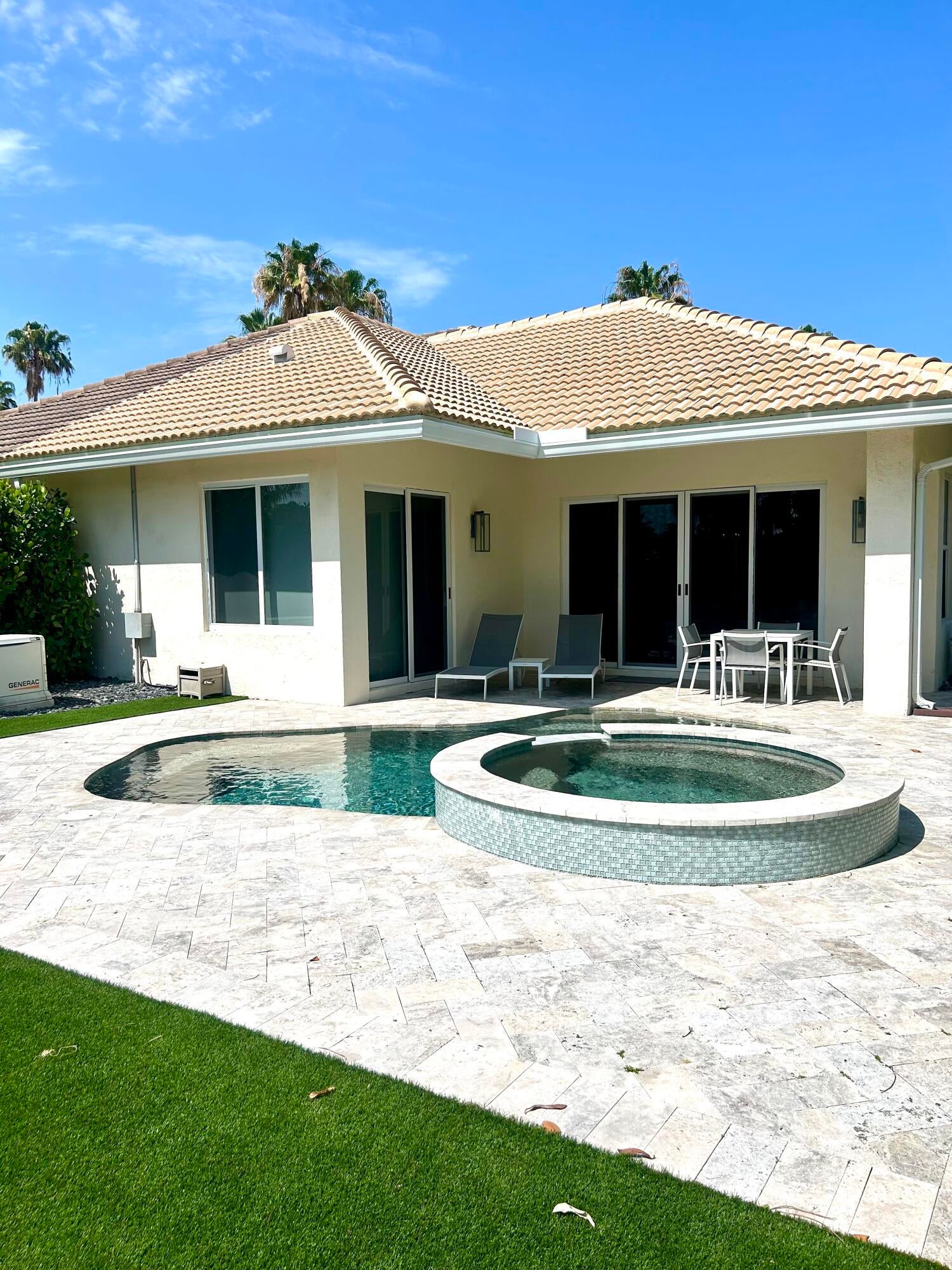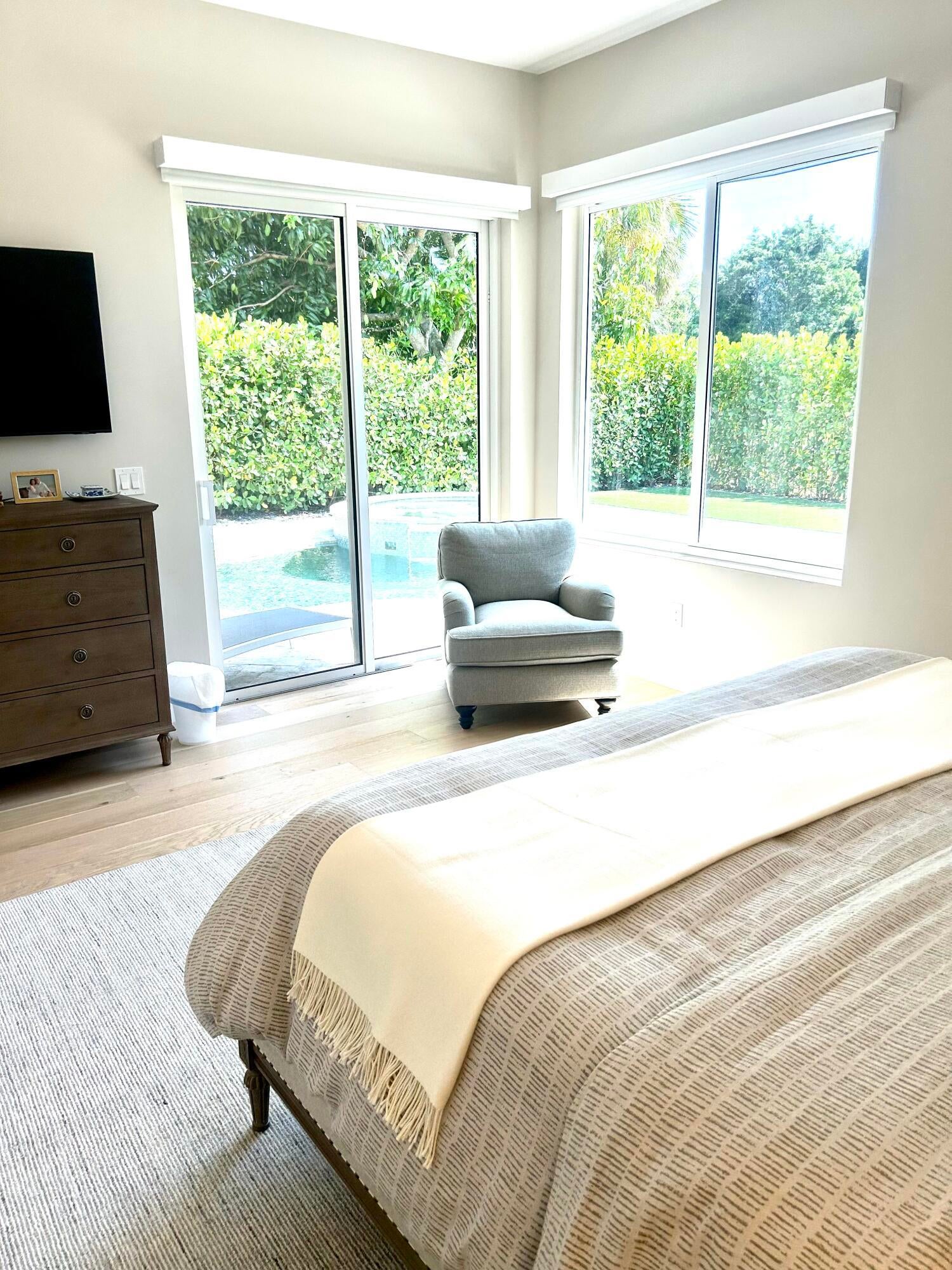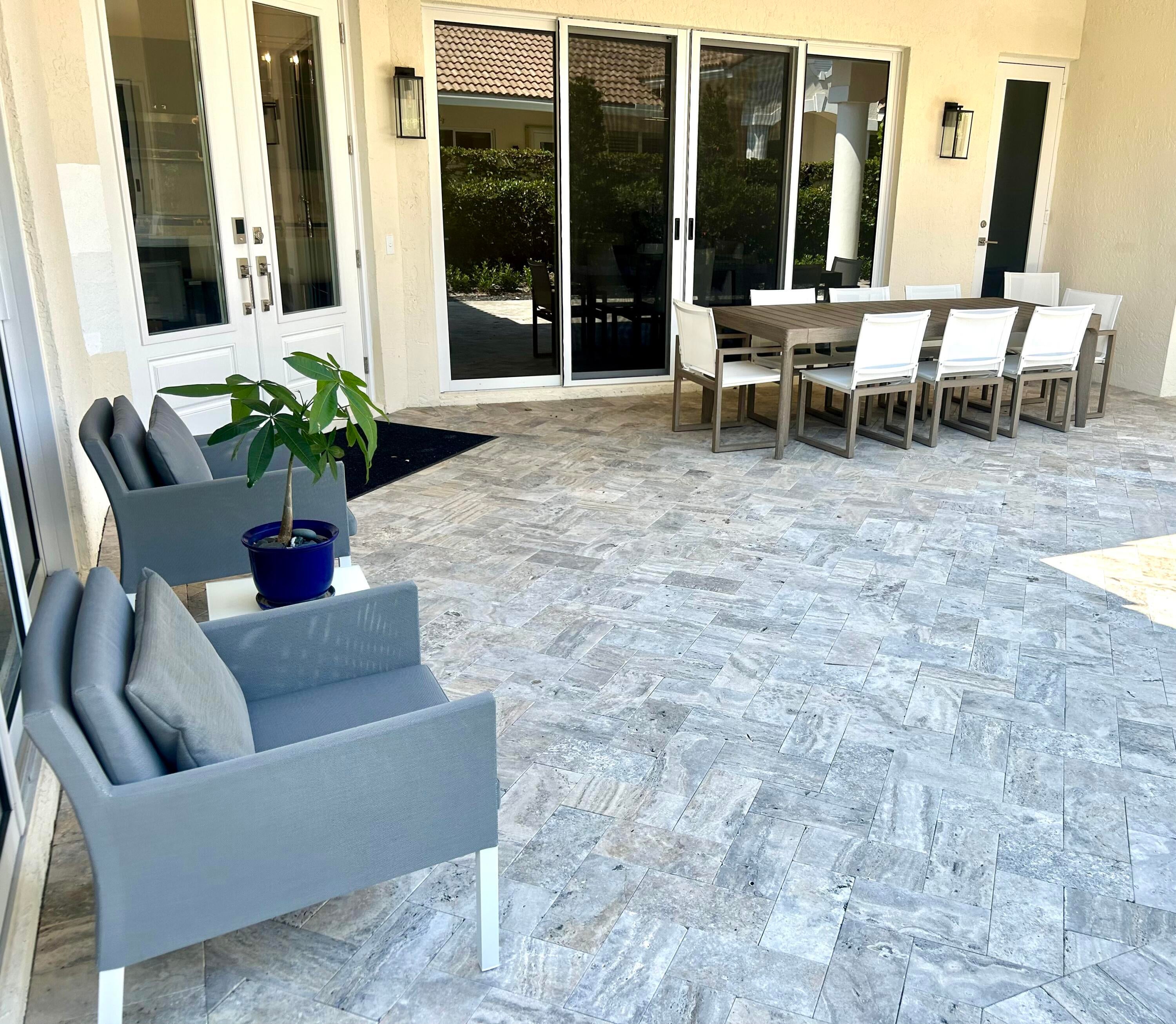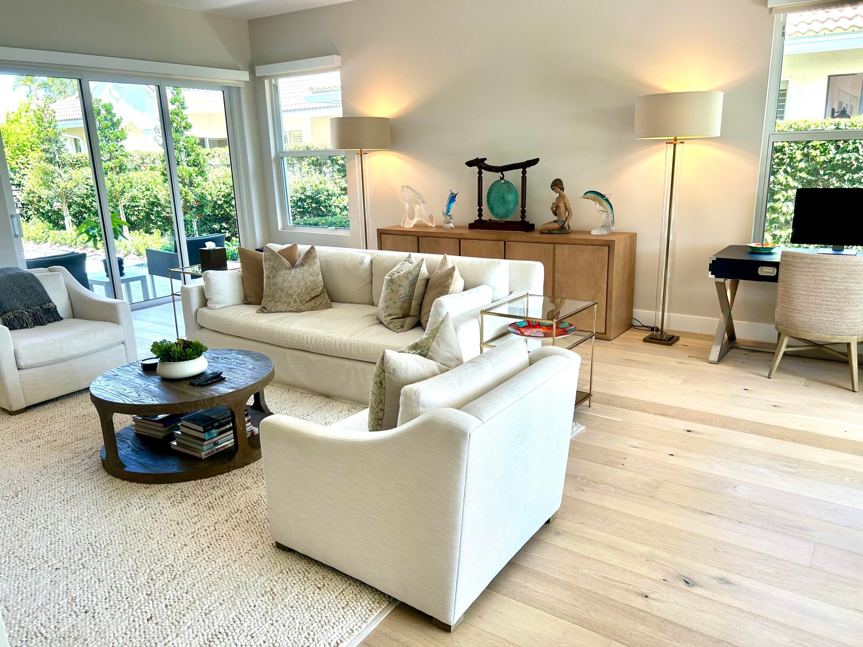 Absolutely stunning 3 bedroom, 3 full bathroom pool home in Shady Oaks of Palm Beach Polo Club. This home has been completely renovated with no detail left untouched. The home features an open floor plan and is light and bright. The kitchen is a chefs dream with induction stove, plenty of storage, all new appliances and wine fridge. The large primary bedroom overlooks the pool and sliders lead from the bedroom and living room to the pool. There is a detached guest room from the main house with a separate entrance from the garage or courtyard, great for friends, nanny, in-laws or staff. Main home is a split floor plan with guest room off laundry room/ kitchen area. Middle courtyard offers many places to sit and relax or enjoy a meal outside. Every window is impact.This home is newly furnished and offered turnkey, just bring your toothbrush and clothes! $16,500 off-season June through October $25,000 Seasonally for November and December only. Please see documents for HOA applications and fees.