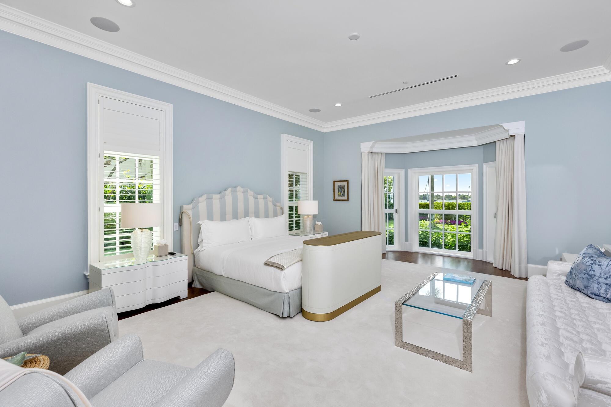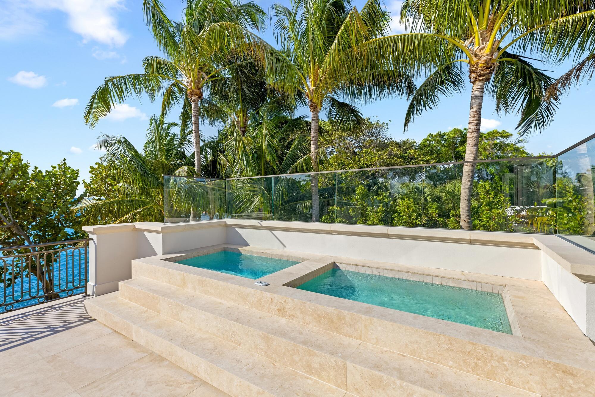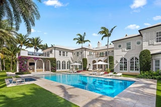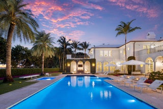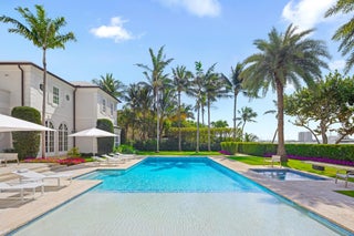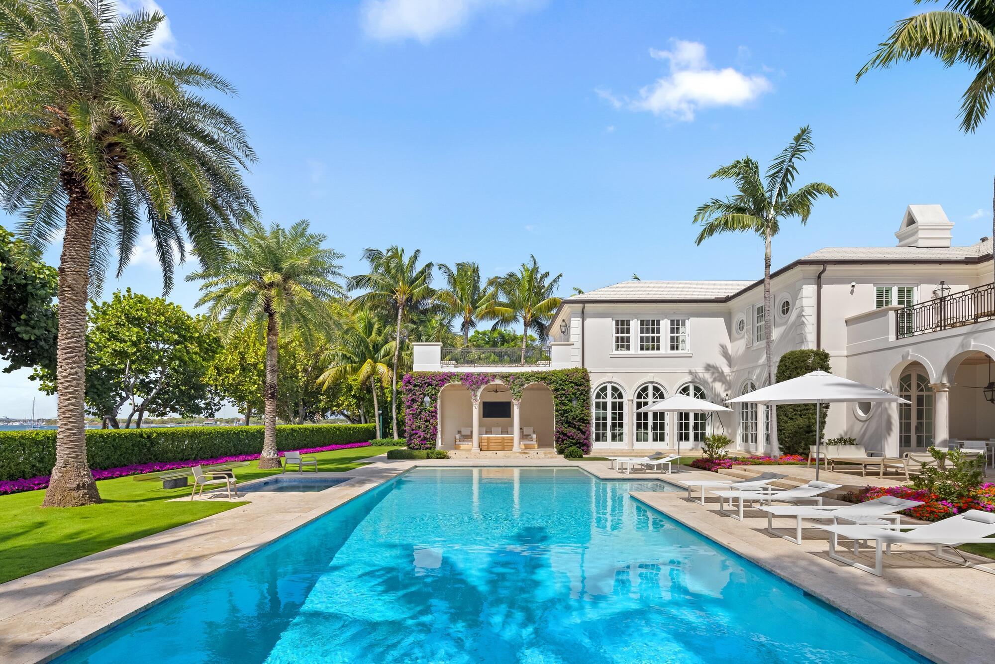 Pristine and rarely available Intracoastal front estate located in Palm Beach's serene North End. Highlights include 7BR/9.3BA, 150+/- feet of Intracoastal frontage, deep-water dock with boat lift, and over 17,000 total square feet. This rare and luxurious home boasts breathtaking lake and sunset views from all principal rooms. Gorgeous Island Colonial with stunning stone and hardwood flooring, high ceilings, and great natural light. First and second floor Primary Suites with dual baths and closets. Formal living room with fireplace and French doors leading to covered loggia. Stunning library with built-ins, formal dining room with butler's pantry, and light-filled family room. Eat-in entertaining kitchen and professional chef's kitchen both equipped with top-of-the-line appliances. Thesecond floor Primary Wing features a large open terrace with built-in cold plunge and spa. Atop the North and South Garages are two fabulous flex spaces each with a full bath and closet - one currently set up as a staff room and the other as an exercise room. Additional highlights include two laundry rooms, elevator, and ample storage space. This home is perfect for both indoor and outdoor entertaining with multiple covered loggias and spacious terraces. Large swimming pool with sun shelf and spa are surrounded by beautifully landscaped grounds.