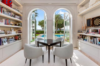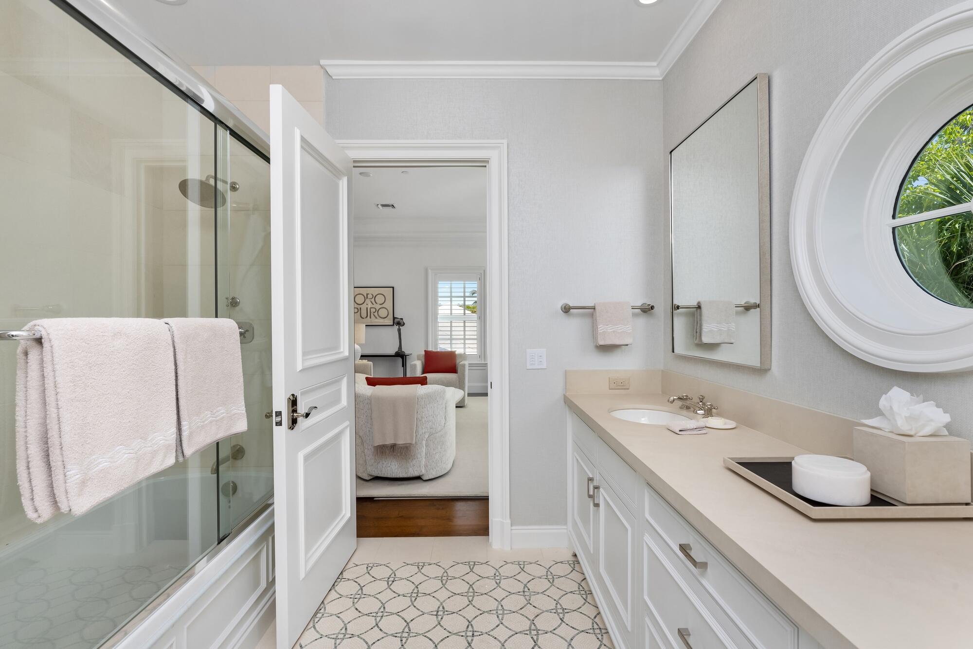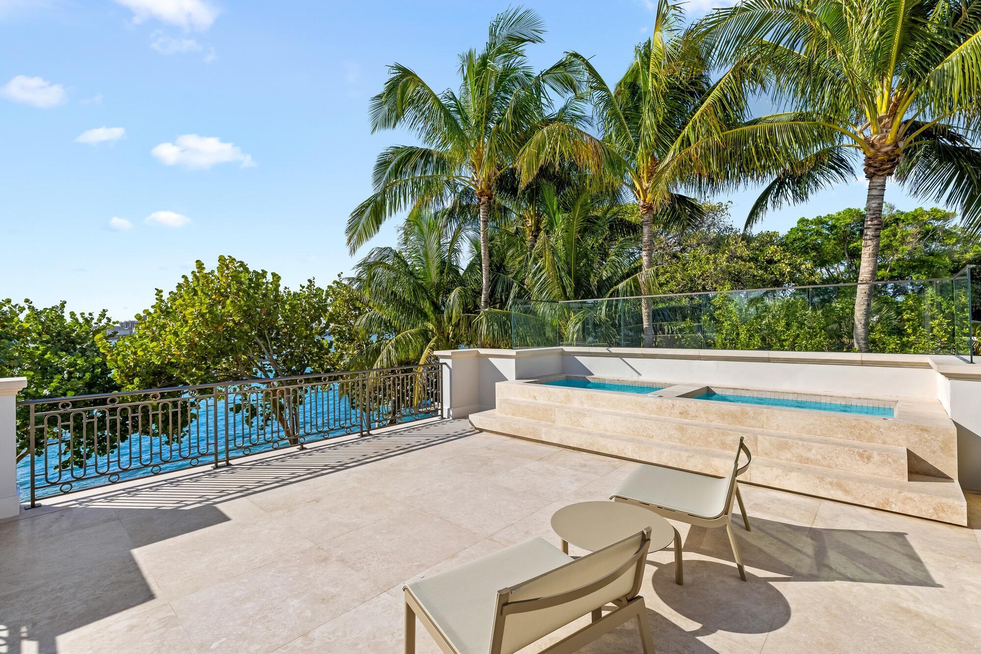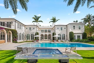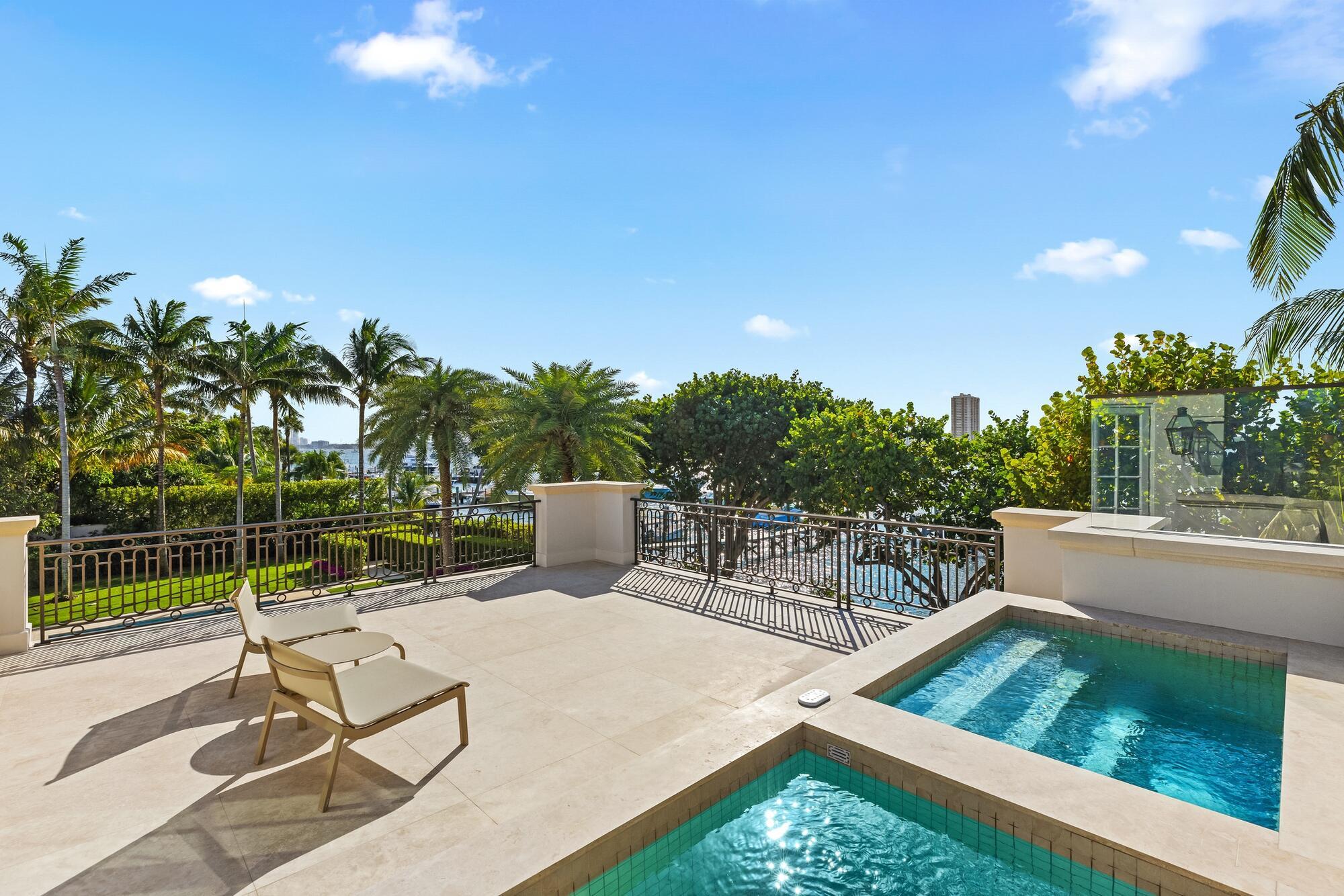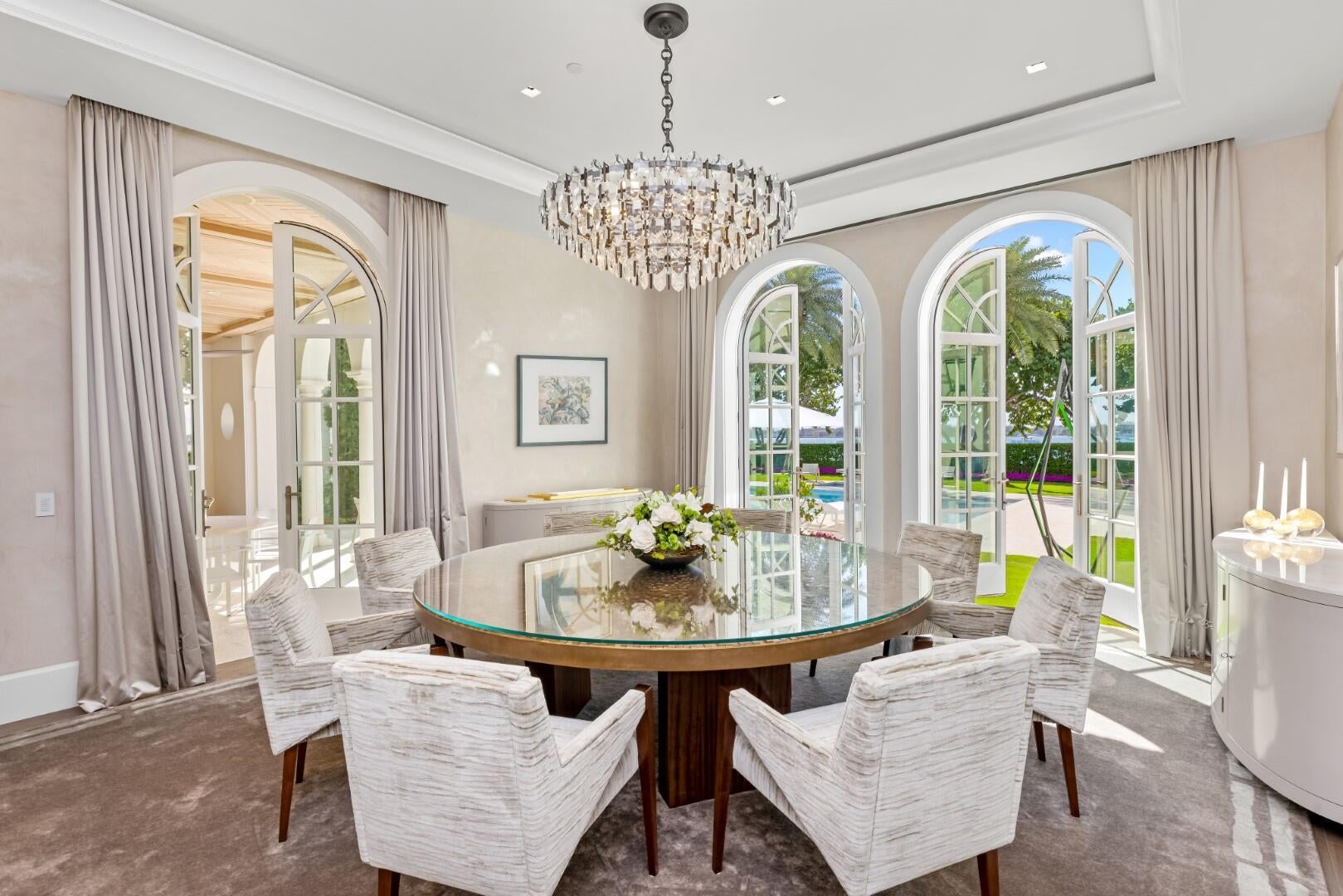 Pristine and rarely available Intracoastal front estate located in Palm Beach's serene North End. Highlights include 7BR/9.3BA, 150+/- feet of Intracoastal frontage, deep-water dock with boat lift, and over 17,000 total square feet. This rare and luxurious home boasts breathtaking lake and sunset views from all principal rooms. Gorgeous Island Colonial with stunning stone and hardwood flooring, high ceilings, and great natural light. First and second floor Primary Suites with dual baths and closets. Formal living room with fireplace and French doors leading to covered loggia. Stunning library with built-ins, formal dining room with butler's pantry, and light-filled family room. Eat-in entertaining kitchen and professional chef's kitchen both equipped with top-of-the-line appliances. Thesecond floor Primary Wing features a large open terrace with built-in cold plunge and spa. Atop the North and South Garages are two fabulous flex spaces each with a full bath and closet - one currently set up as a staff room and the other as an exercise room. Additional highlights include two laundry rooms, elevator, and ample storage space. This home is perfect for both indoor and outdoor entertaining with multiple covered loggias and spacious terraces. Large swimming pool with sun shelf and spa are surrounded by beautifully landscaped grounds.
