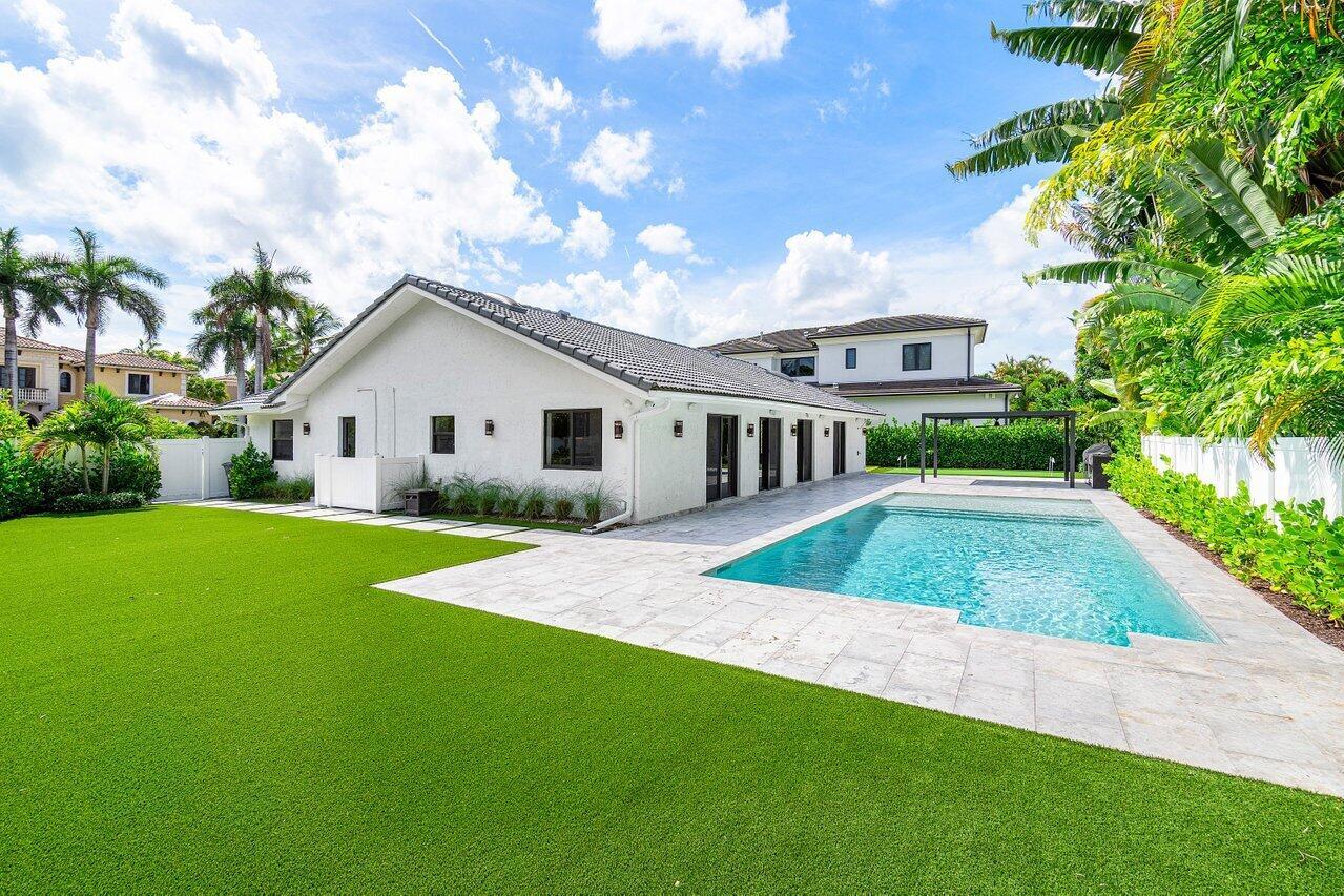 One-story captivating custom contemporary in Thornhill Green, a highly esteemed Central Boca Raton community. Fully renovated in 2024, this 5 bedroom, 4.1 bathroom house blends modern elegance with chic and casual design in the heart of Boca Raton.Attention to detail and no expense spared, this home has new impact windows and doors, and porcelain floors throughout. The top-of-the-line custom kitchen is an entertainer's dream. The large island and backsplash boasts Quartzite countertops. The intriguing entryway leads to a true open concept floorplan, beckoning with abundant natural light highlighting the unique finishes of this luxurious yet comfortable space with flexible living and eating areas.The primary bedroom is a generously sized room with clean lines and modern finishes and the primary bathroom has an exquisite shower with beautiful detailing in the tile and lighting choices. An outdoor shower is just outside the slider from the primary bedroom to the patio. The highlight of the backyard is the brand-new heated lap pool and aluminum gazebo with outdoor kitchen surrounded by turf and a golf putting green for outdoor activities. The home is situated on over a quarter of an acre with a large side yard with endless possibilities. Ideal for gracious entertaining and peaceful evenings at home, 22233 Hollyhock Trail is perfectly located in the heart of Central Boca Raton's sought-after Thornhill Green neighborhood walking distance to houses of worship, and minutes from the Class A Simon's Properties Town Center Boca Mall, the beach, Mizner Park and downtown Boca Raton. Square footage should be independently verified. The information published and provided including but not limited to prices, measurements, square footages, lot sizes, features, finishes, and calculations are subject to errors, omissions or changes without notice. All such information should be independently verified. All parties should perform their own due to verify all information.