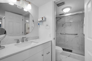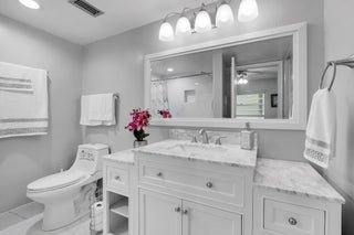 Beautifully renovated 2BR/2BA condo in Boca Raton's 55+ Barwood community. This spacious 3rd-floor unit features durable vinyl plank flooring, a modern kitchen with stone-look countertops, white cabinetry, and stainless steel appliances. The living and dining areas connect to a screened balcony with peaceful green views. The oversized primary suite includes a walk-in closet and an updated bath with a step-in shower. The guest bedroom is ideal for visitors or a home office. Additional highlights include in-unit laundry, assigned covered parking, a community pool, clubhouse, tennis courts, and walking paths. Located close to shopping, dining, and major roads. Move-in ready!