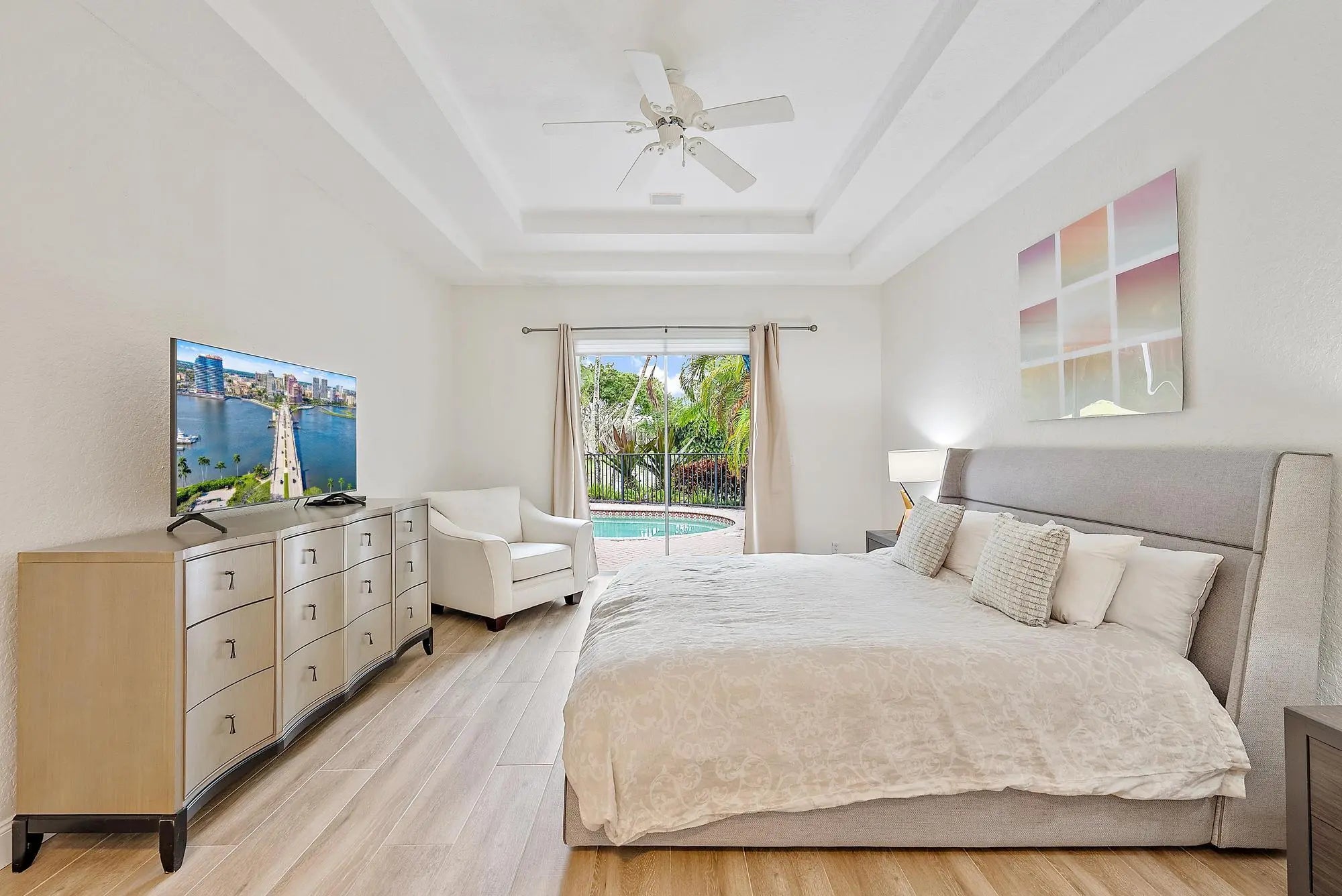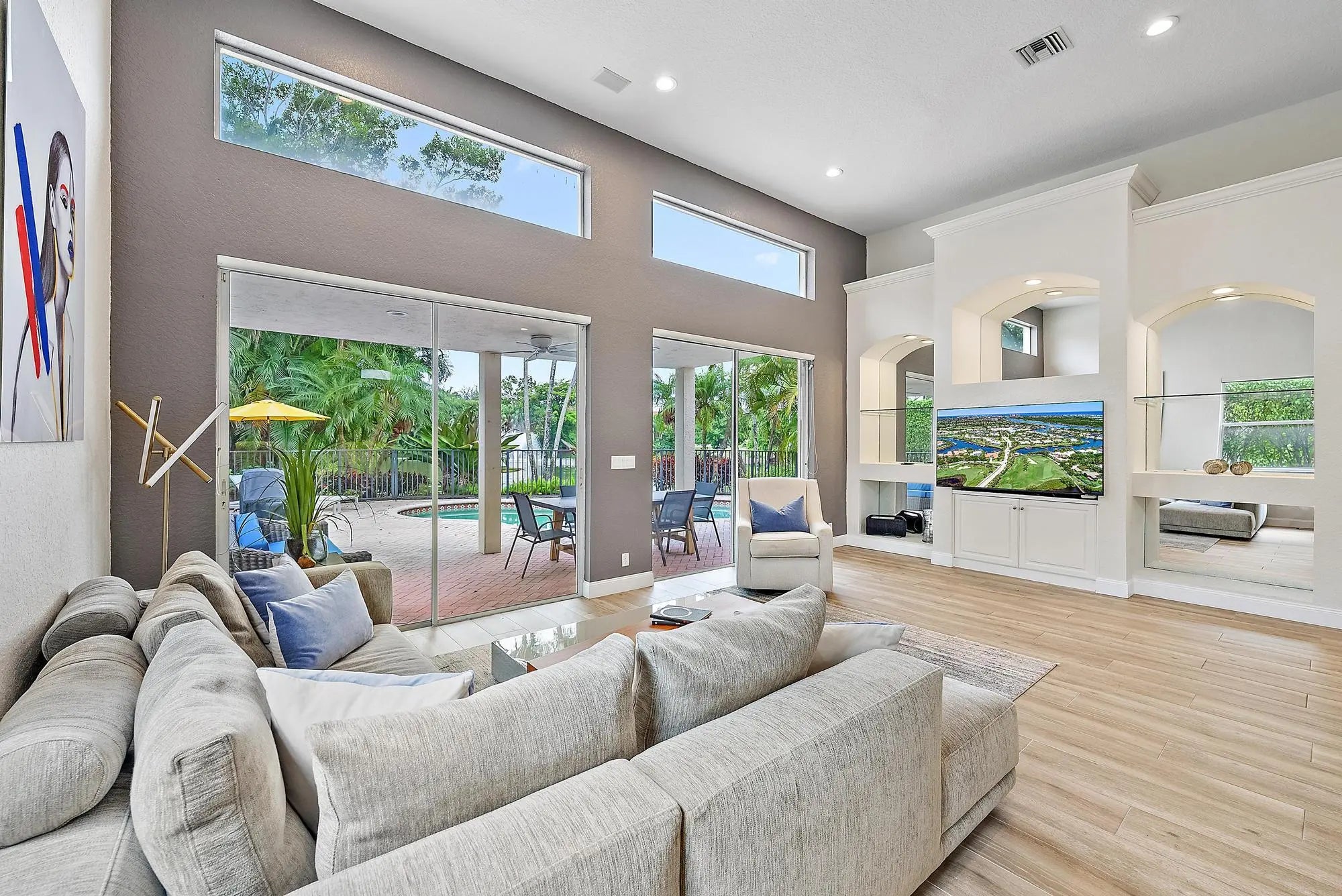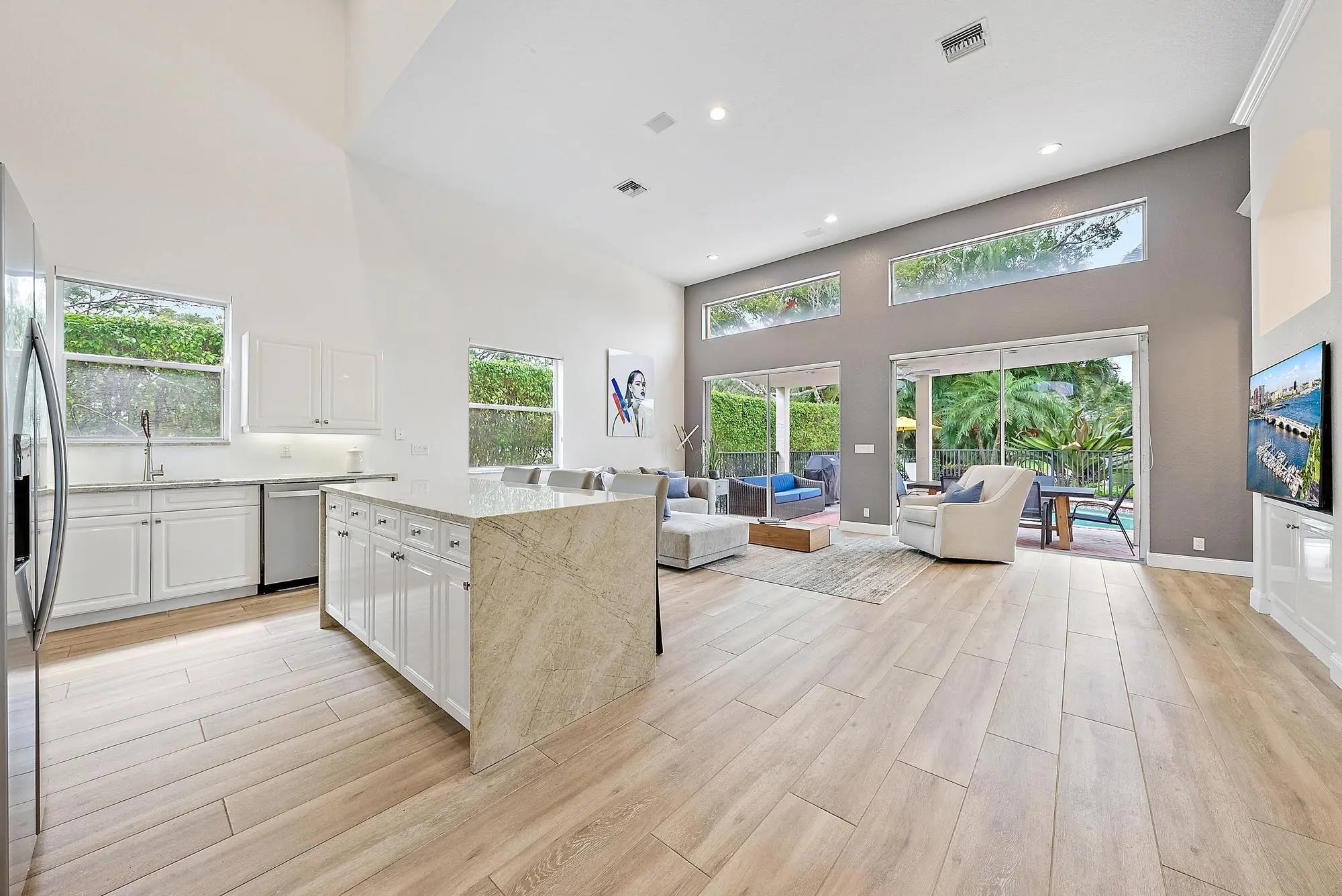 Located just 500 feet from the world-class amenities of the Club at Ibis, this conveniently located and renovated home boasts incredible water views and a spacious floor plan. Boasting more than 2900 square feet, this immaculate 3BR/3.5BA+Den+Loft home offers all ensuite bedrooms, soaring ceilings, and over-sized rooms. The SOUTHERN EXPOSURE in the rear of this home, bathes the pool in light, and allows for sunlight to enter the many windows, offering a bright feel. This home was renovated in 2021, with all-new flooring on the main level, new kitchen appliances, new HVAC, and the interior was painted. New quartz kitchen counter-tops and backsplash, new glossy white upper kitchen cabinets, replaced faucets, new lighting, door and cabinet handles, trim and throughout the property.