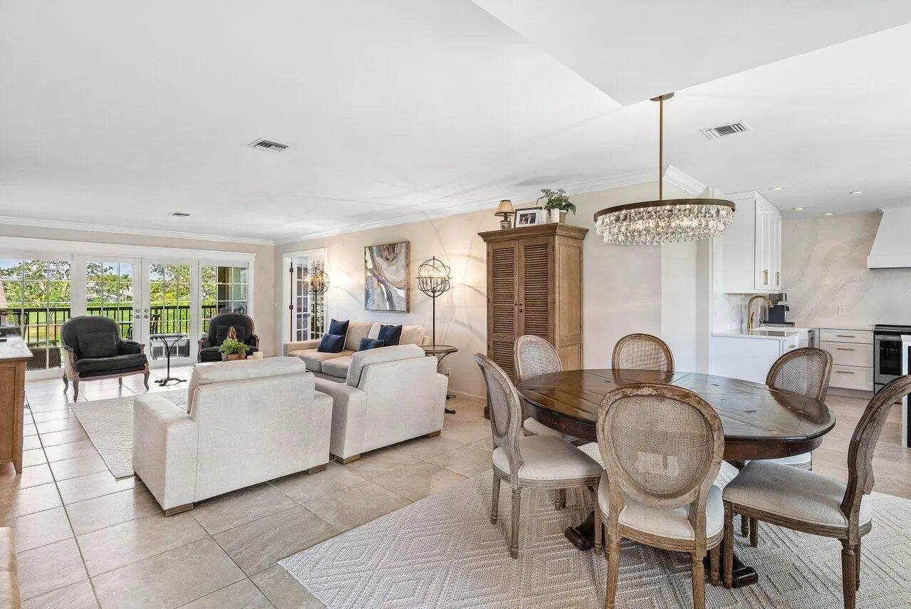 Experience luxurious living in this beautifully renovated 2nd floor, 3-bedroom, 2-bath condominium, showcasing breathtaking double lake and fairway views. Thoughtfully designed with elegance and functionality, this home features a gourmet kitchen with a striking center island adorned with a waterfall edge, high-end appliances, and a full-size wine cellar. The spacious main bedroom suite offers a tranquil retreat with a walk-in closet and a spa-inspired ensuite bath. French doors from living area lead to a private terrace equipped with an electric screen, ideal for enjoying the serene surroundings year-round. Quail Ridge is a mandatory membership community offering top tier golf courses, racquet sports, fitness center & spa, and a clubhouse offering fine dining and beyond.