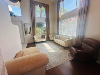 Furnished Rental 5 bedroom 3 bathroom in Prestigious Isles at Wellington! Welcome to this expansive and meticulously maintained 5-bedroom, 3-bathroom estate home, nestled in one of Wellington's most prestigious and sought-after communities. This desirable two-story model boasts an upgraded kitchen featuring stainless steel appliances, an extended island ideal for entertaining, and a charming breakfast nook. The open-concept layout flows seamlessly into a spacious living room with volume ceilings, creating an inviting atmosphere for relaxation and gatherings. Beautiful real wood flooring and tile span the main living areas, enhancing the home's warmth and elegance.