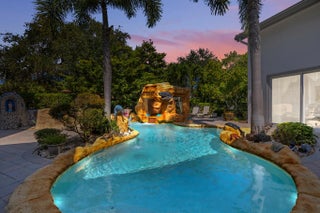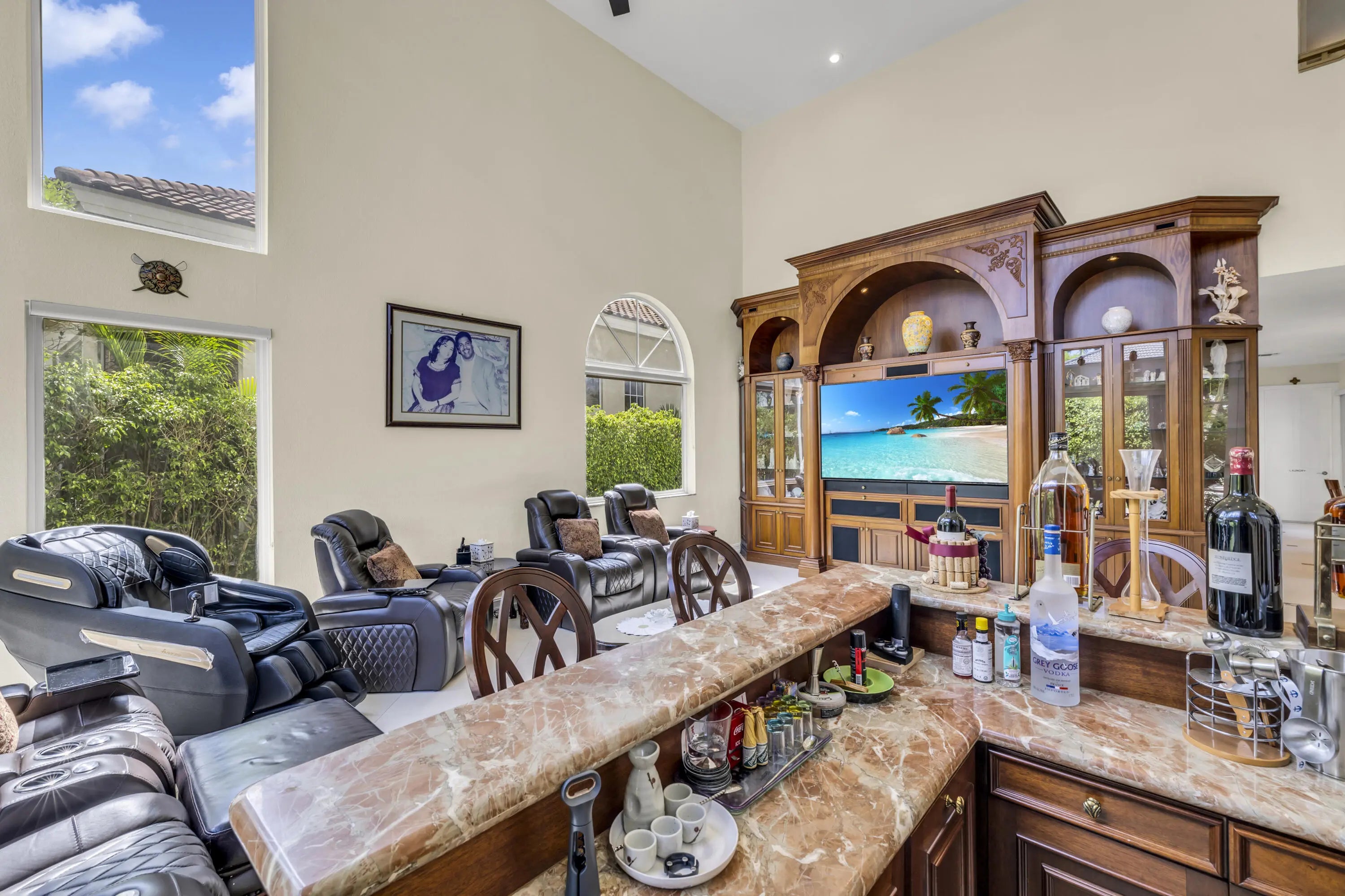 SEASONS BOCA RATON 5-BEDROOM COURTYARD ESTATE with the upgrades buyers want most: 2020 ROOF, FULL-HOUSE GENERATOR, IMPACT GLASS, and a 500-GALLON PROPANE TANK for true peace of mind. Set on a lush 0.42-acre lot in the prestigious gated community of Seasons, this private, resort-style residence offers a saltwater pool, spa, and dramatic waterfall grotto surrounded by mature tropical landscaping and fruit trees.Designed for multi-generational living, the home features 5 bedrooms plus a den, 4.5 bathrooms, a 3-car garage, and an approx. 800 sq ft guest casita perfect for extended family, guests, or a private office. Light-filled interiors with soaring ceilings and an open floor plan create effortless indoor-outdoor flow.