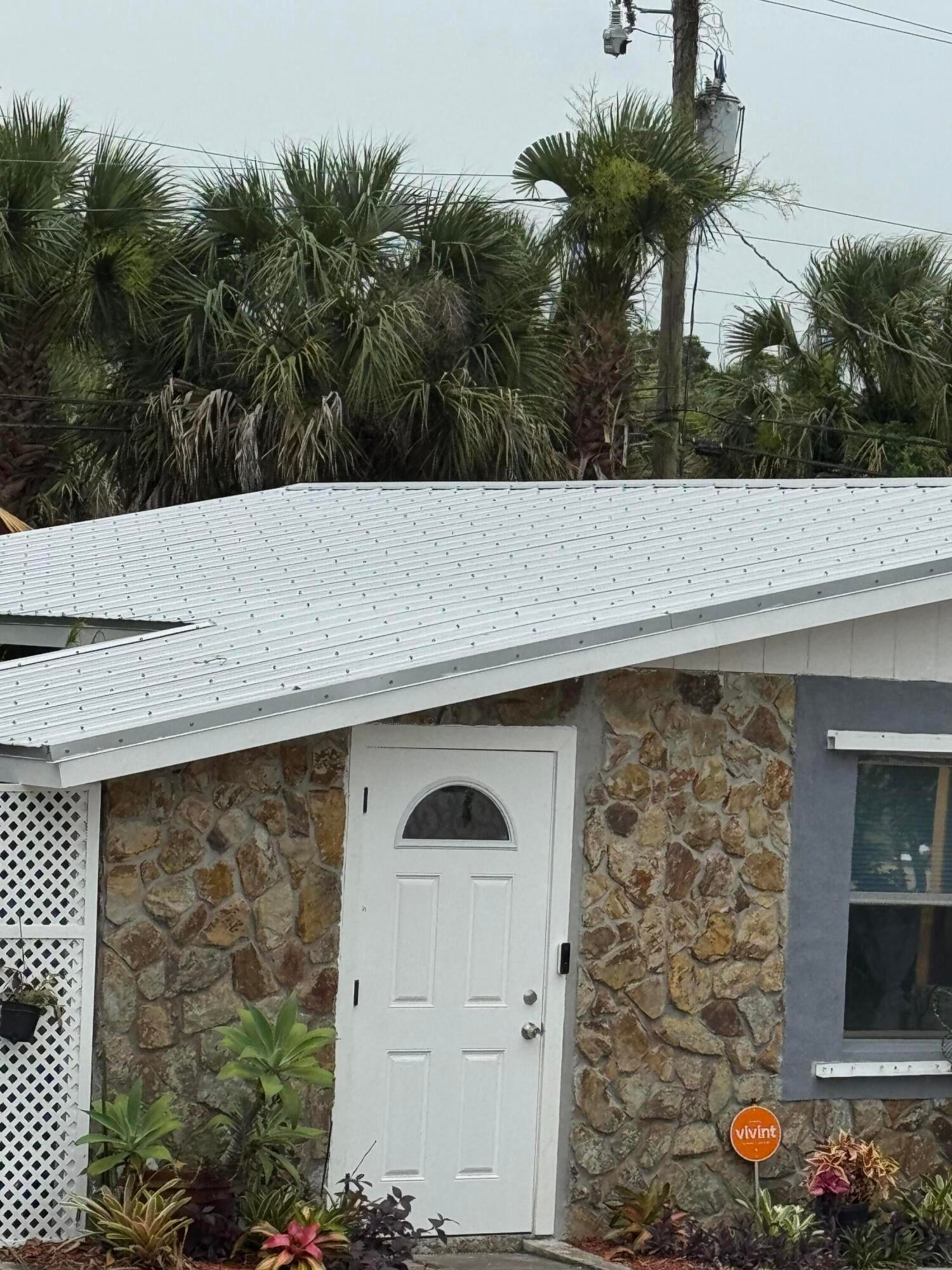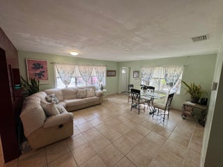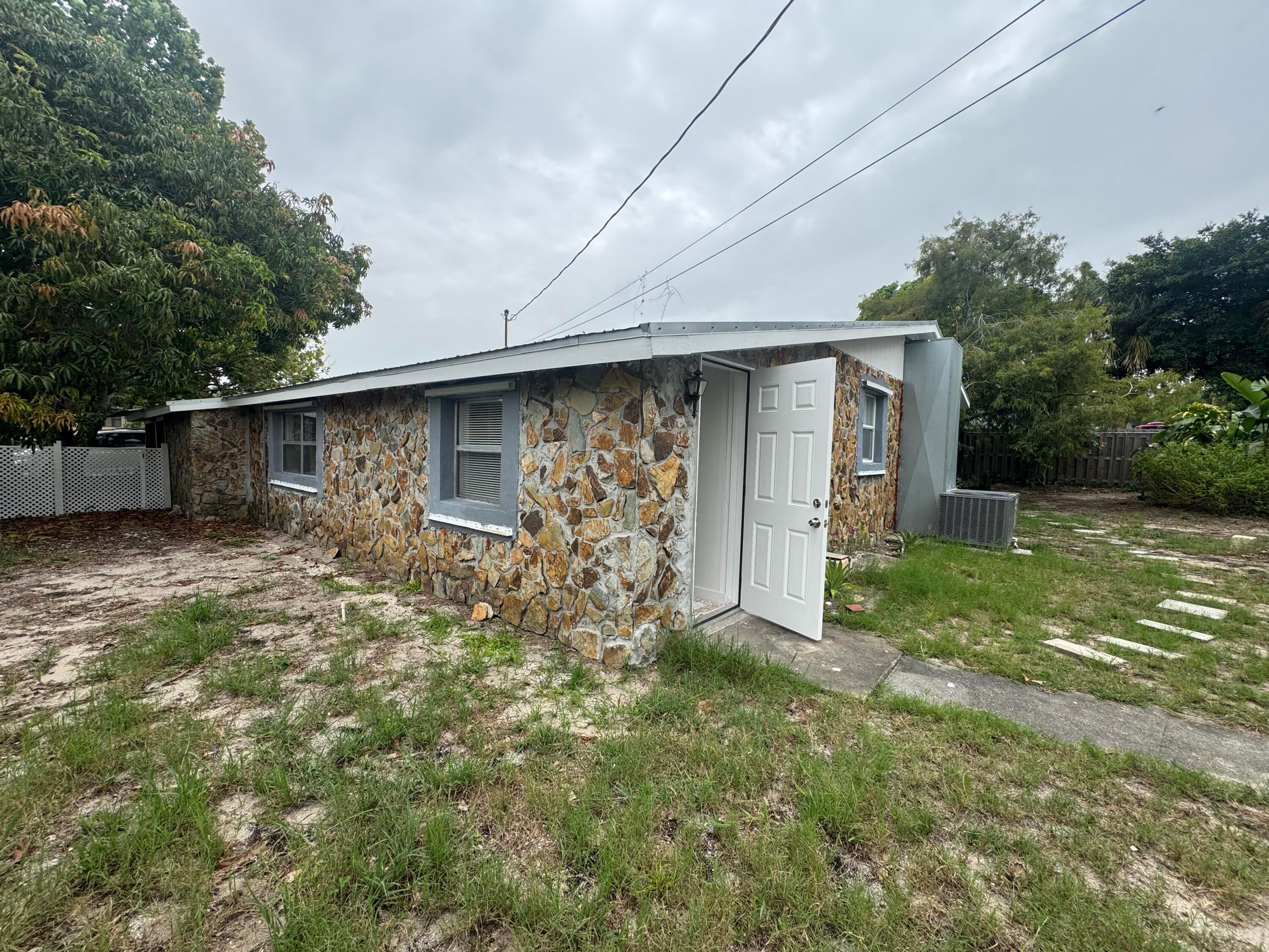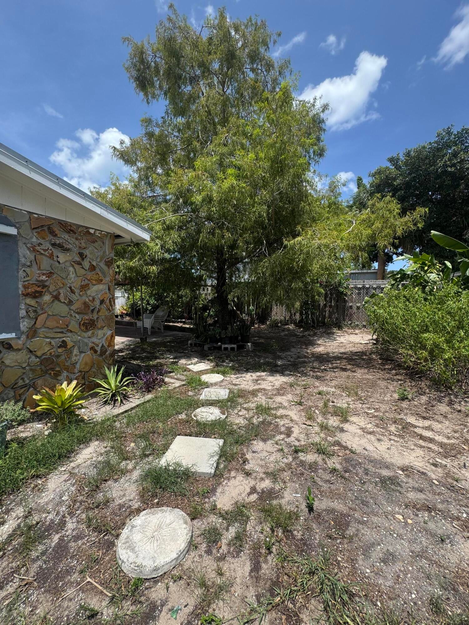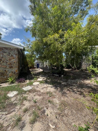 It has a third bedroom and second bathroom. One room can be used for Airbnb; it has a separate entrance at the back of the property. There's a large, planted backyard where you could build a pool or a children's play area. There's also ample parking in the front for several cars. Home has a metal roof. 2022 A/C.