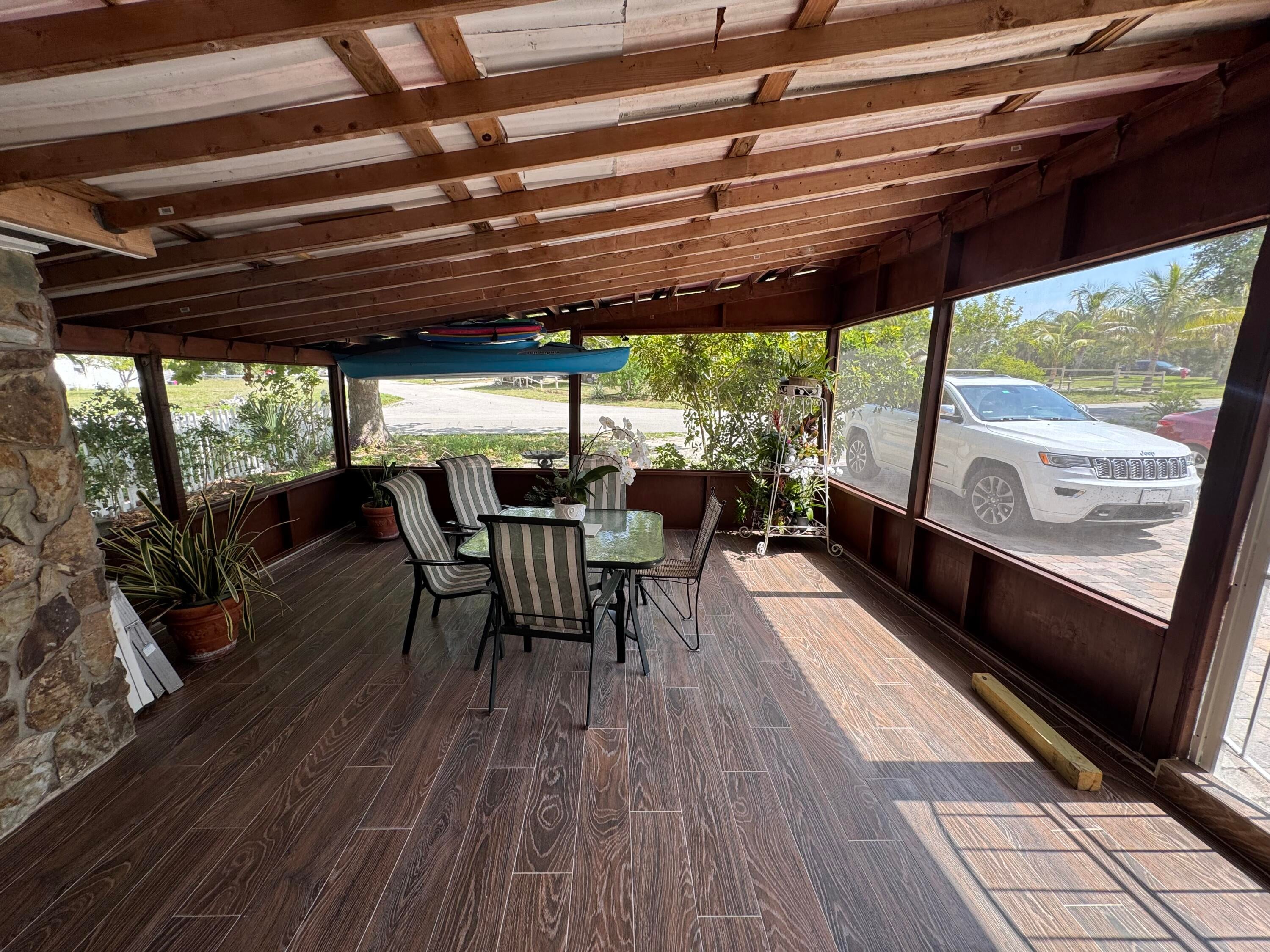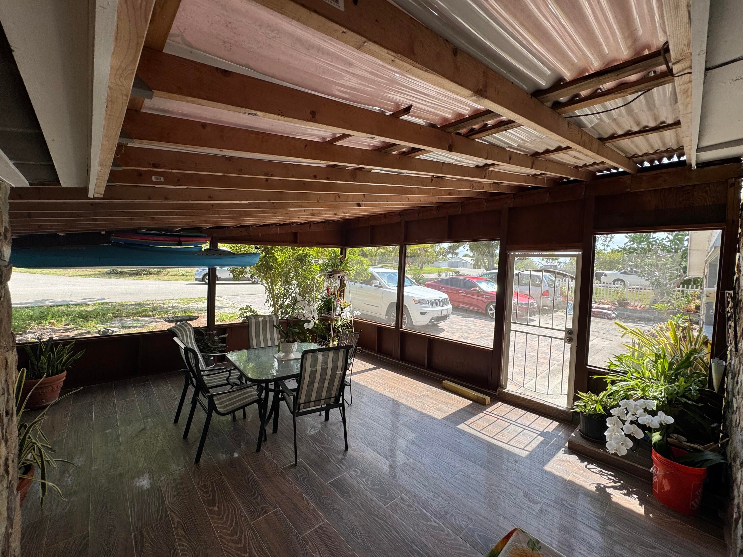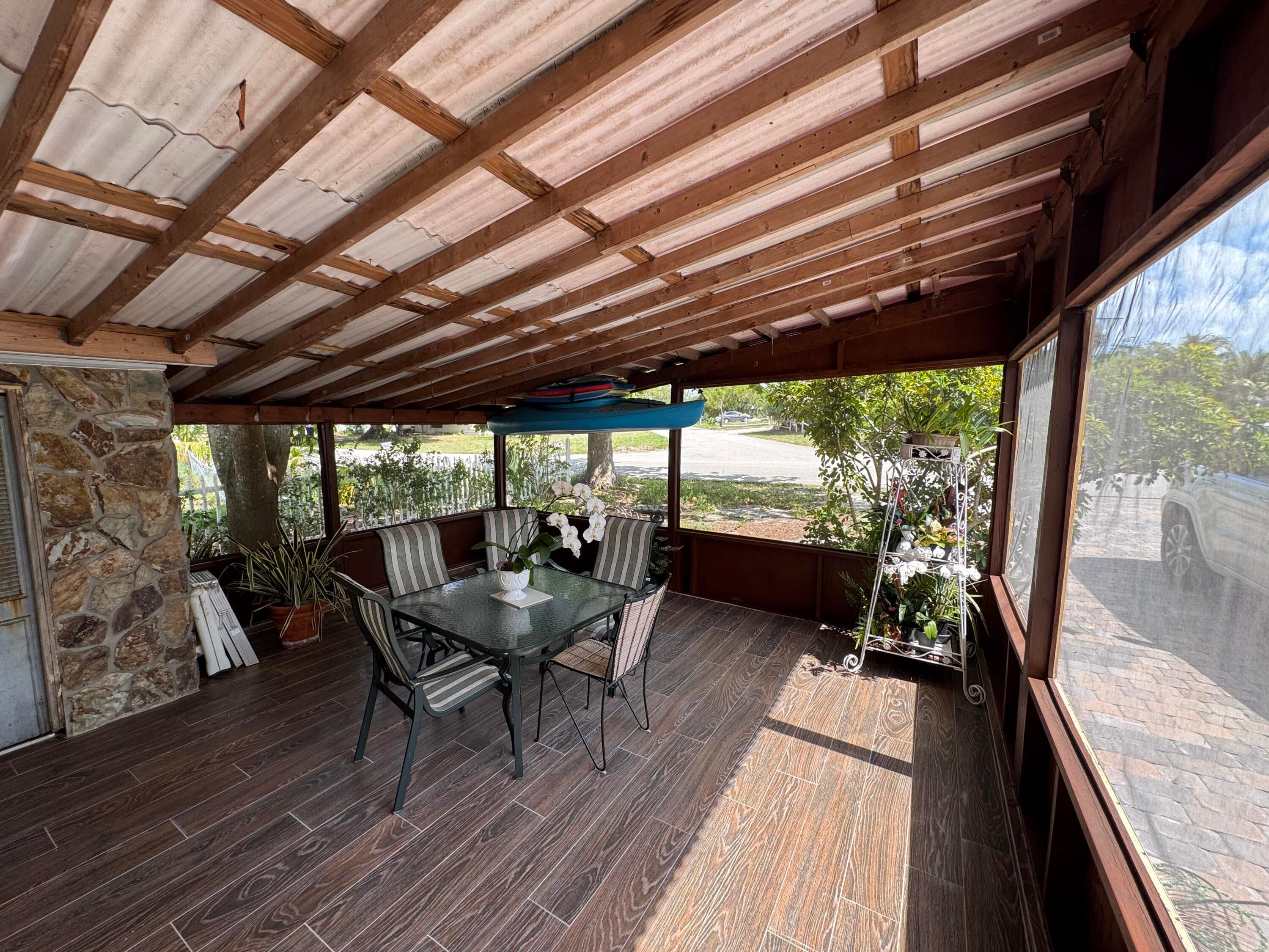It has a third bedroom and second bathroom. One room can be used for Airbnb; it has a separate entrance at the back of the property. There's a large, planted backyard where you could build a pool or a children's play area. There's also ample parking in the front for several cars. Home has a metal roof. 2022 A/C.