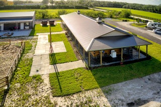Private gated farm in Rustic Ranches. 6 stalls available in brand-new, breezy barn beautifully landscaped property, Miles of trails, preserve, connects to yellow trail. Available for in-season (Nov-April) or off-season leasing, RV hookup available.Property Highlights: State-of-the-Art Barn: 1 barn with 16 stalls with American Stalls hardware, each equipped with rubber mats, power fans, and city water. Wellington's breeziest barn! Arenas & Trails: This property does NOT have an arena. There is an exercise track and quick access to nearby jumping or dressage arenas, the Yellow Trail, and the preserve for scenic rides. Modern Amenities: City electric, city water, and Wi-Fi included. Features an AC tack room, washer/dryer, and extra storage in the warehouse. Outdoor Features: 6 oversized paddocks, grass field, exercise track, and bridle path/trails. Right in your backyard, explore the Wellington Preserve which is perfect for hiking, biking, or climbing the observation tower for the best panoramic views of Wellington. Enjoy the firepit for late-night stargazing under Wellington's winter skies. Convenience & Comfort: Wash rack, on-site tractor for heavy lifting, and landlord-maintained landscaping. Ample parking and a fenced, gated property for privacy. This property is approximately 2 miles from WEF. Pet-Friendly: Pets allowed with restrictions. Lease Details: In-Season Rate: $1,500/stall/month, 4-month minimum (120 days). In Season (Nov-April), Off Season (May - October) Tenant Responsibilities: Utilities, manure removal, and fly bait (deducted from security deposit). Shared Property: Shared with one other tenant, ensuring a quiet, low-drama environment. No Smoking/Vaping: Prohibited on premises. Why Calatrava? Calatrava is more than a barn, t's a lifestyle. With its rustic charm, modern conveniences, and proximity to Wellington's premier equestrian amenities, this property is perfect for those seeking a serene, high-end equestrian experience. The brand-new barn, oversized paddocks, and access to trails and nearby arenas make it ideal for horses and riders. Whether you're here for the season or year-round, Calatrava offers the perfect balance of functionality and relaxation. Schedule Your Showing Today with your favorite Realtor! Don't miss this rare opportunity to lease at Wellington's breeziest, most inviting equestrian farm. 4 stalls remain for the season in the main barn AND there is plenty of room on the property with options for additional temporary stalls or tent! Would consider long term rental!