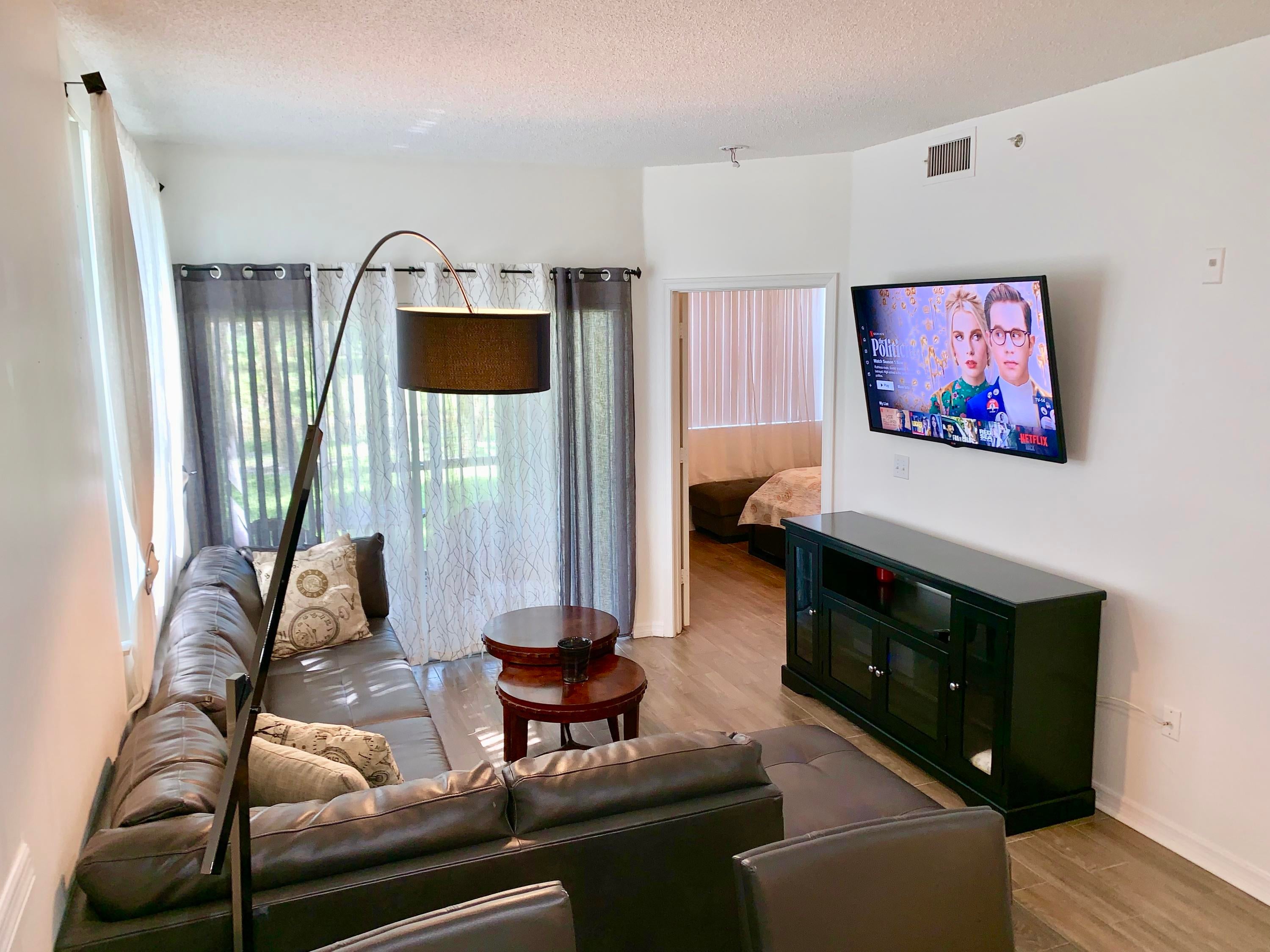 Hard to find corner 2/2 + open den with garage access through unit. First floor. Gated community with pool and amenities. Could be rented unfurnished $2,500 monthly or furnished $2,800 monthly for an annual lease