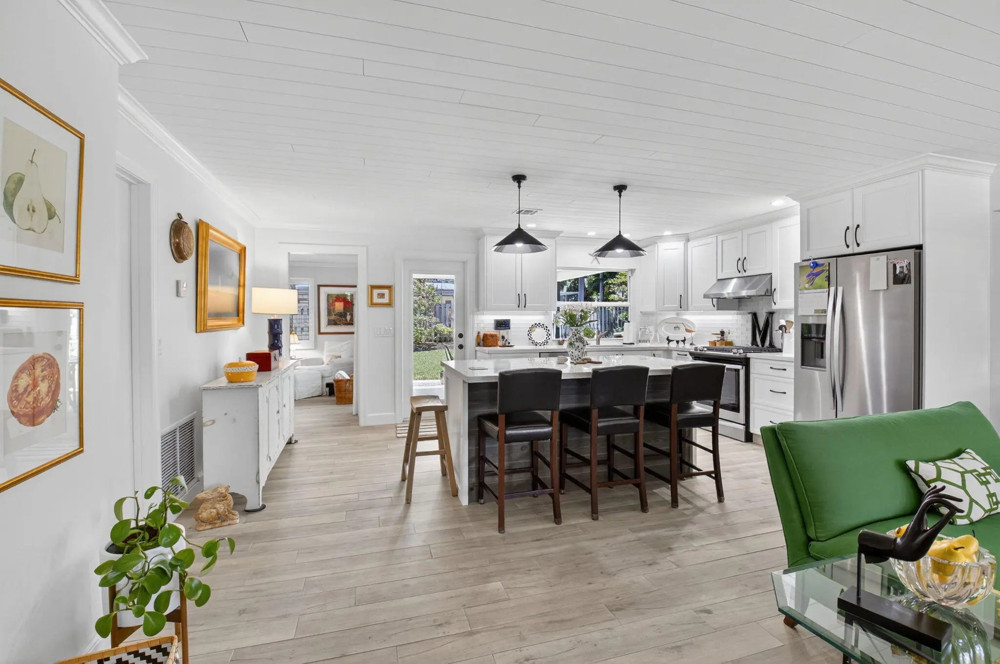 Don't miss your chance to live in one of the hottest areas in town! Step into this beautifully renovated home, located in the highly sought-after Chapel Hill neighborhood. This charming residence offers the perfect blend of modern comfort and timeless appeal, nestled in a tranquil yet convenient setting just minutes from downtown Delray Beach, Atlantic Avenue, pristine beaches, Bethesda Hospital, and easy access to I-95. As you enter, you'll be welcomed by an open concept living space bathed in natural light, creating a warm and inviting atmosphere perfect for entertaining or relaxing. The spacious kitchen is a true centerpiece, featuring gorgeous quartz countertops that complement the custom white shaker cabinets. Stainless steel appliances, including an island with a microwave drawer,