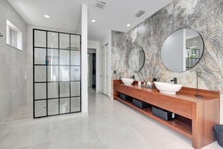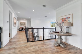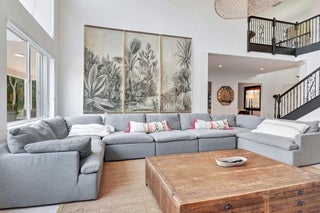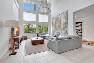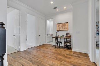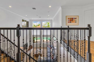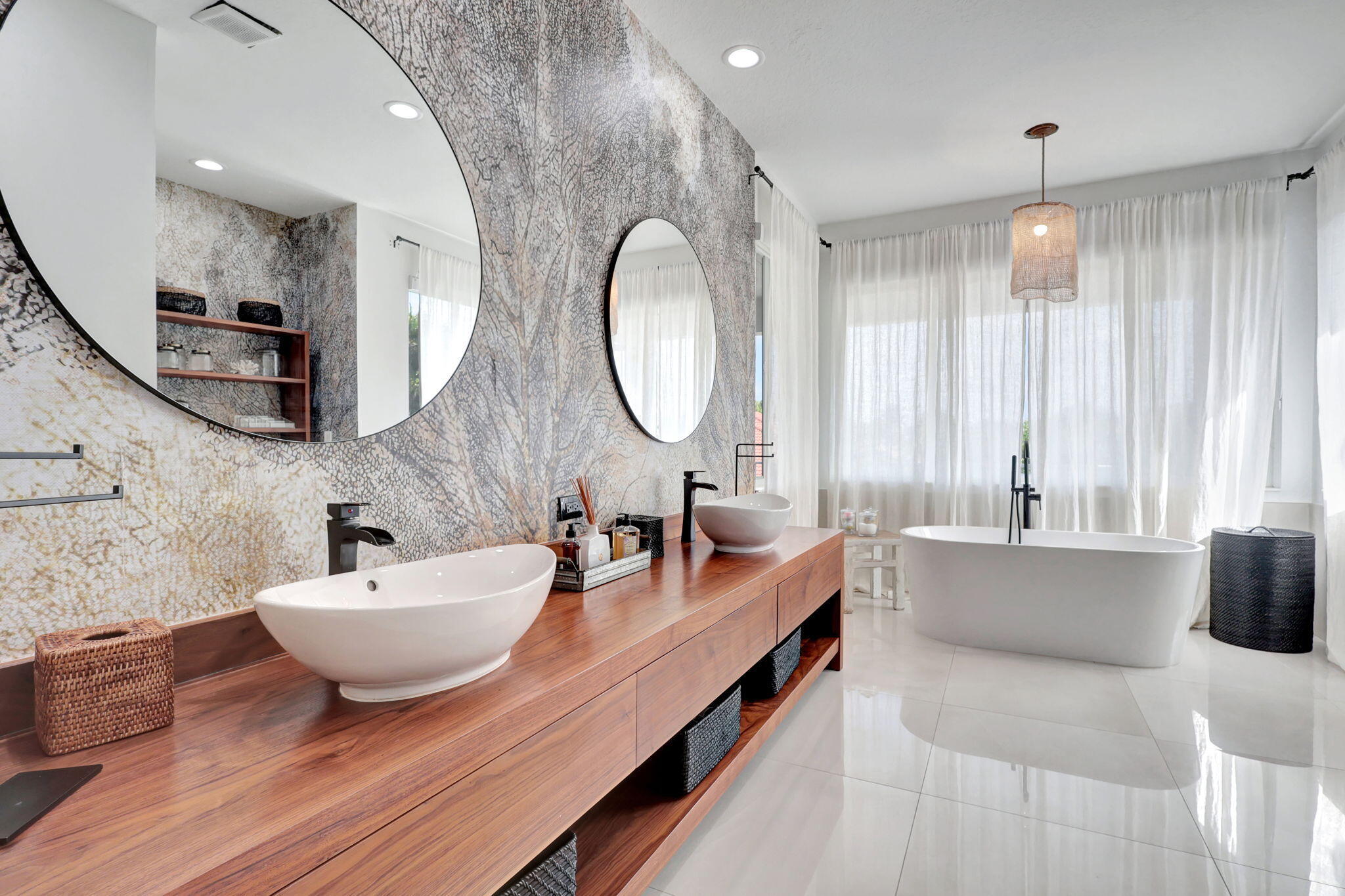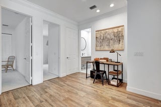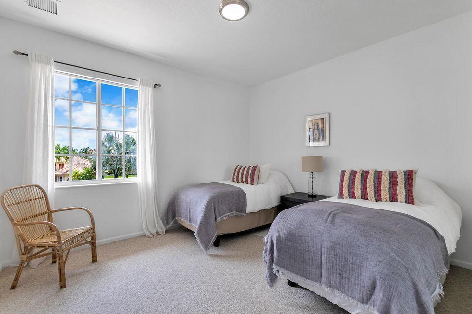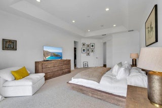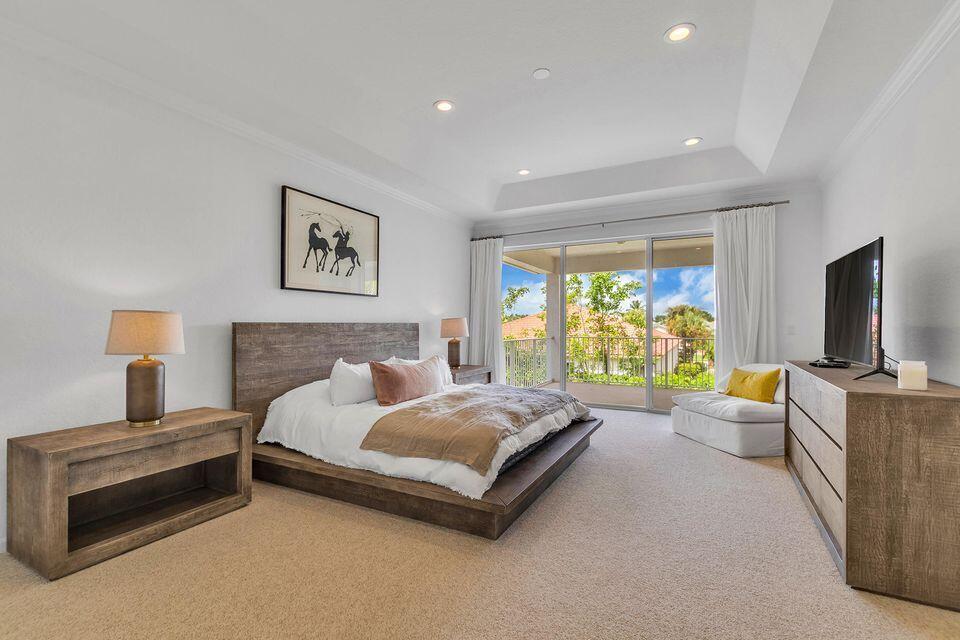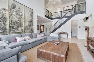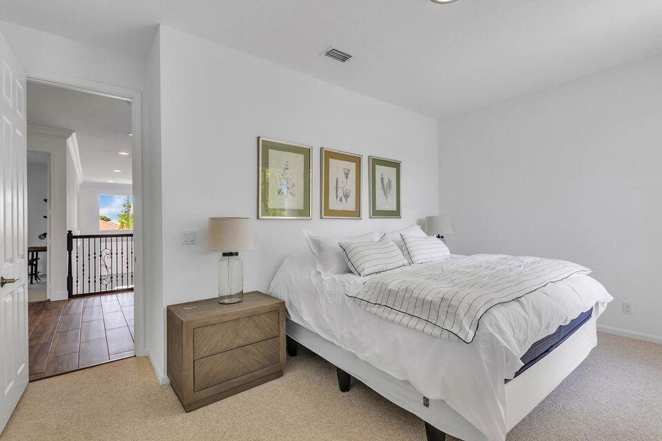 This stately home, beautifully decorated with top-of-the-line RH furniture, boasts tasteful colors and decor throughout. The first floor features a full bedroom and bath, while upstairs offers generously sized bedrooms, including a large main bedroom with a walk-in closet, ensuite bath, and private balcony.and displaying a wardrobe in a way that's both functional and stylish. Adjacent to the main bedroom is a spa-inspired bathroom that rivals those in the most luxurious resorts. The bath is equipped with dual vanities, , a separate rain shower, and elegant tile work, all contributing to a sense of ultimate relaxation and comfort. Enjoy privacy with a large fenced backyard at the end of a cul-de-sac. Located in a 24-hour man-gated community, it's close to major highways