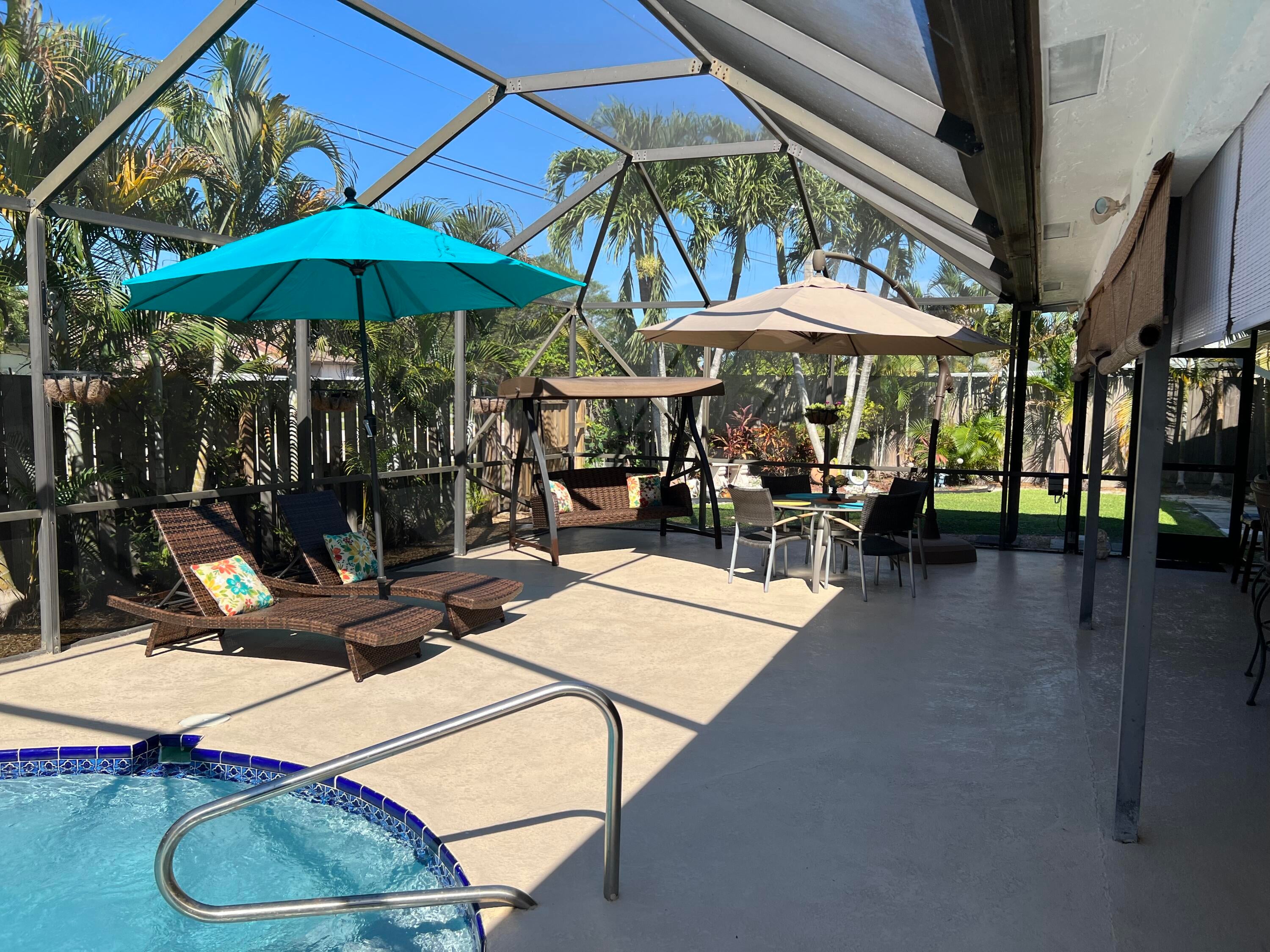 Beautiful 3/2/2 with an office that can be convert to a bedroom. Everything is redone, terrific patio to entertain your guest, Bar, Grill, Pool, Tiki Hut, Tv's, Surround Sound, etc.