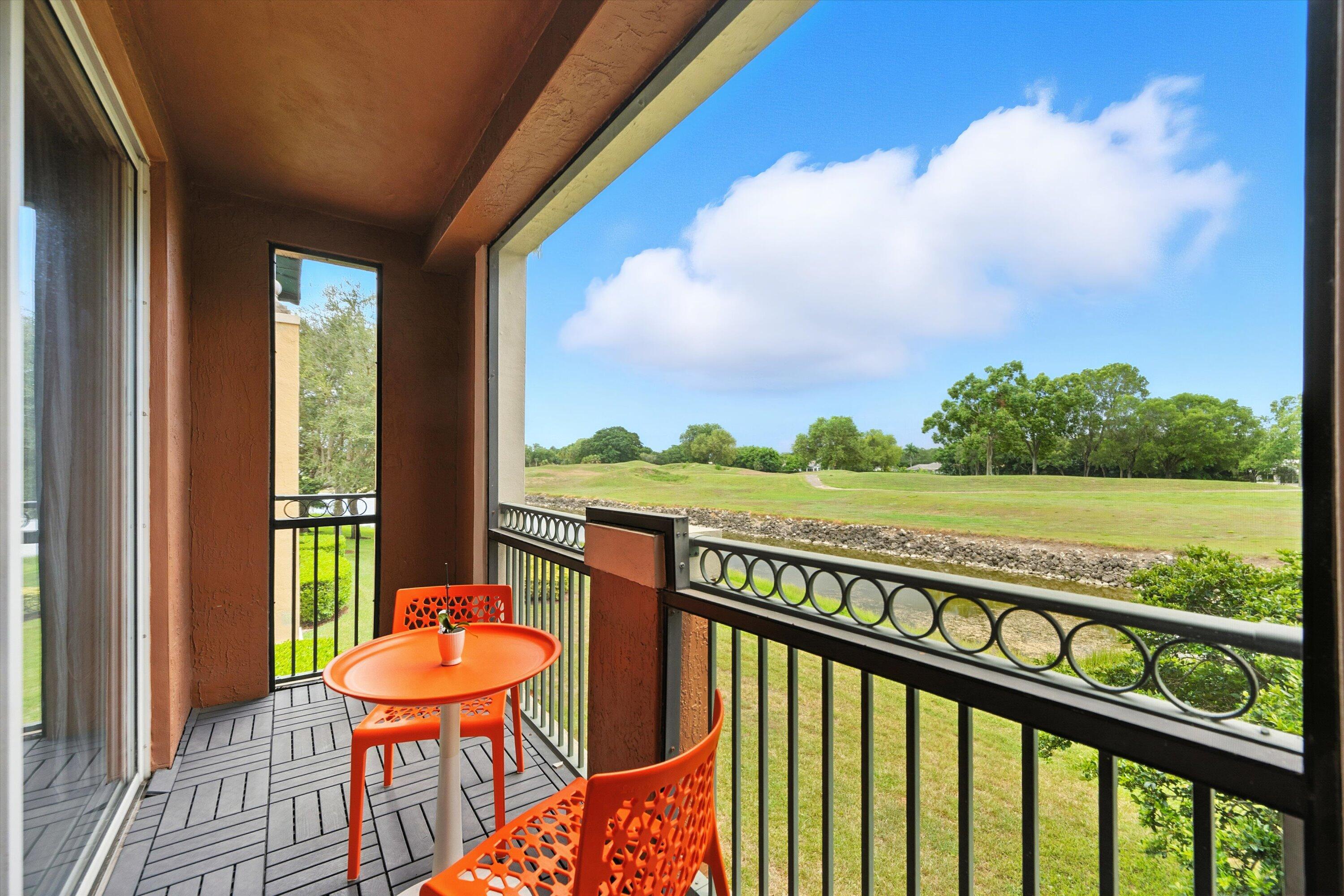 Clean and bright unit at St. Andrews Place. Tastefully furnished, turnkey condo with two master bedrooms with en suite bathrooms and walk in closets. Split floor plan. Conveniently located on a second floor and close to the beautiful resort style community pool, tennis, gym and club house. Enjoy a great view of the golf course from all windows or screened balcony. Great location for seasonal or off season visitors to enjoy Wellington and all equestrian events. All new appliances. $5,500/month seasonal lease, available off season at $3,000/month.