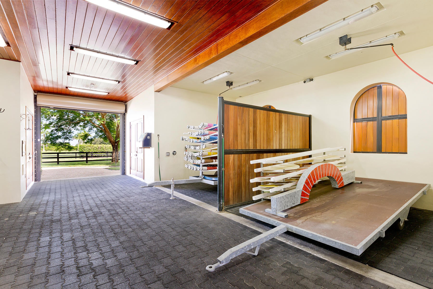 Incredible estate... everything you could want and more, only a short hack to the showgrounds. The property boasts a 12-stall CBS center aisle barn,(option for 2 additional stalls) a fantastic 2 bedroom, 2 bathroom staff apartment, rider's lounge/office, full bath, and laundry room. The facility has 4 grassy paddocks and the 2nd world-class Wordley Martin arena available for use on the adjacent property. The very best part of this seasonal rental is the option to rent the one-of-a-kind grass derby field and track in the 10-acre horse park, affectionately called the ''Welly Horse Park'' directly across the street.