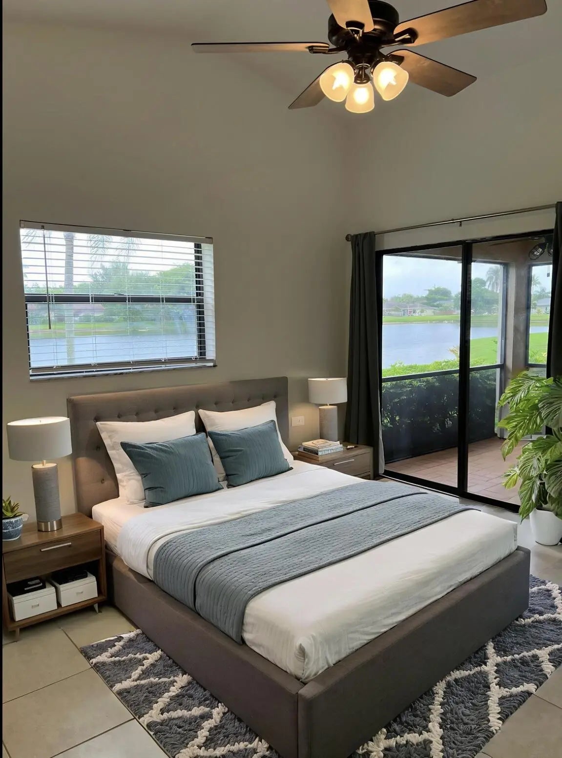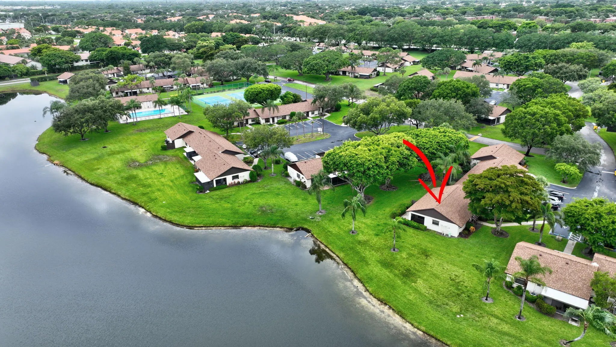 RENTED UNTIL 12/31/2026. NEW ROOF! HOME WARRANTY INCLUDED! Gorgeous lake view! CLEAN 3/2 lakefront villa features a BEAUTIFULLY updated master bath, and SMOOTH CEILINGS THROUGHOUT. Peace of mind with a home warranty covering AC, water heater, and all appliances. HOA fee includes building insurance, lawn care, WIFI, cable, exterior painting, and exterior pest control. Vaulted ceilings throughout this home create an extra spacious and airy feel in every room and enhance the natural light. Offering panoramic views of the serene lake from almost every room and a peaceful lifestyle perfect for relaxation in a very desirable, gated community conveniently located near shopping, dining, and entertainment. Amenities include tennis courts, pickleball, community pool, and BBQ grills by the lake.