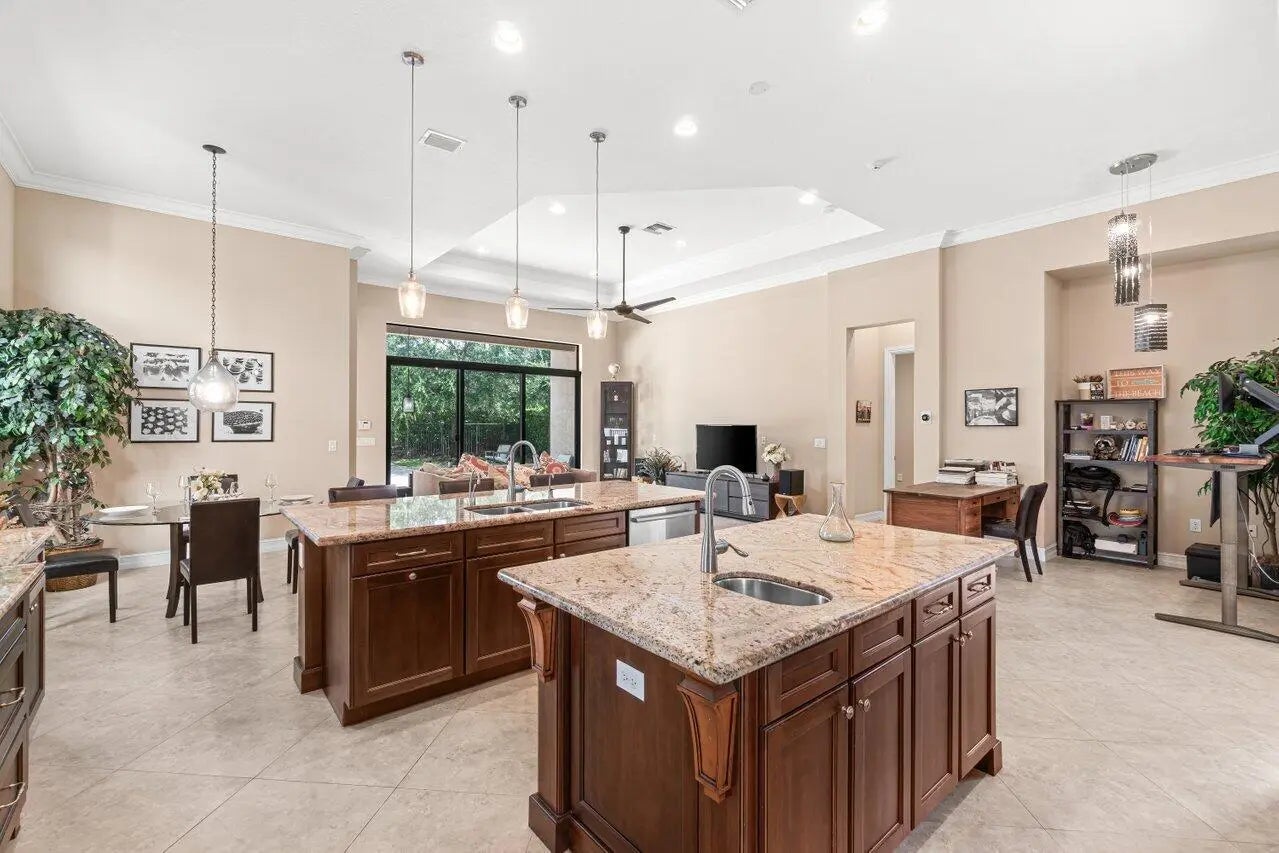 Beautifully upgraded 5 bedroom Vizcaya with heated, salt-water pool and large spa in The Bridges! This home is ideally situated in a cul-de-sac with private, south-facing backyard. Both the primary suite and a guest bedroom are on the 1st floor while a loft and 3 add'l bedrooms with en suite bathrooms are on the 2nd floor. The open concept kitchen has 2 islands, 2 sinks and 2 ovens. Additional highlights: porcelain tile and wood flooring, upgraded primary bath, crown molding, impact windows, CAT6 in all rooms and wireless nerve center. Seller is open to offering flexible purchase/finance options and can include furniture. Enjoy all The Bridges has to offer including: full service restaurant, resort pool, splash pad, fitness center, basketball, tennis program and 24/7 roving security.