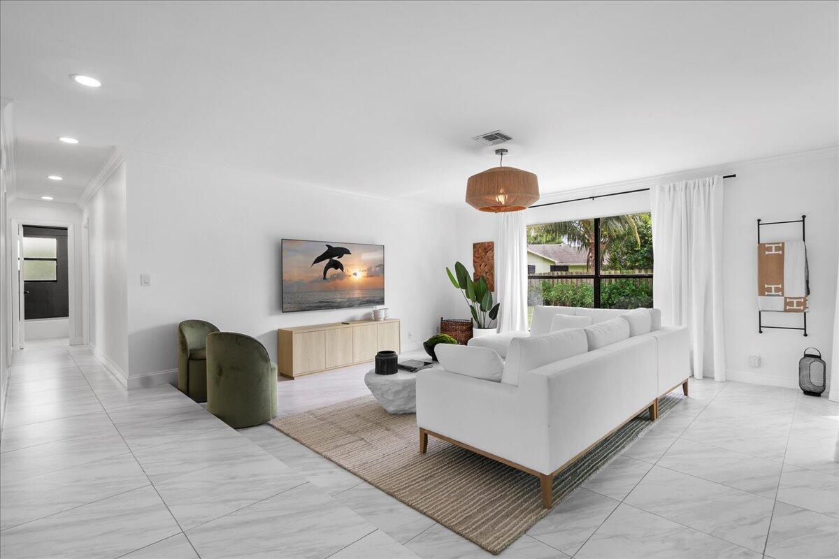 Step into a beautifully updated SEASONAL rental that blends modern comfort with exceptional style. This fully furnished 3-bedroom, 2-bathroom home has been completely remodeled and is ready to welcome you. Throughout the home, oversized porcelain tiles create an elegant foundation, while the gourmet kitchen offers quartz countertops, rich wood cabinets, and stainless steel appliances, combining function and sophistication. Each room features brand new furniture and bedding, ensuring the utmost comfort. Natural light fills the open layout, making every space feel bright and inviting. The spacious master suite includes an en suite bathroom and provides direct access to the backyard--a serene spot for unwinding. Outside, the fully-fenced backyard offers the perfect setting to enjoy Florida'ssunsets and create cherished memories during family gatherings. Ideally located in Wellington, this home is close to restaurants, shopping, medical services, and just a short drive to all major equestrian facilities, making it the perfect seasonal retreat. Come and make it your own retreat!