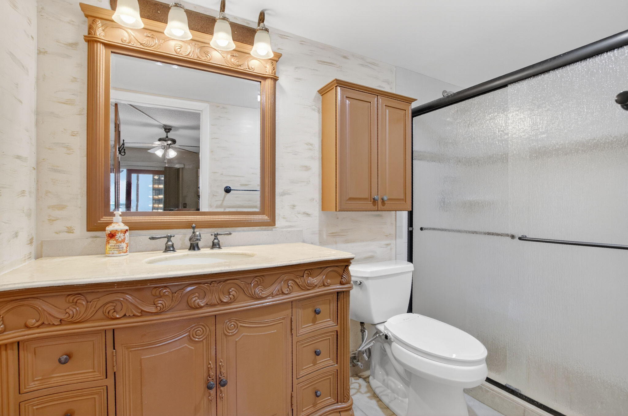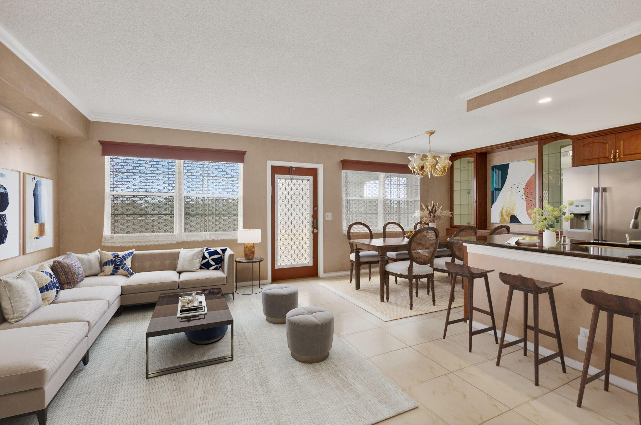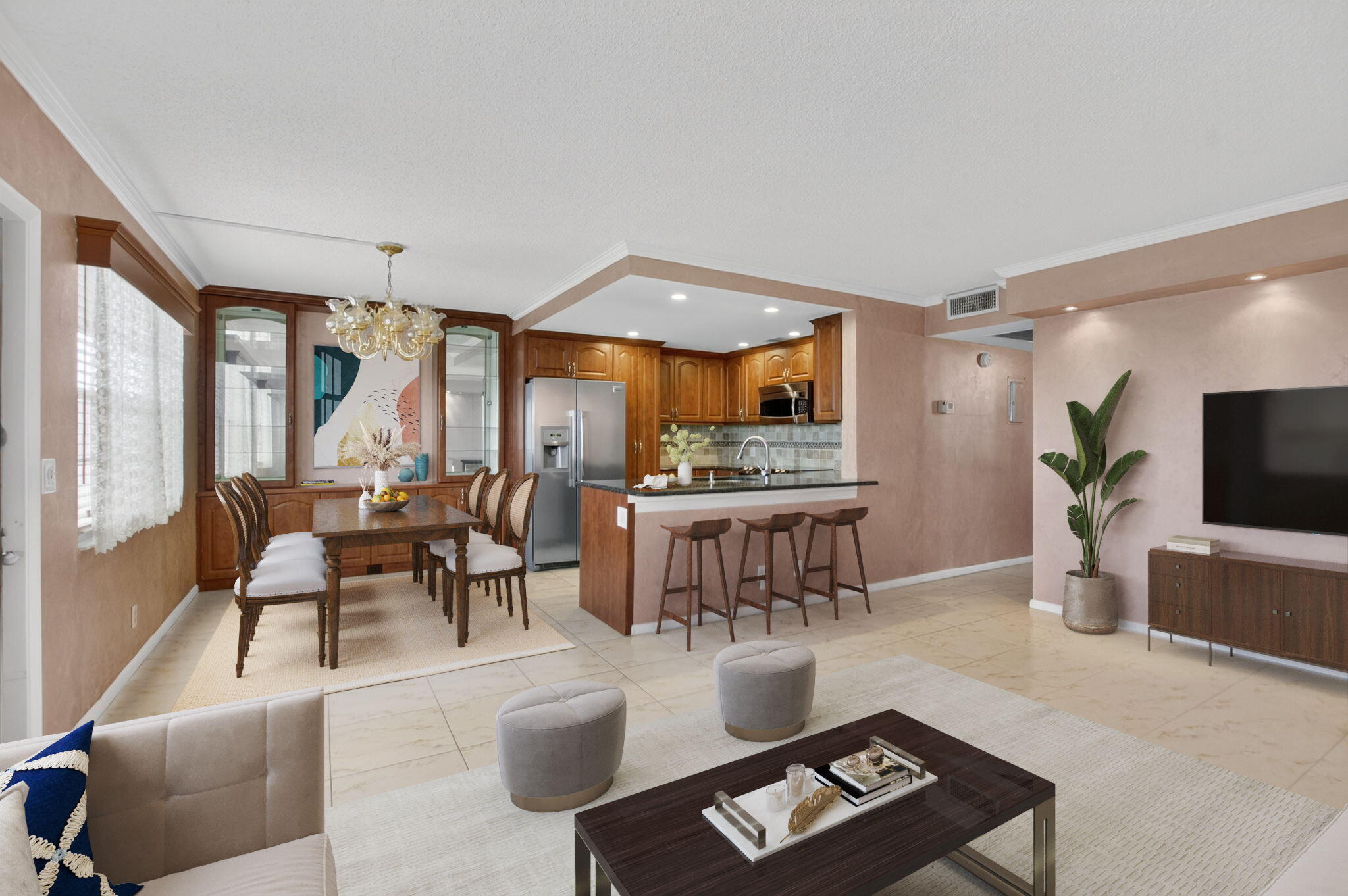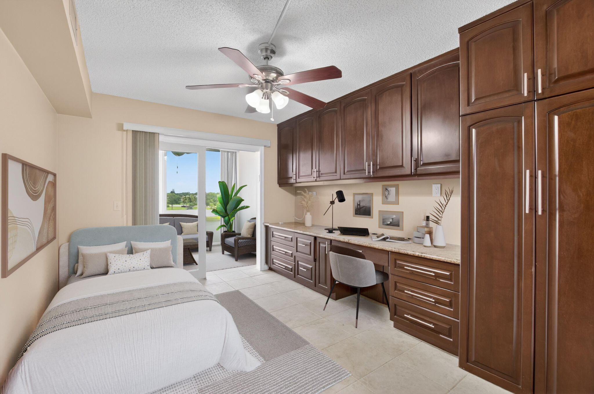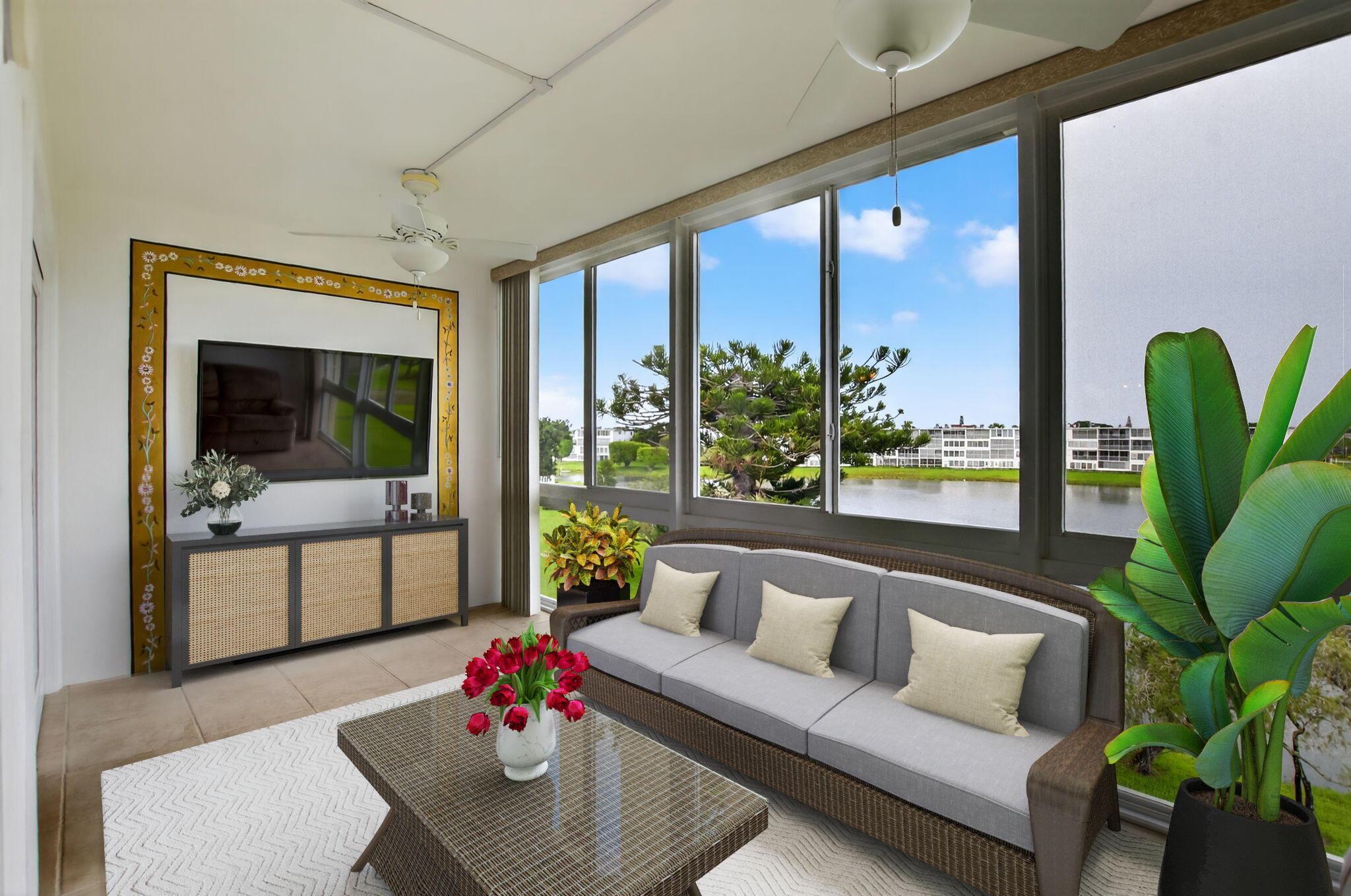 This completely updated unit offers 2 spacious bedrooms and 2 modern bathrooms, designed for comfort and style. The chef-ready kitchen features granite countertops, a gorgeous backsplash, newer appliances, and a seamless flow into the open-concept living and dining area--perfect for entertaining. One bedroom includes convenient built-ins that elevate both function and design, while the other bedroom boasts generous space and stunning lake views.Relax and unwind on the hurricane glass-enclosed lanai, overlooking the tranquil lake--ideal for morning coffee, peaceful meditation, or entertaining guests in the evening. Both bathrooms have been tastefully renovated, and the entire unit is carpet-free, offering a clean, contemporary feel.Enjoy the vibrant 55+ Century Village lifestylewith resort-style amenities, clubhouse, fitness center, and more! Conveniently located near places of worship, shopping, dining, and major roadways for added ease and accessibility.