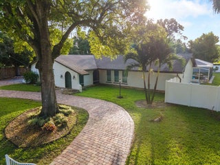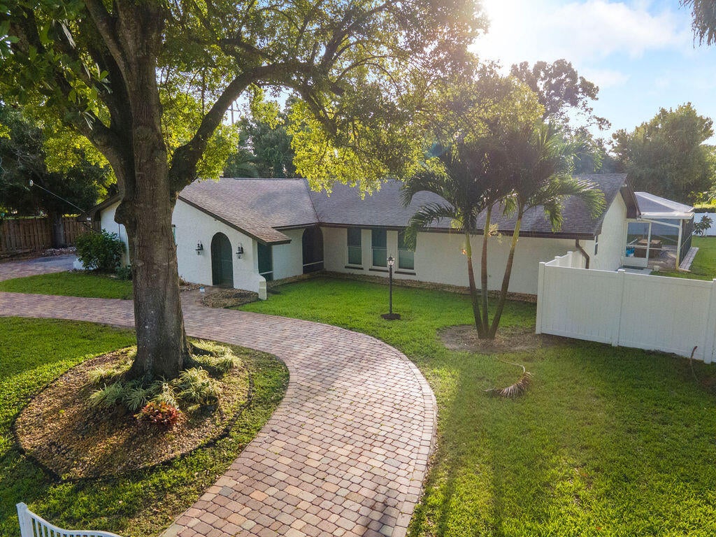 Back on Market -- New Roof Being Installed! Experience timeless Old Florida charm in this beautifully maintained 4BR/3BA home on a 0.64-acre lot offering comfort, privacy, and superior craftsmanship. Nearly 2,000 sq. ft. of updated living space features a split bedroom floor plan and elegant finishes. Enjoy the screened, solar-heated saltwater pool surrounded by lush tropical landscaping--perfect for entertaining or relaxing. The 6' privacy fence encloses a gated circular paver driveway. Built by a local contractor exceeding code standards for lasting quality. Prime location near beaches, shopping, dining, and recreation. Schedule your showing today!NEW roof being installed! AC was replaced in 2014. The water heater was replaced in 2019. A new septic system was installed in 2015-2016 The fence was installed in 2018 and has a lifetime guarantee. The pool deck was enlarged to over 900sf, pavers installed, and the screen enclosure replaced in 2019. All the windows and doors were replaced in 2020. Rain gutters were installed in 2020 and are guaranteed for life. Spray-in insulation was installed in 2021 in the entire attic, including the garage. The pool solar heating system comes with a service agreement.