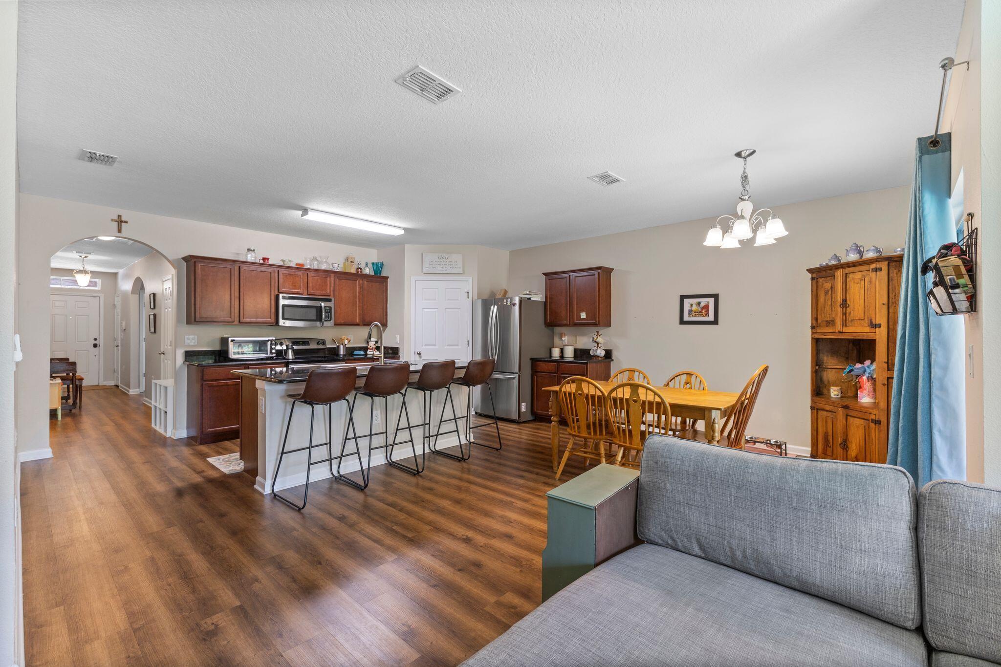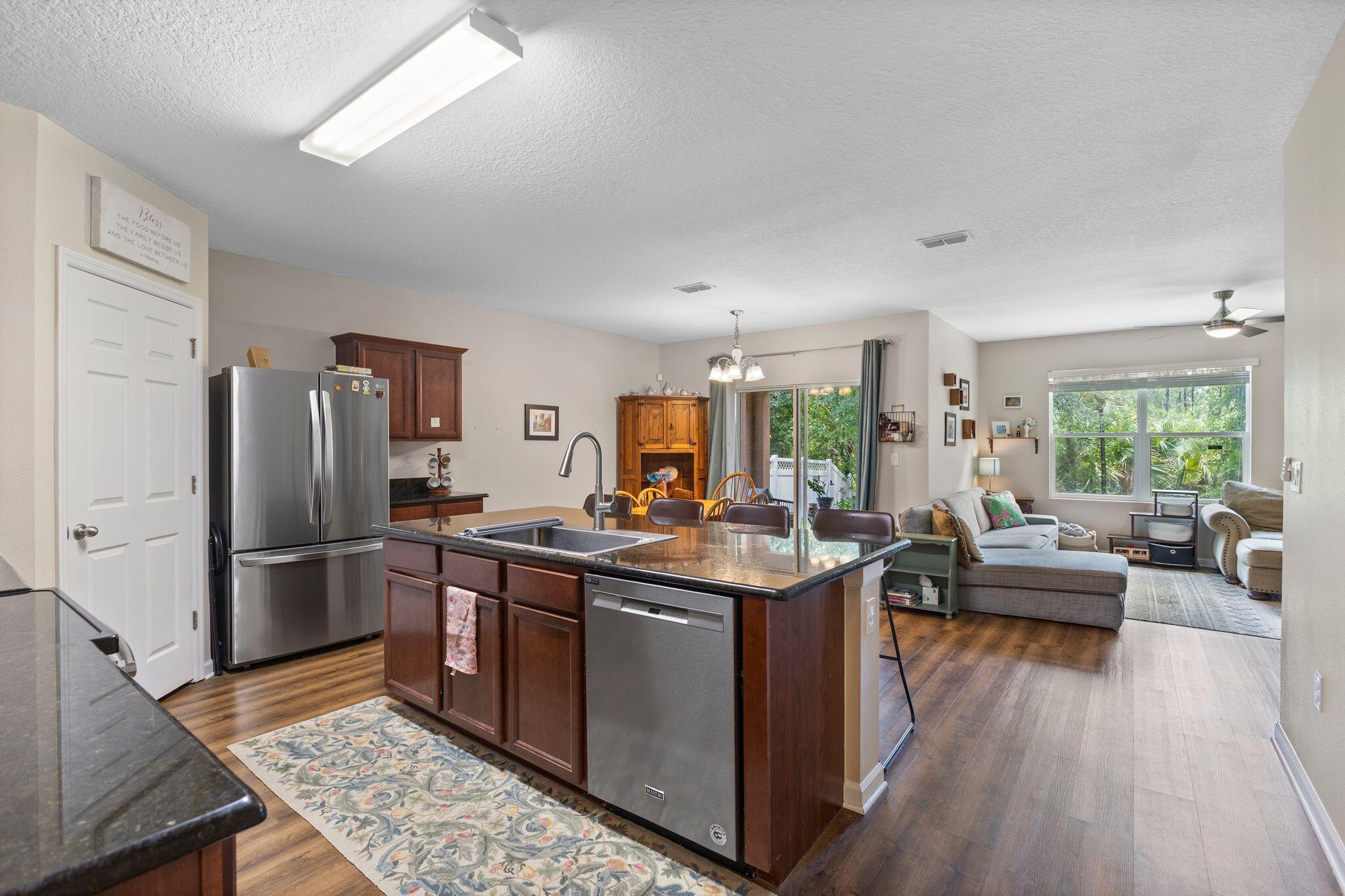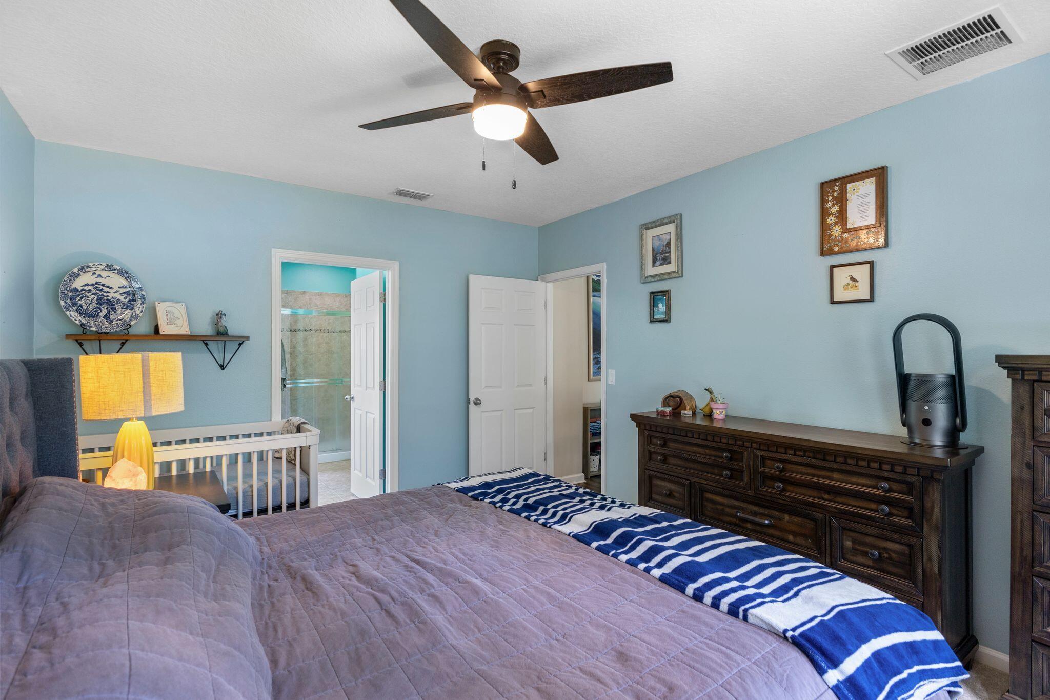 Welcome to this beautifully maintained 4-bedroom, 2-bath, 2-car garage home located in the gated community of Lexington Place. The split-bedroom floor plan provides privacy & comfort, with a generously sized primary suite featuring a walk-in closet and en-suite bath with dual vanities, soaking tub, and separate shower. The kitchen boasts stainless steel appliances, ample cabinet space, and a convenient breakfast bar that opens to the living and dining areas--ideal for entertaining. Step outside to a covered patio overlooking a fully fenced backyard, perfect for relaxing or hosting gatherings.